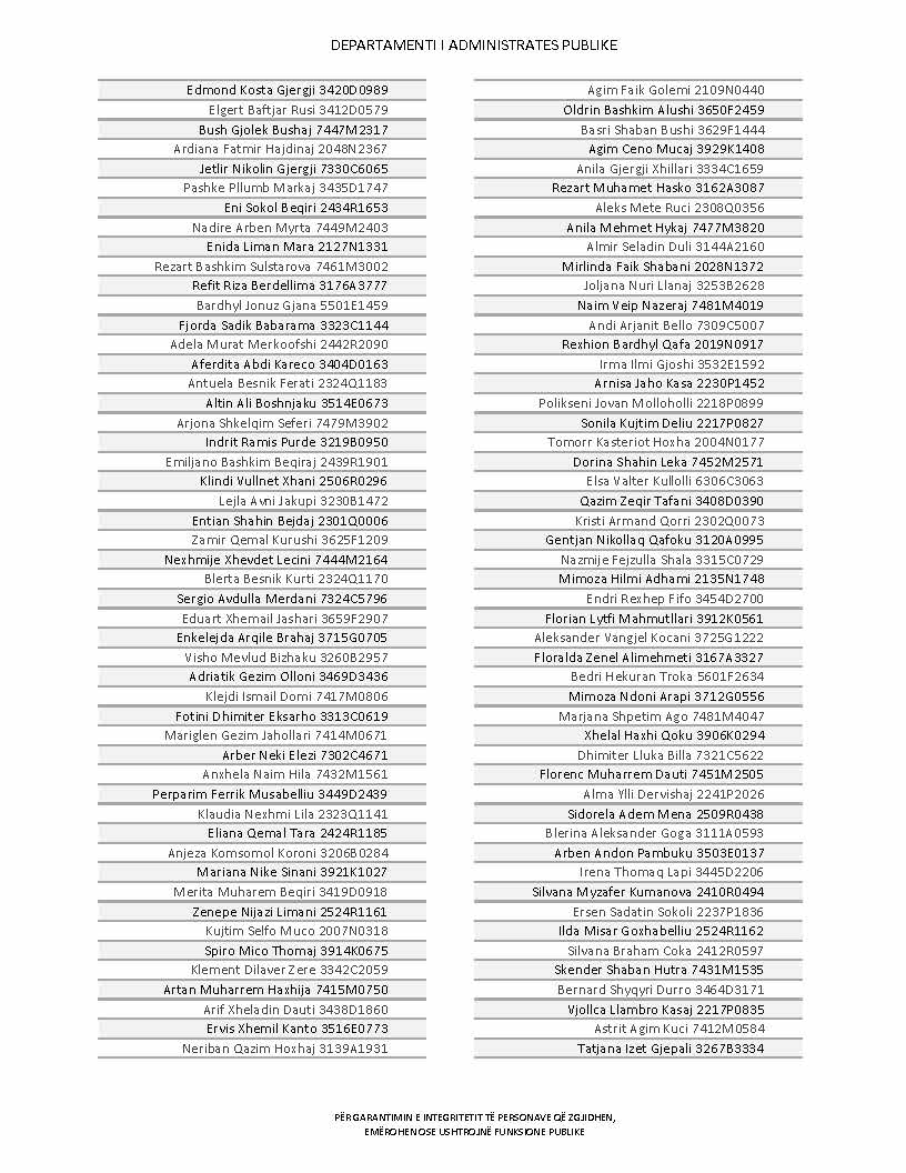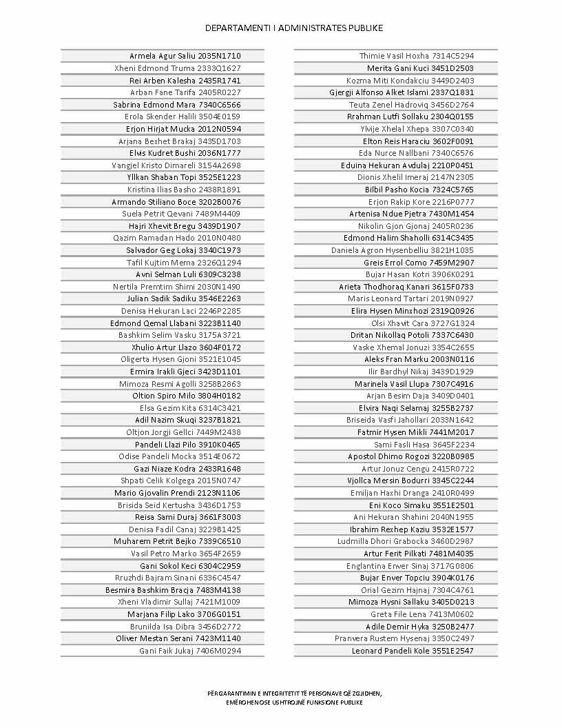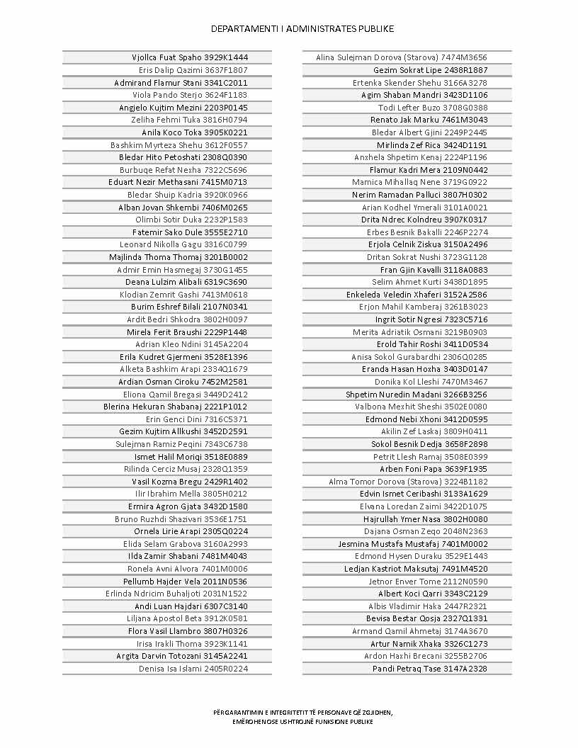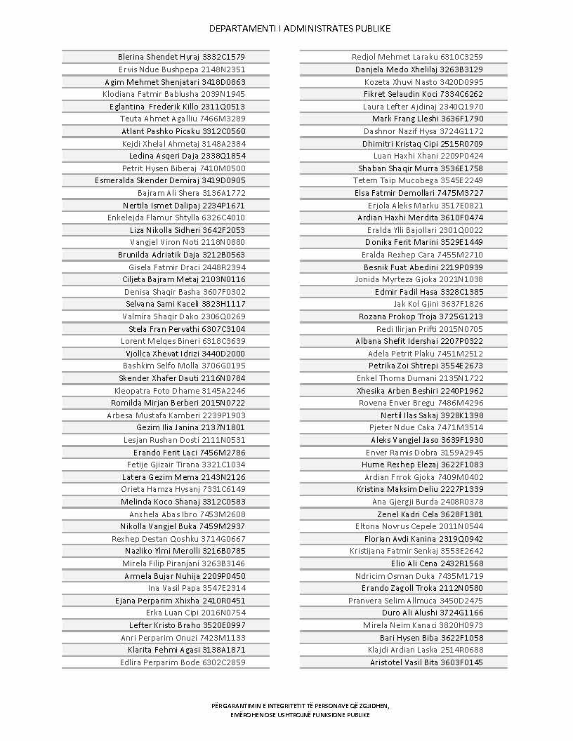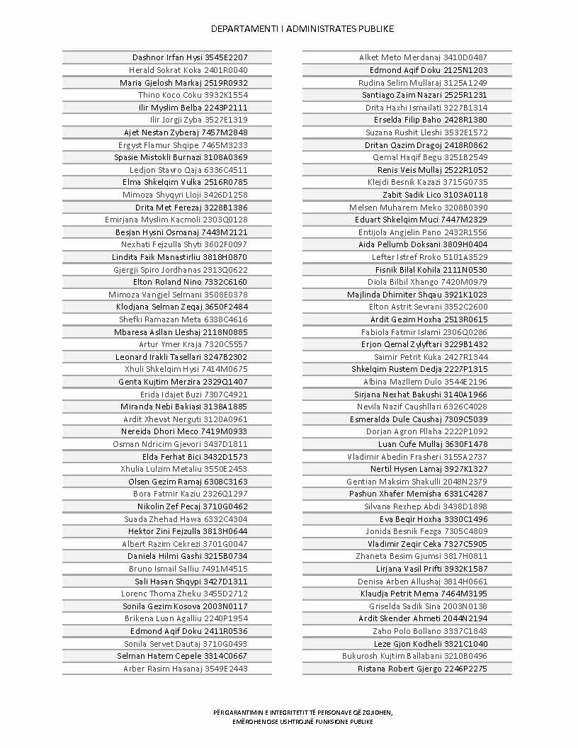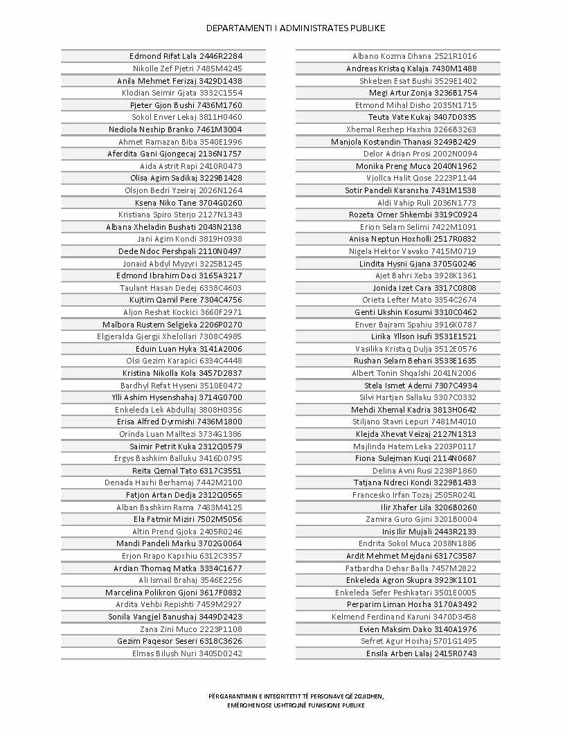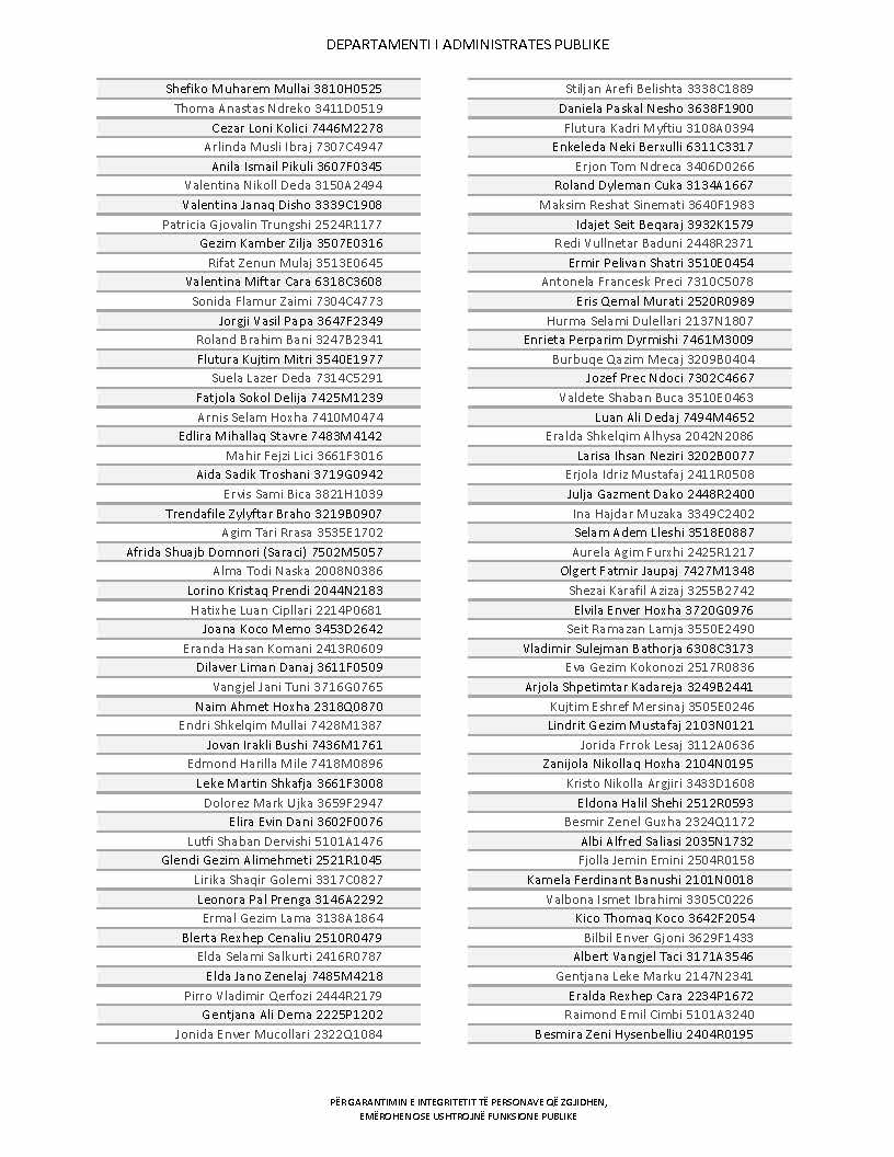 Lista e personave që kanë dorëzuar formularët e vetëdeklarimit