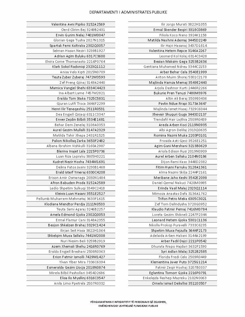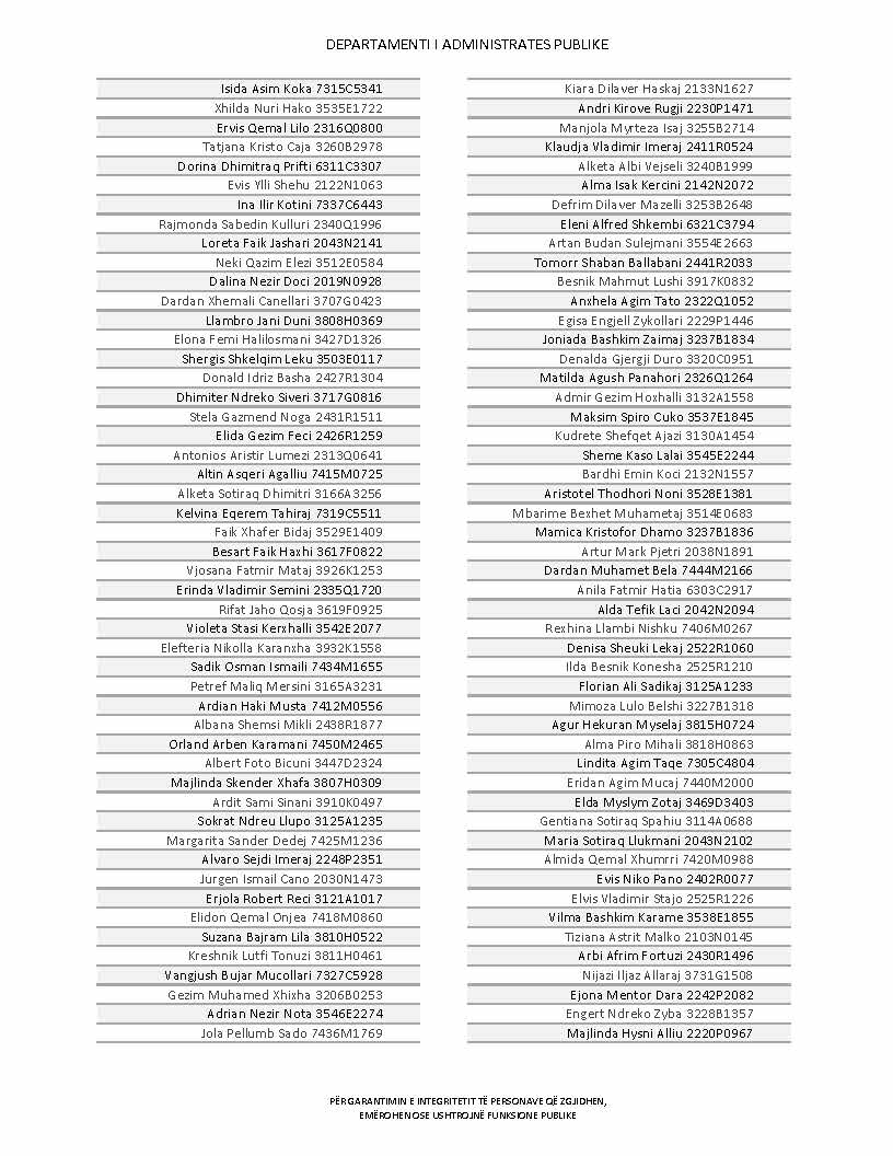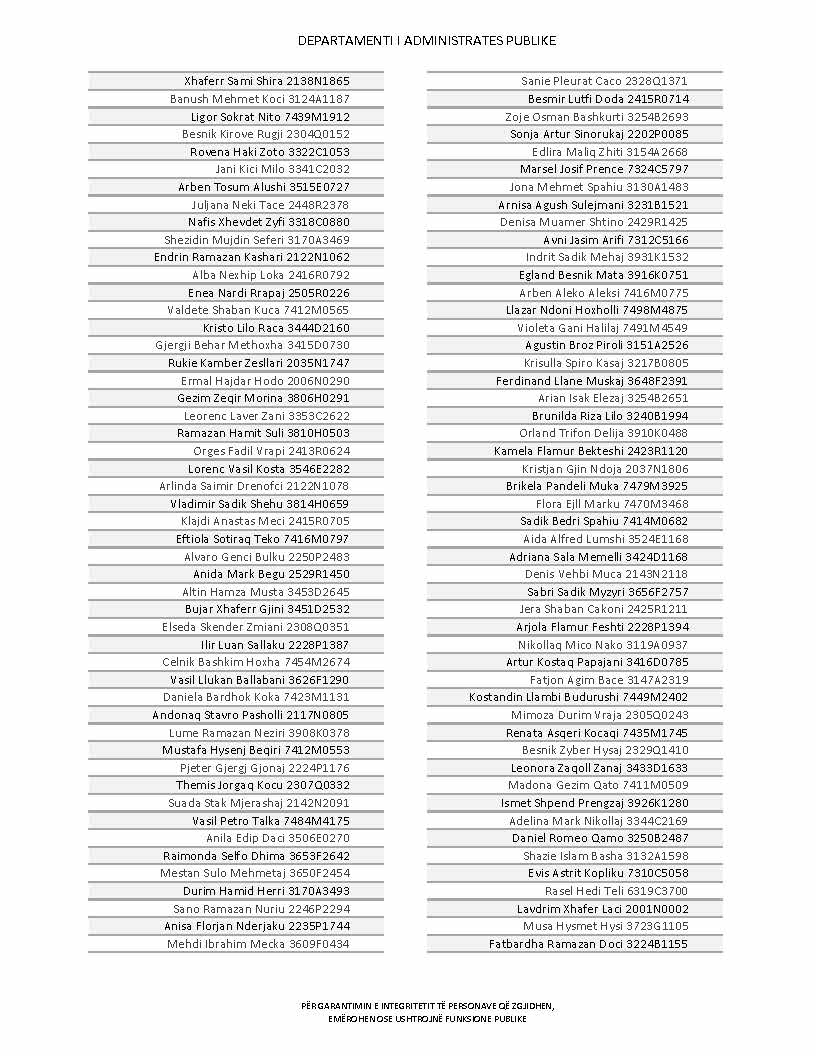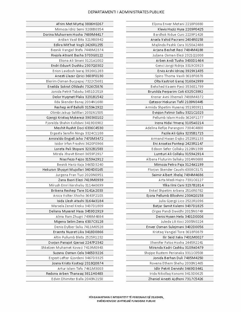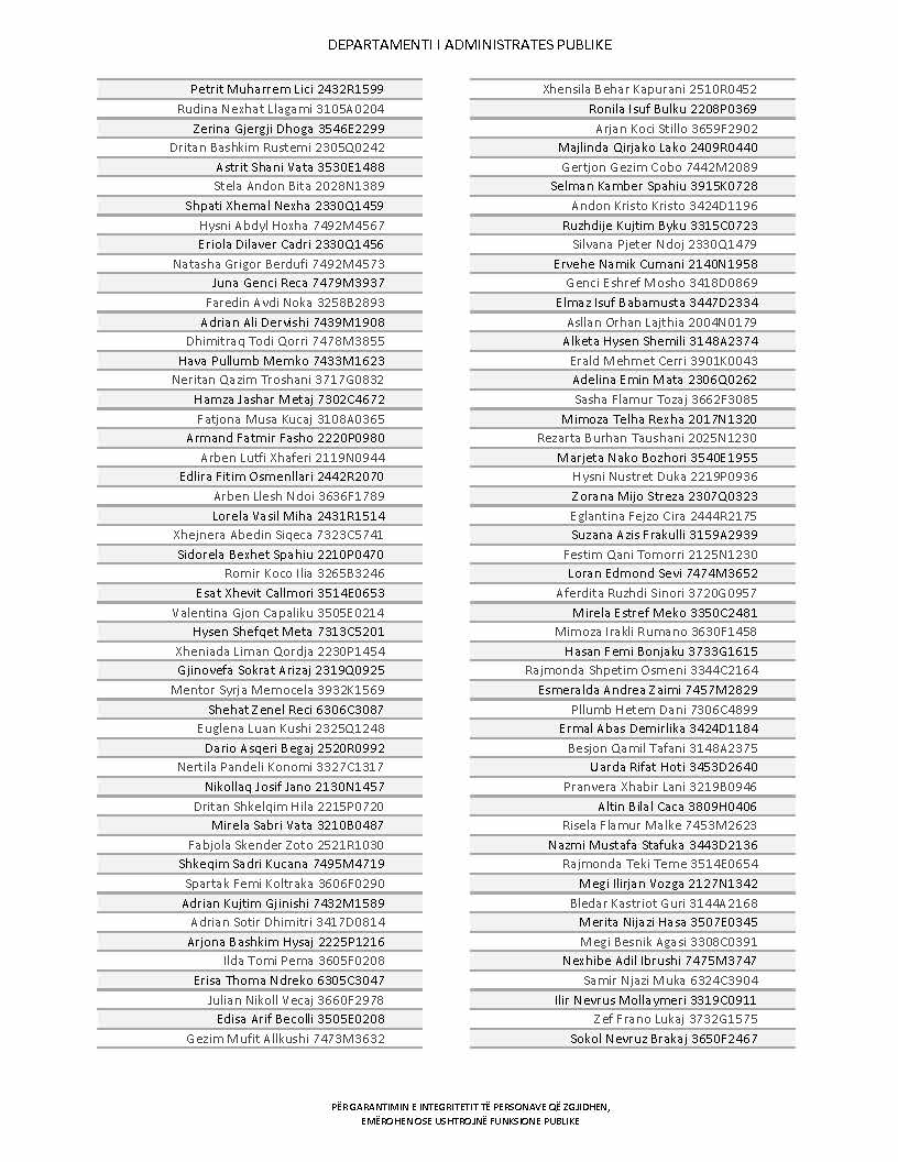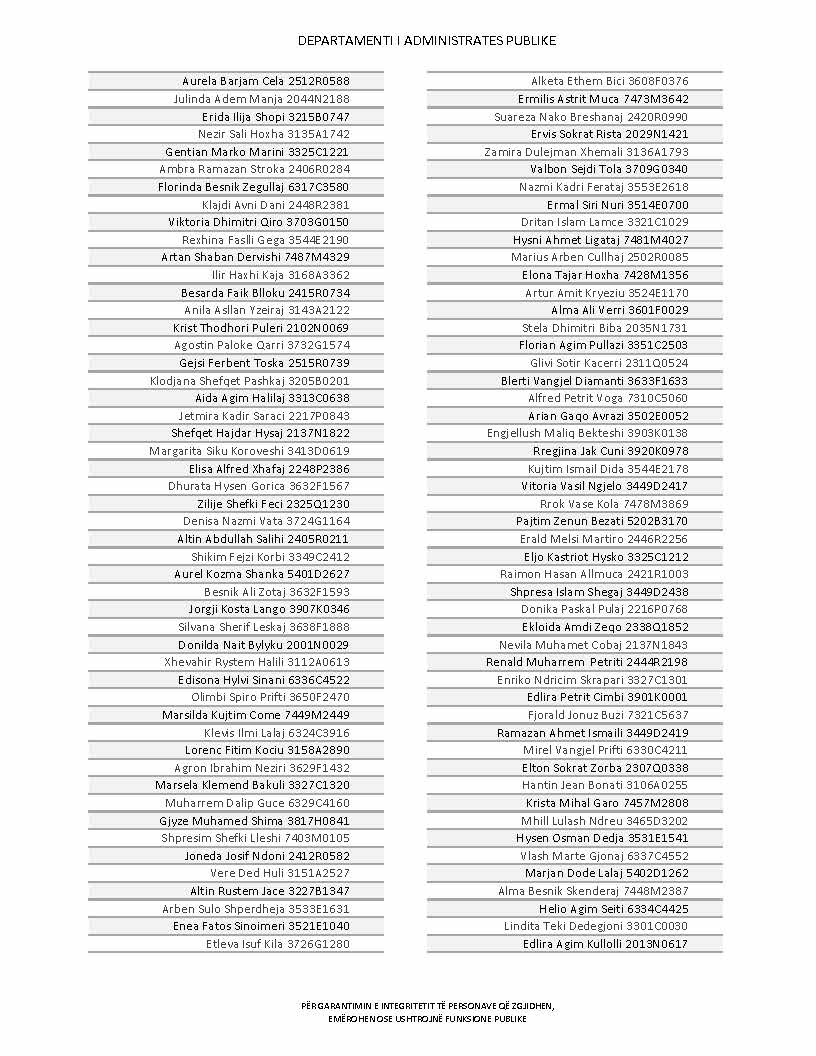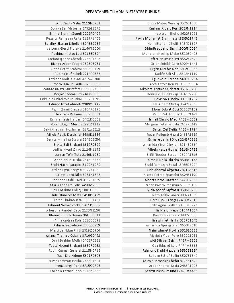 Lista e personave që kanë dorëzuar formularët e vetëdeklarimit
