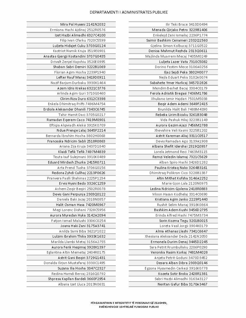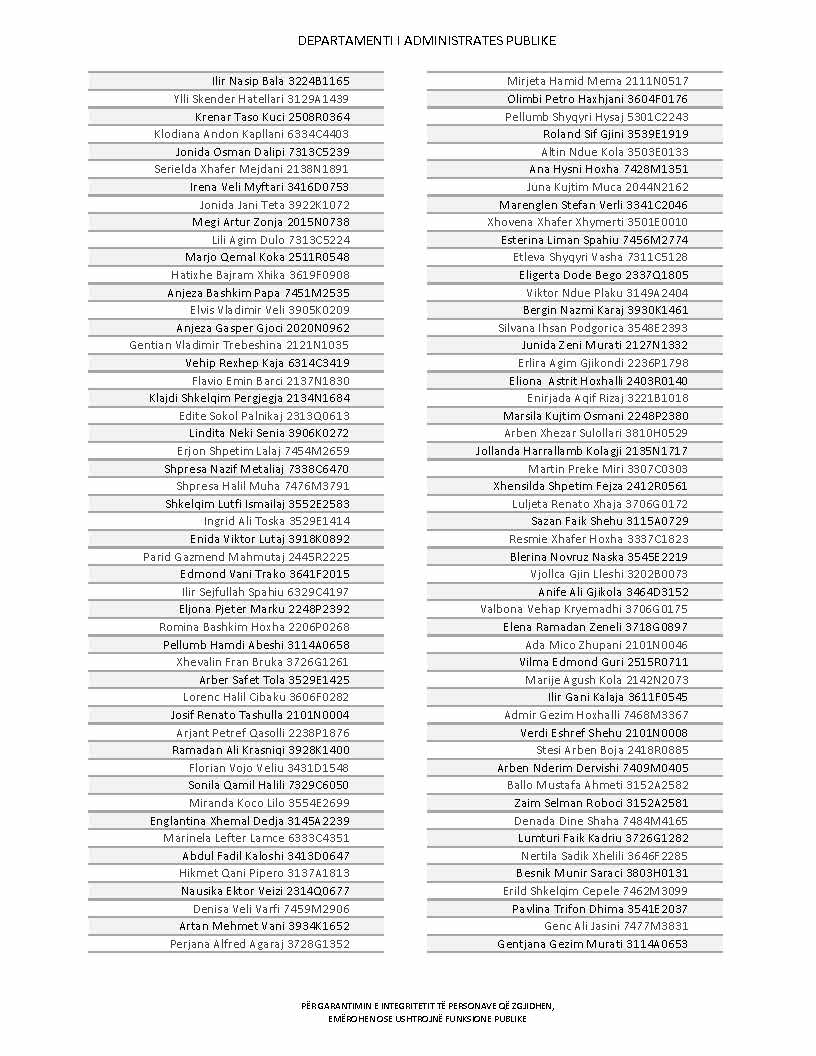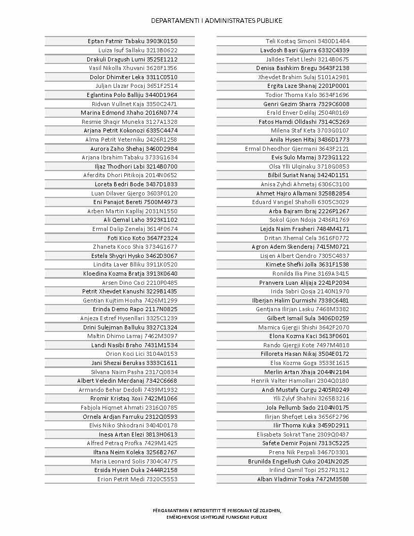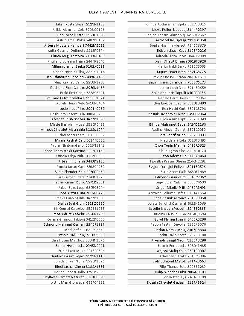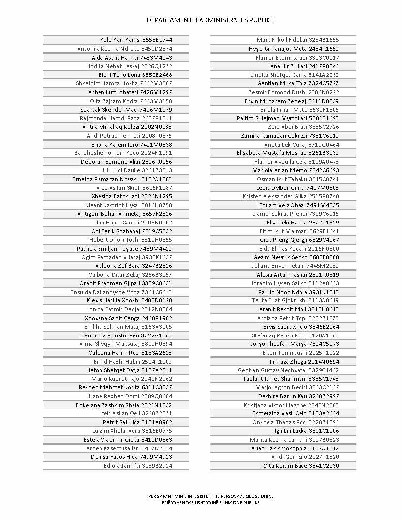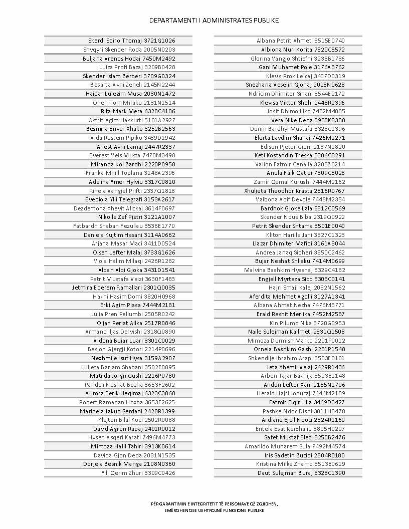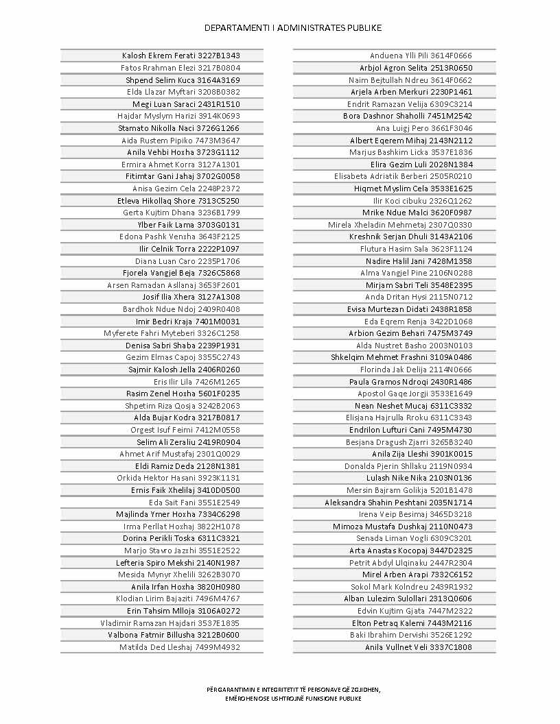 Lista e personave që kanë dorëzuar formularët e vetëdeklarimit