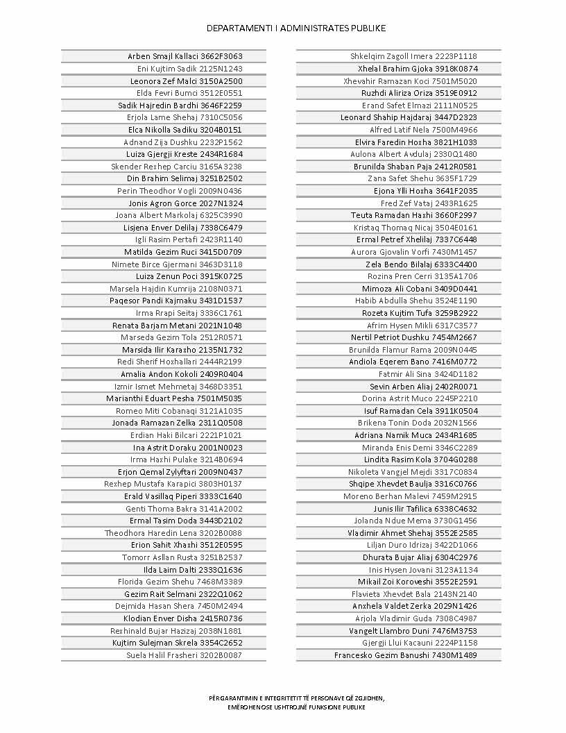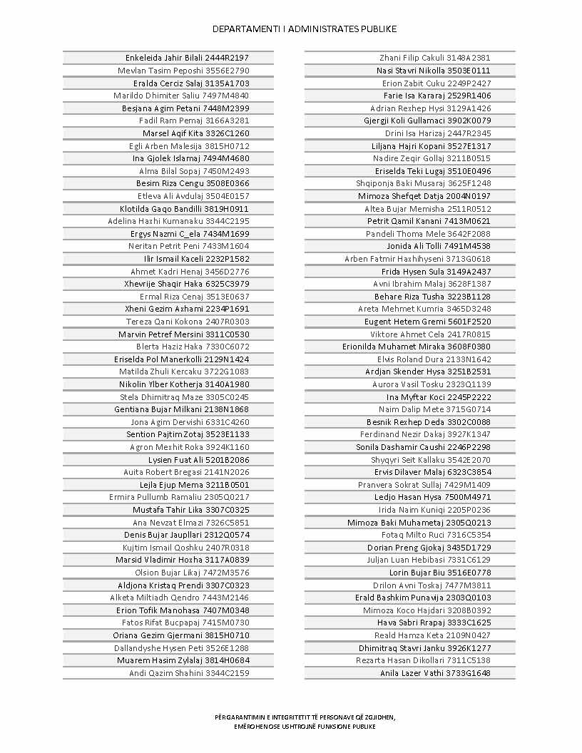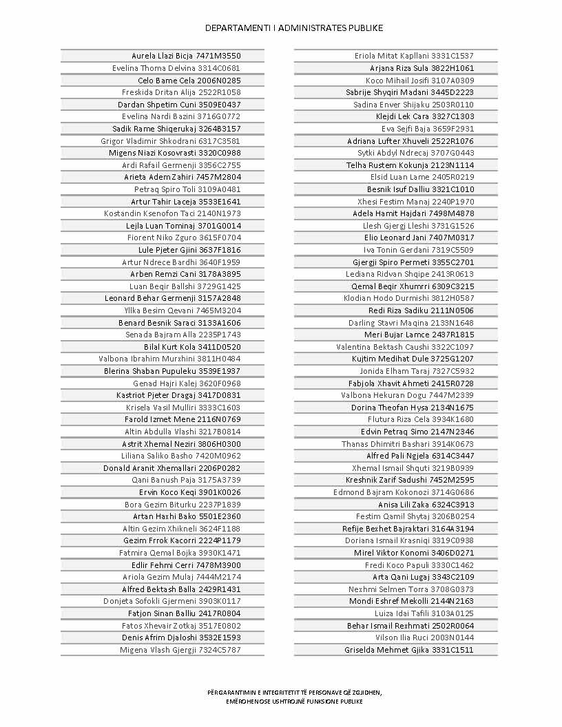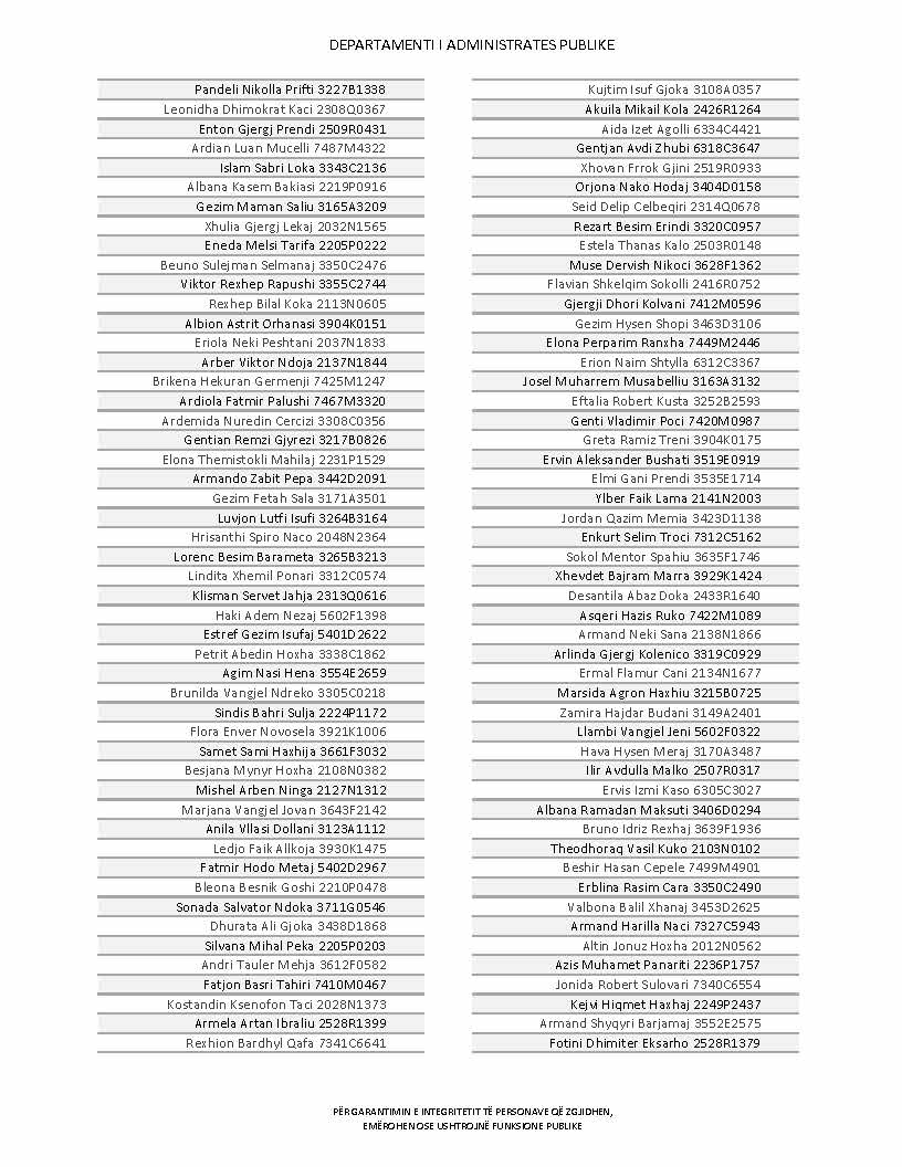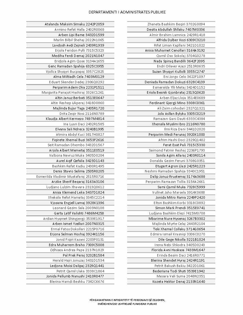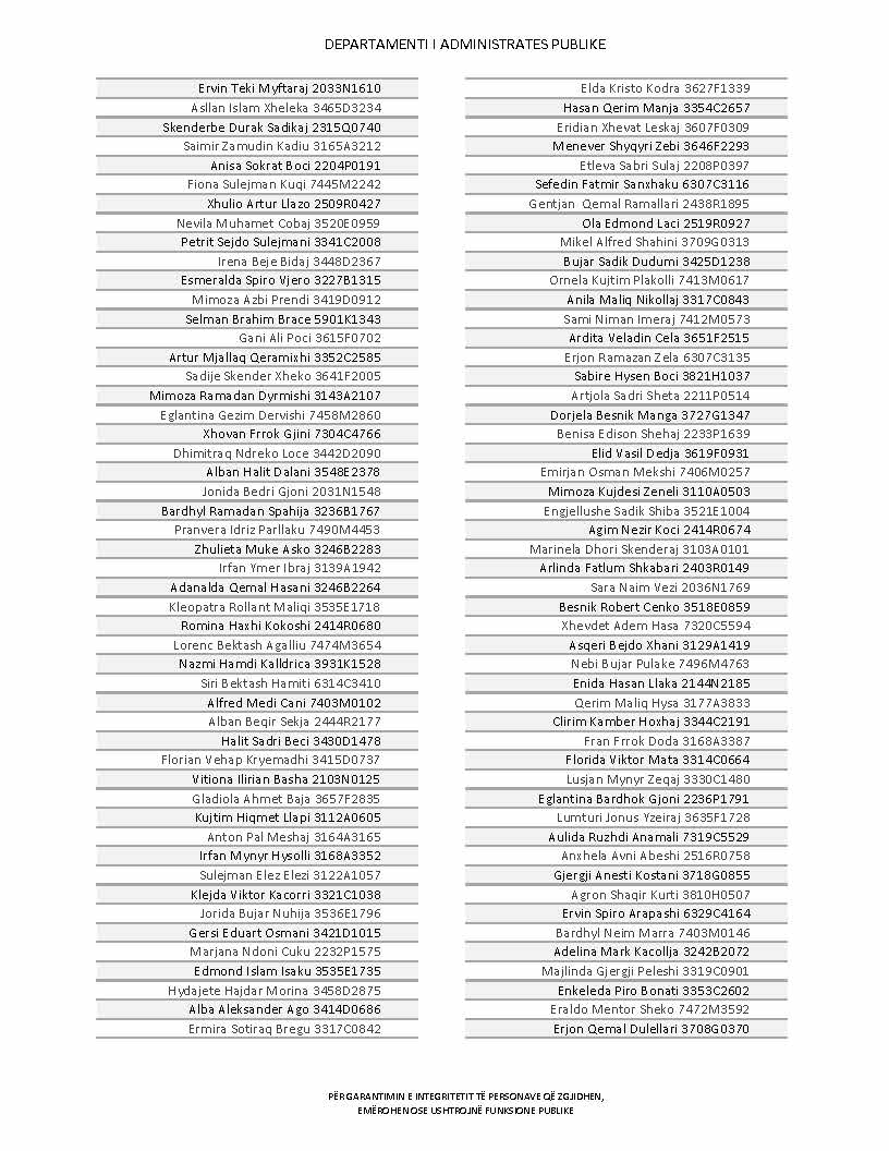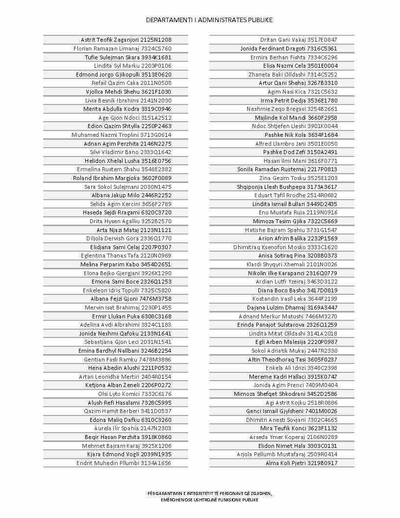 Lista e personave që kanë dorëzuar formularët e vetëdeklarimit