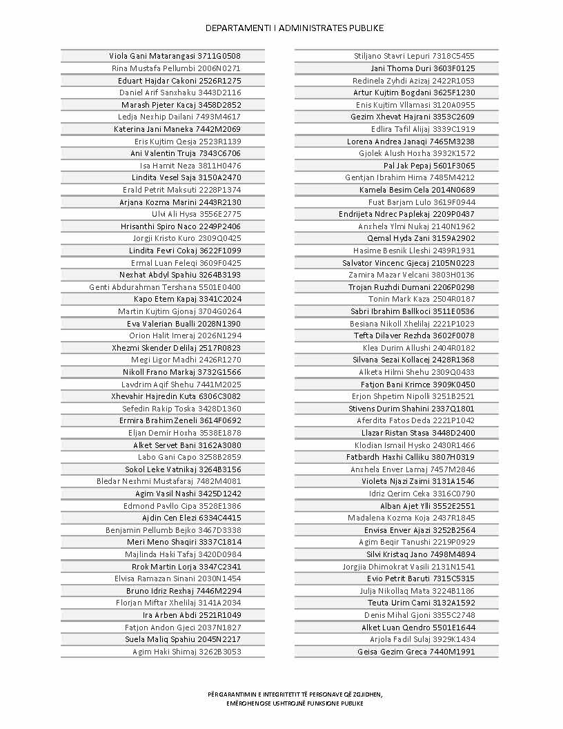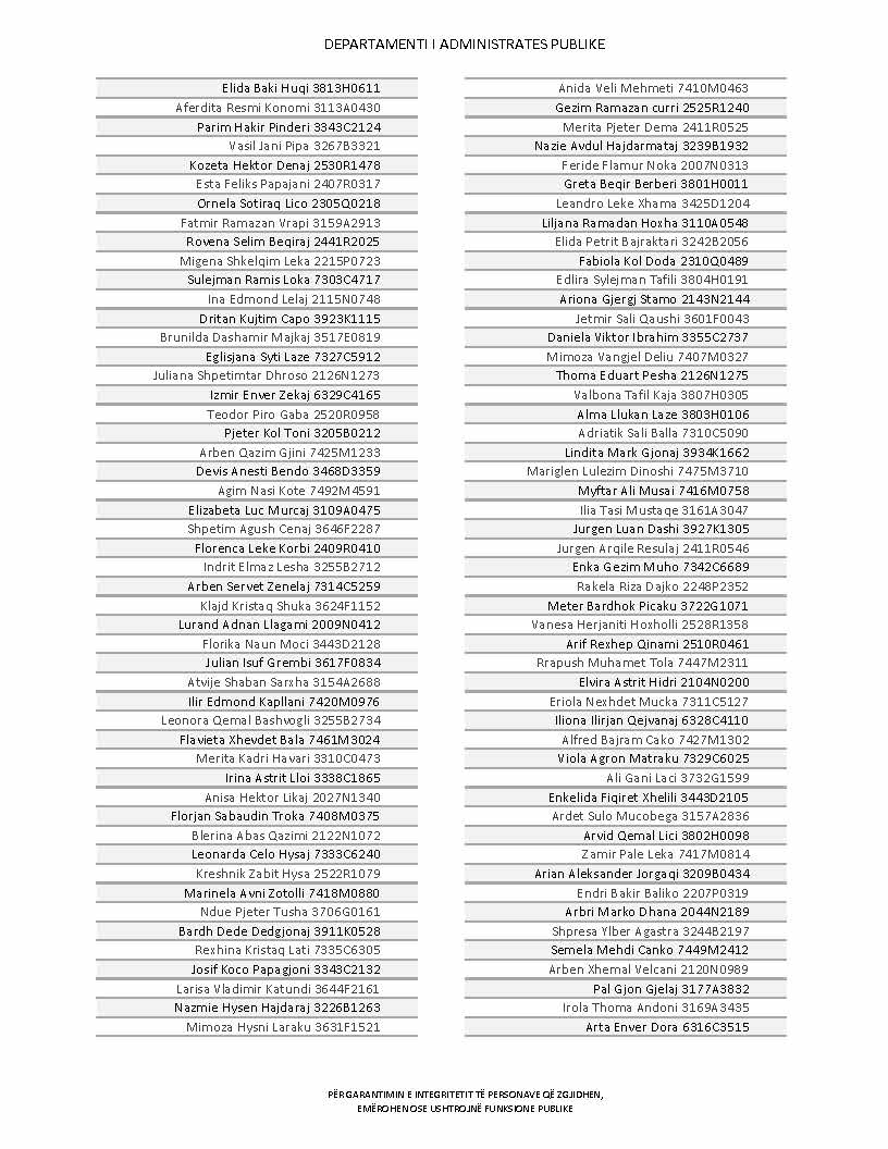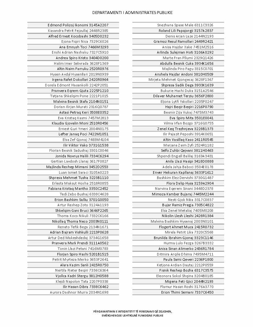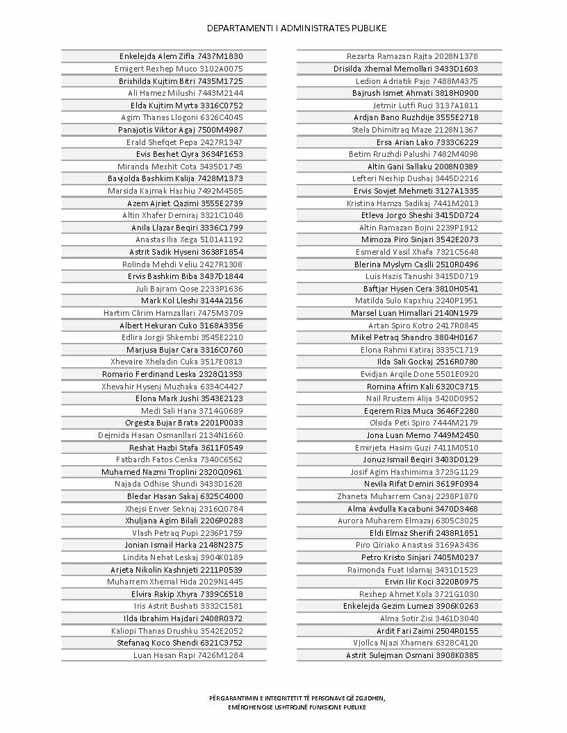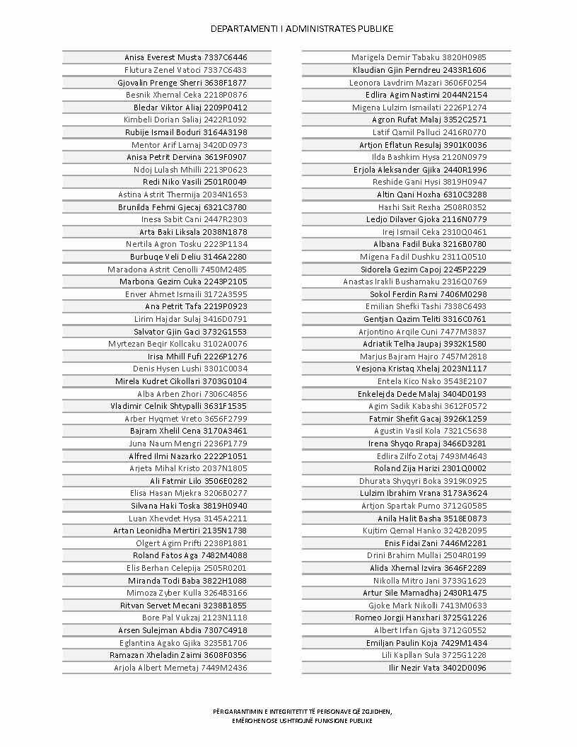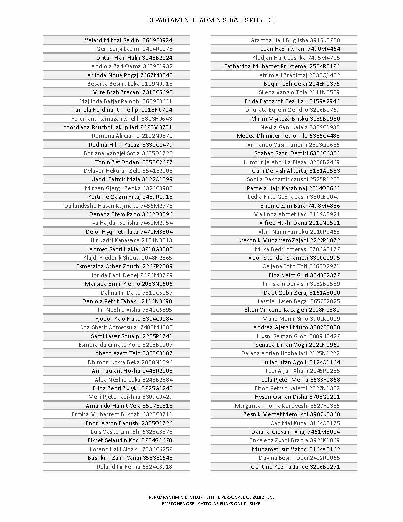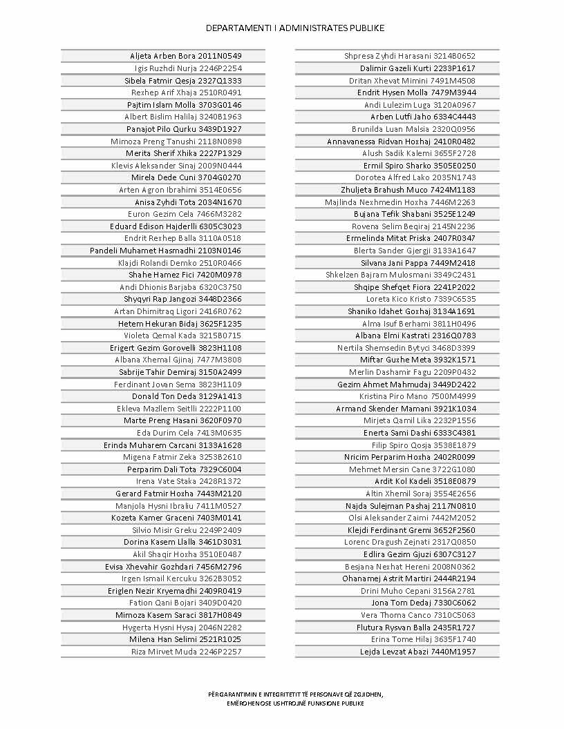 Lista e personave që kanë dorëzuar formularët e vetëdeklarimit