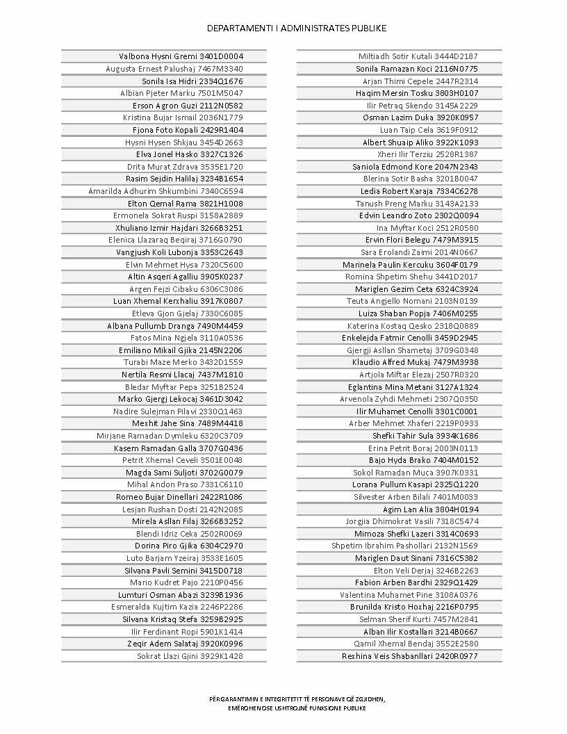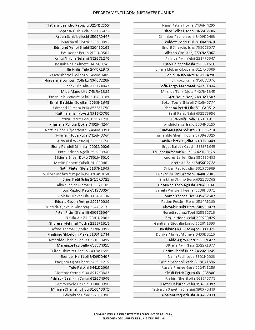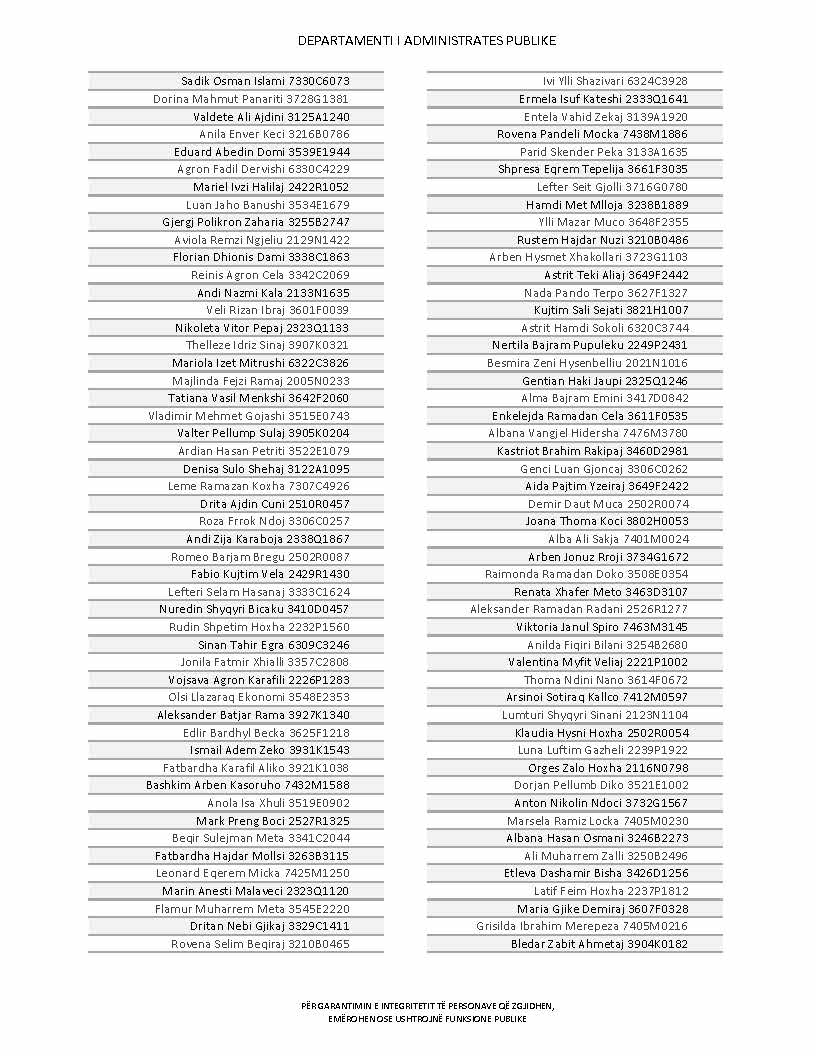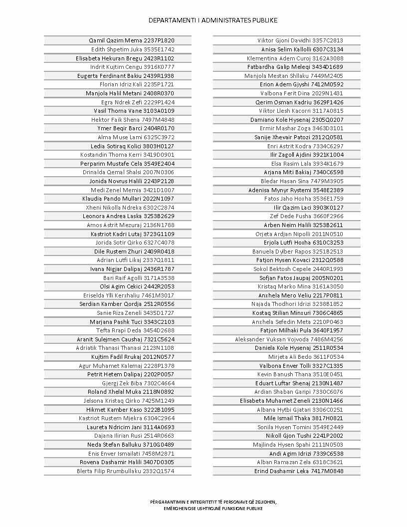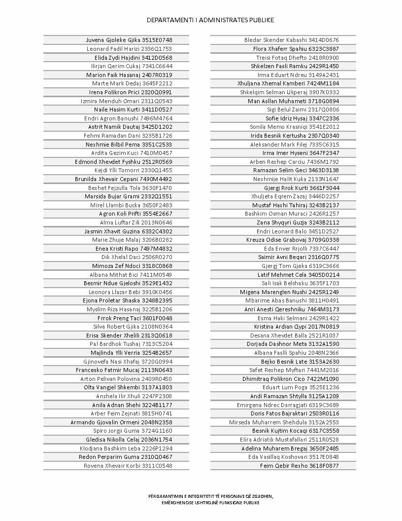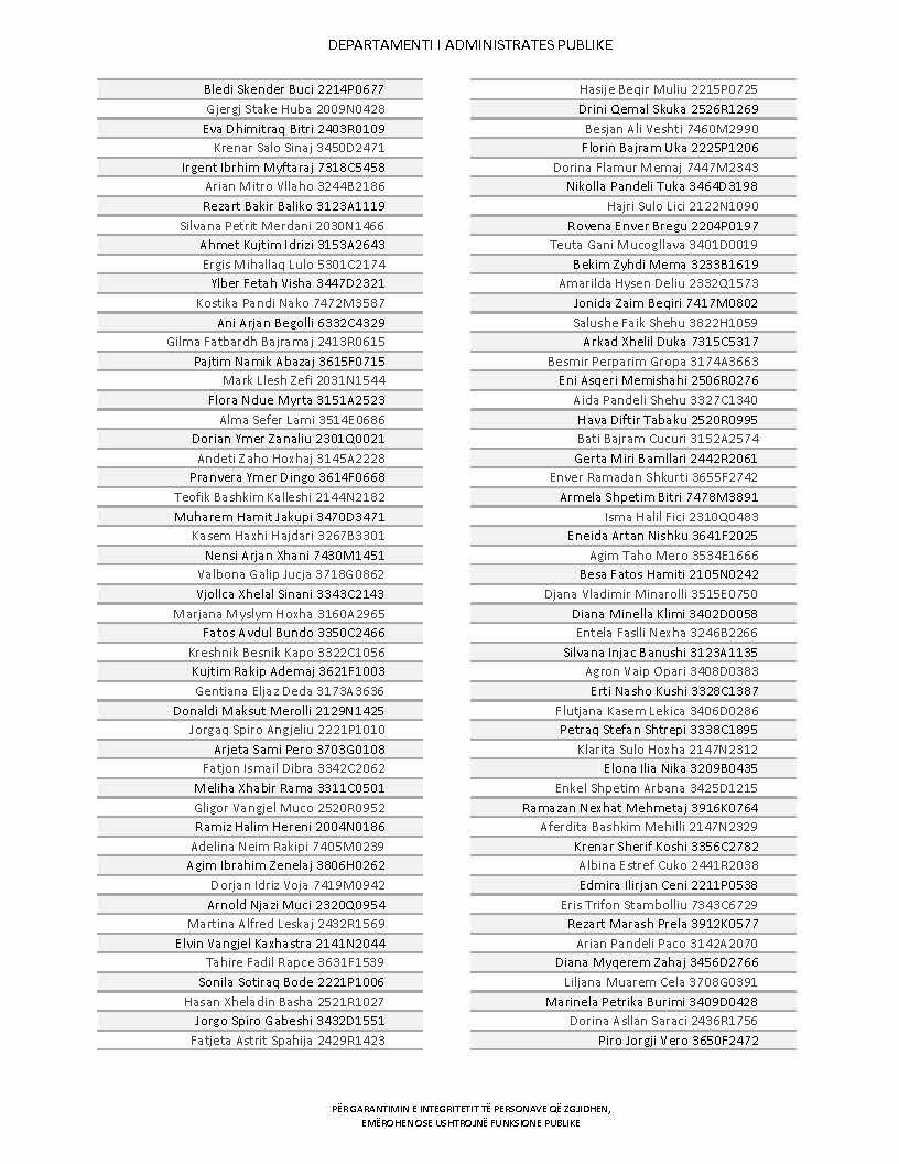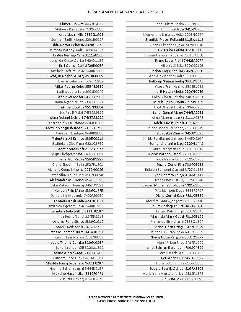 Lista e personave që kanë dorëzuar formularët e vetëdeklarimit