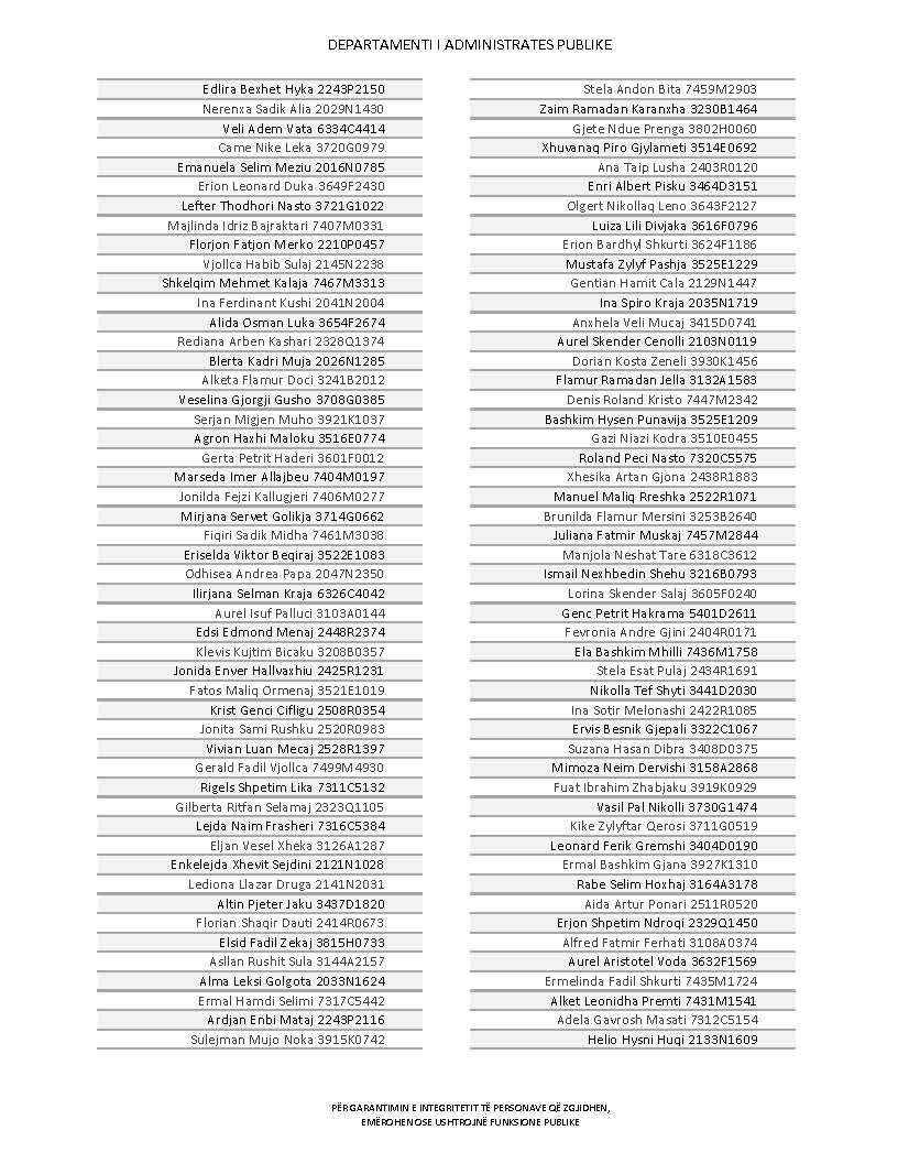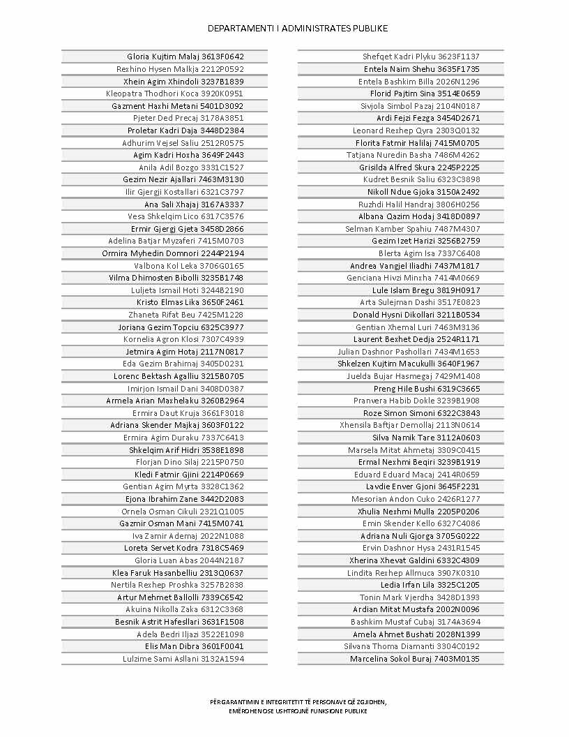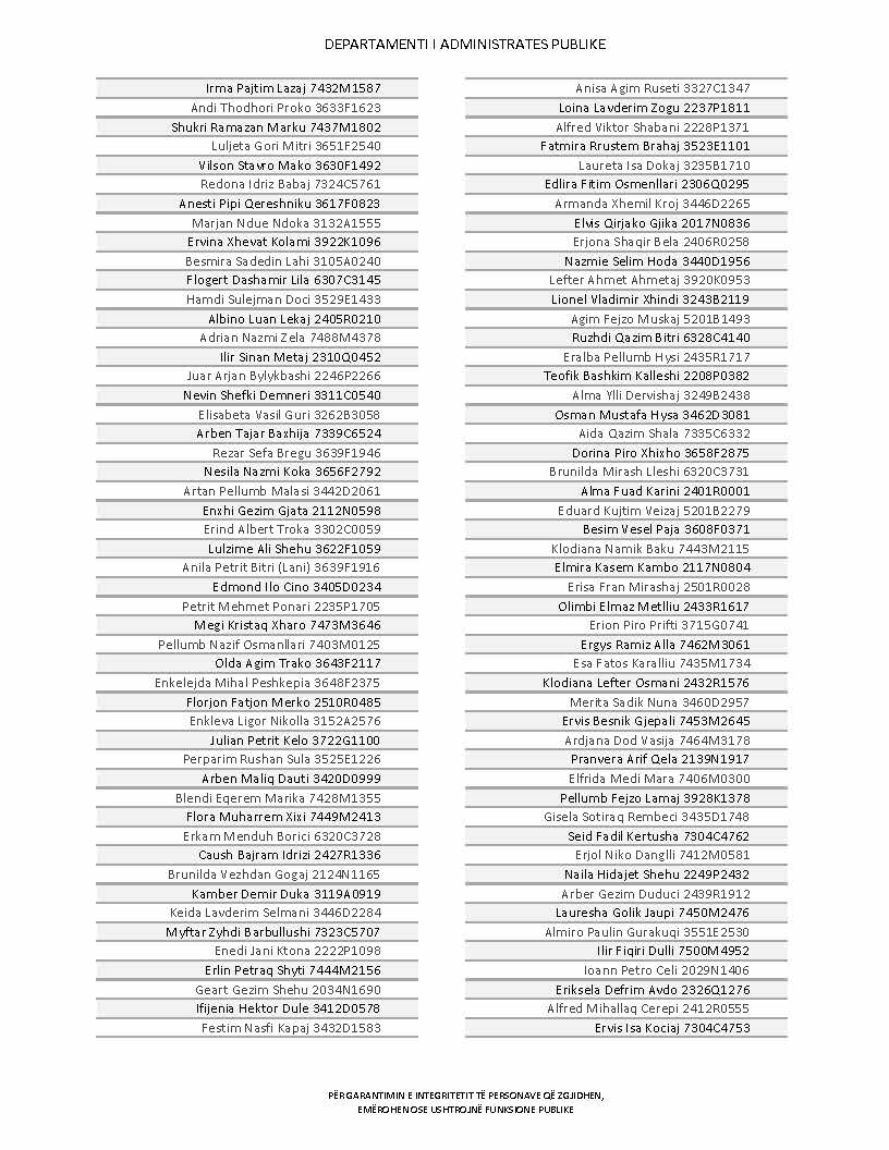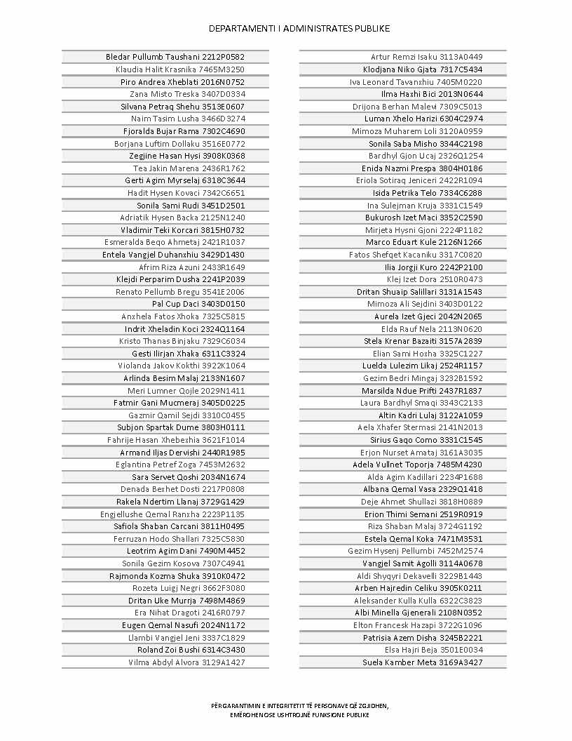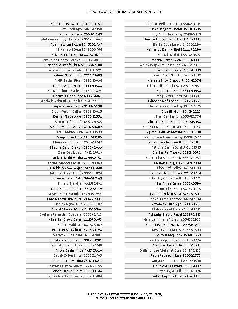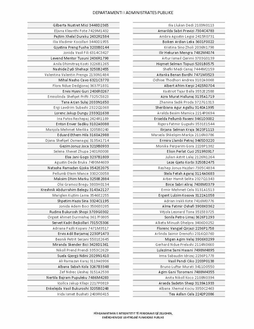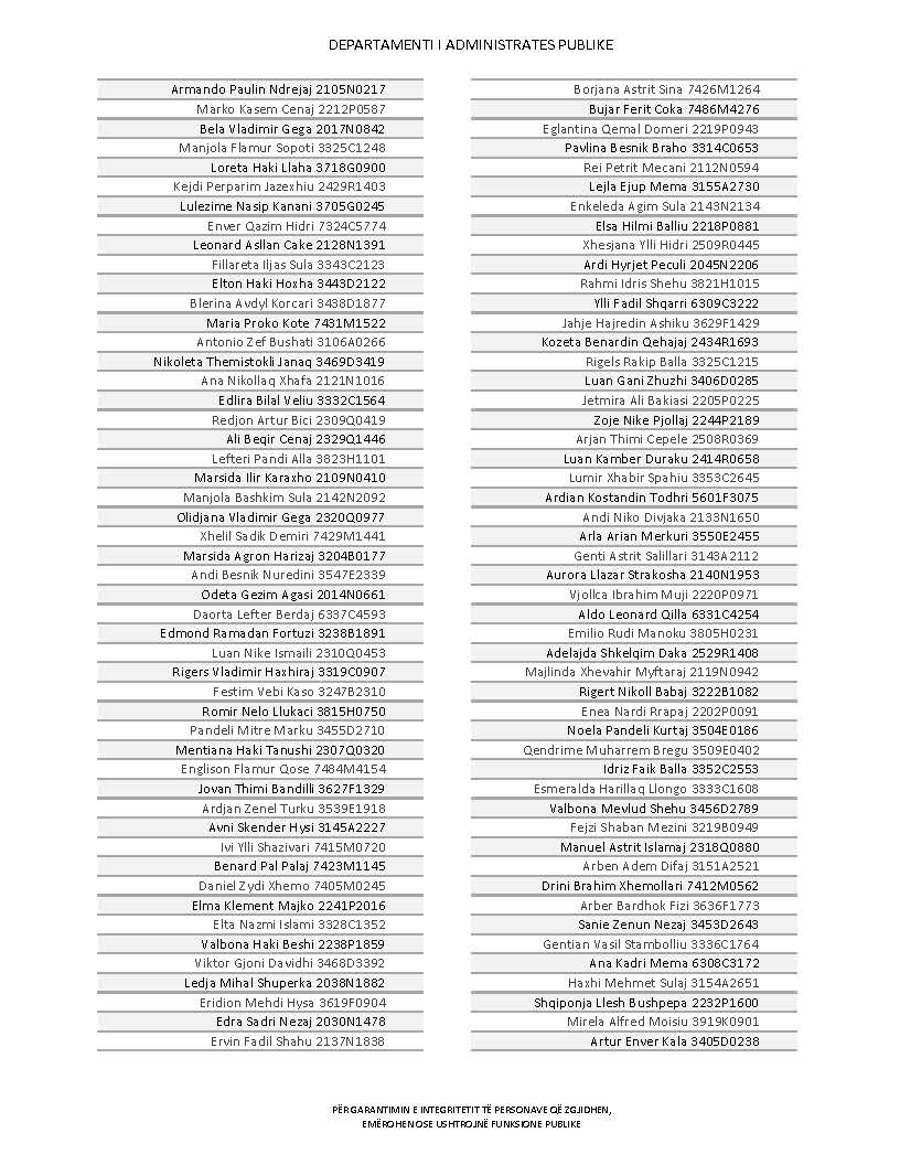Lista e personave që kanë dorëzuar formularët e vetëdeklarimit