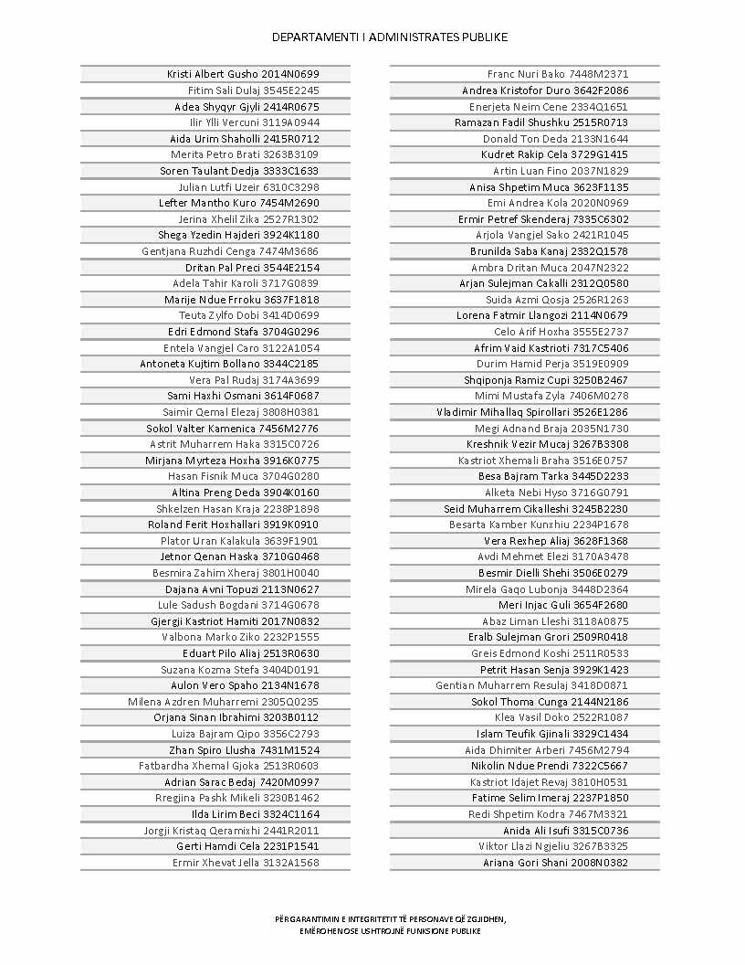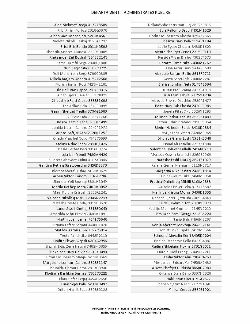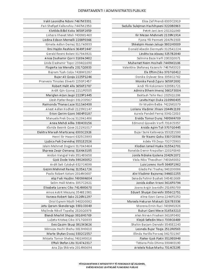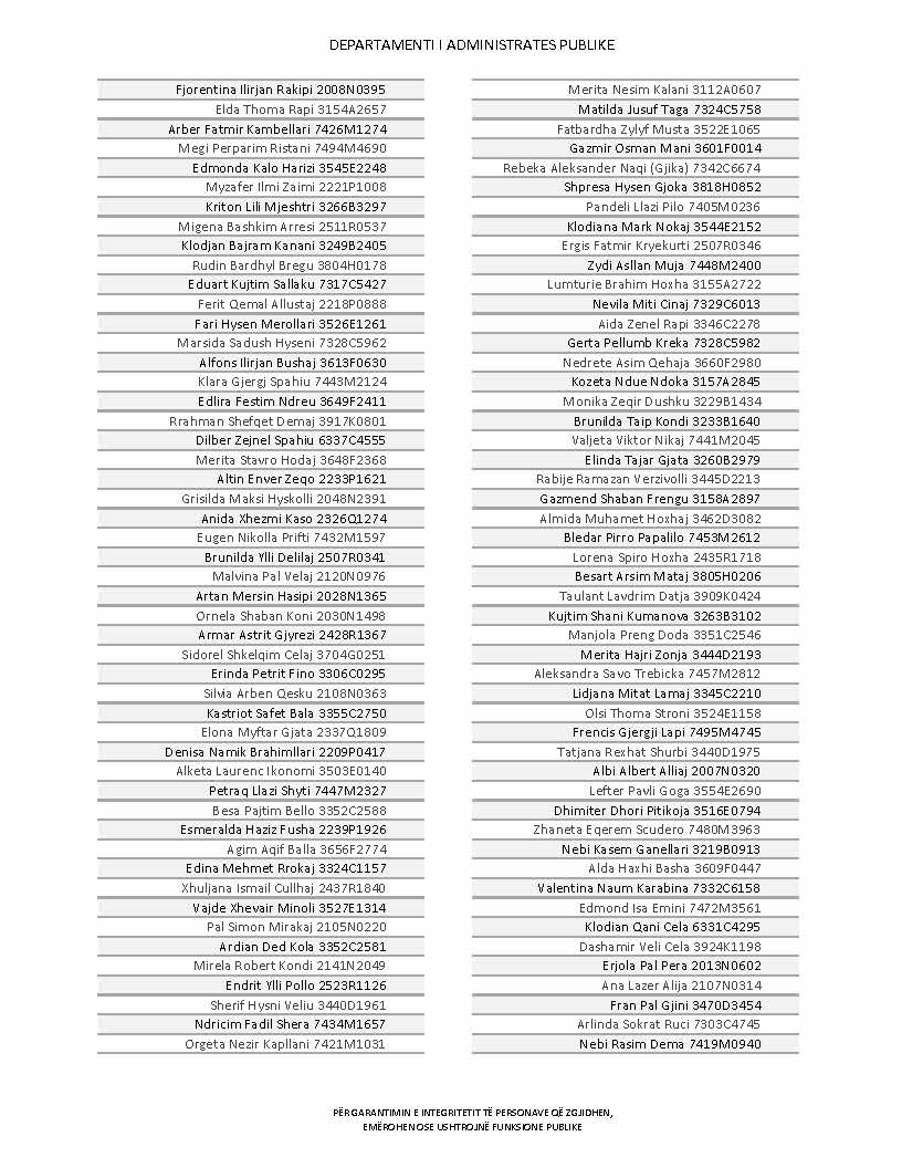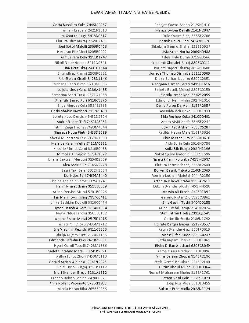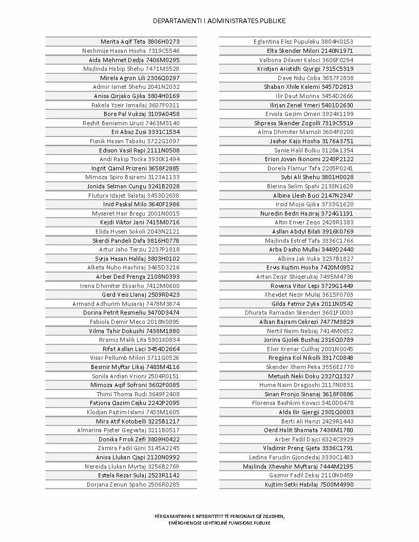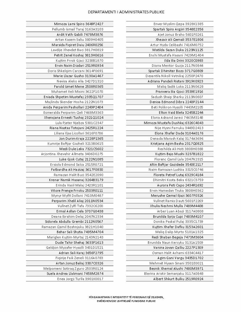 Lista e personave që kanë dorëzuar formularët e vetëdeklarimit