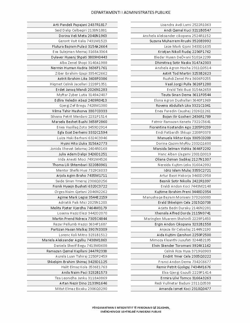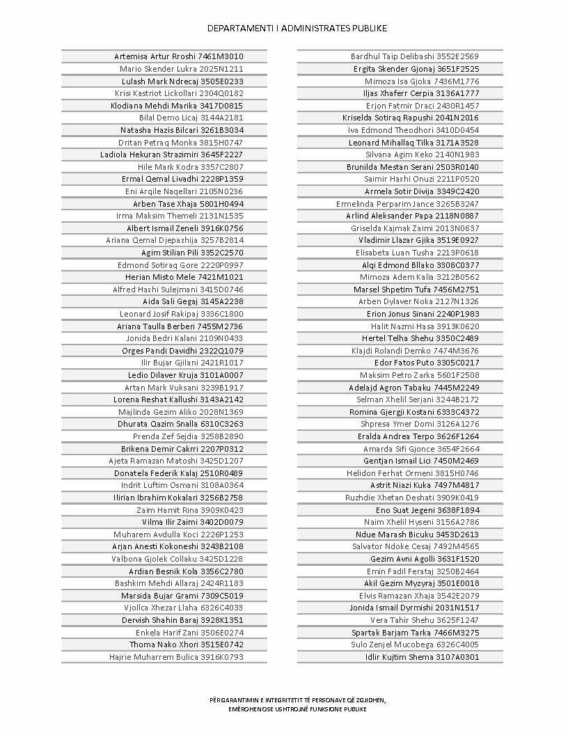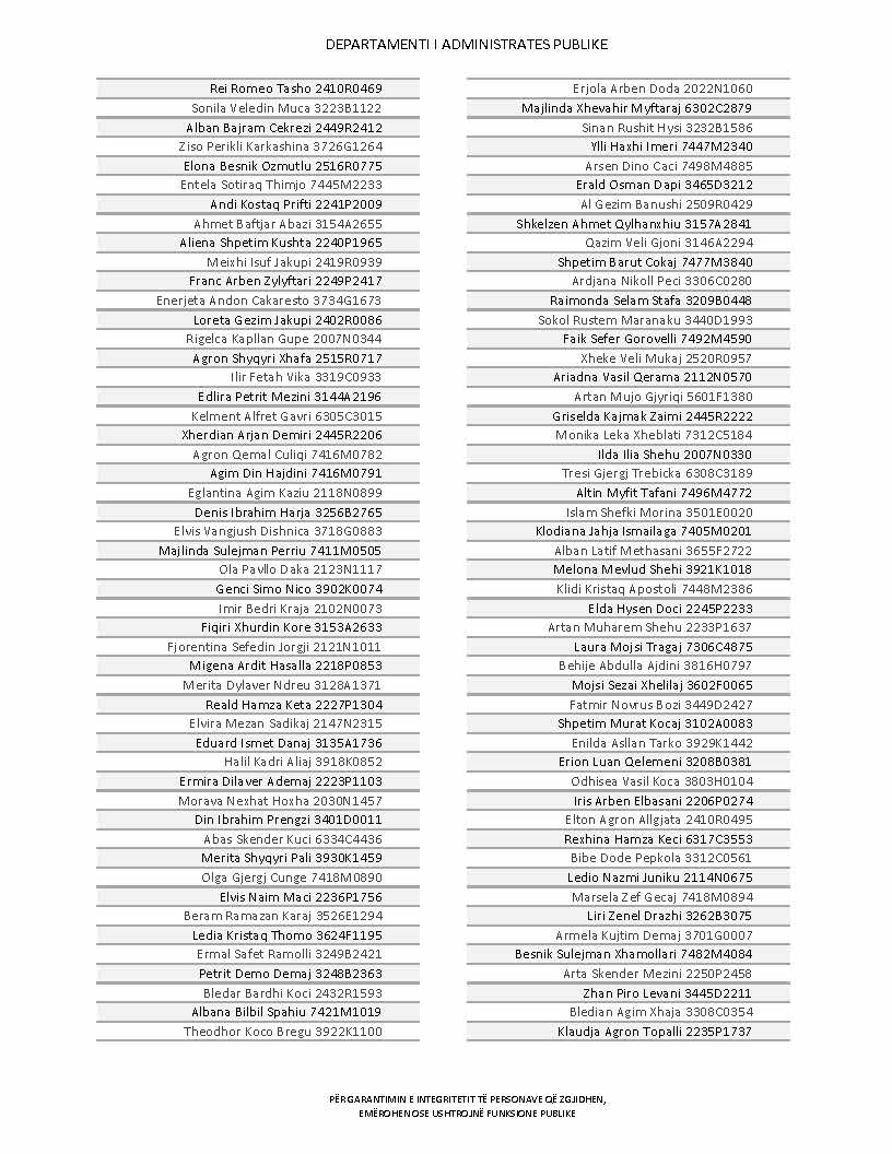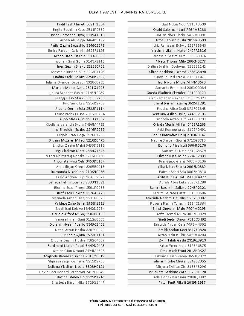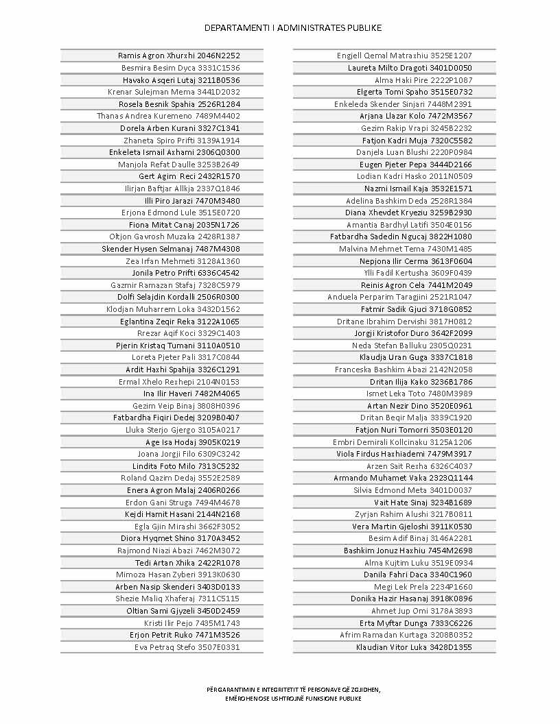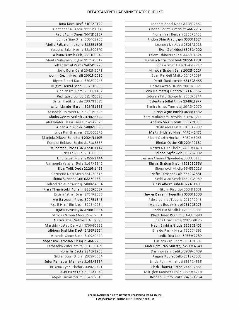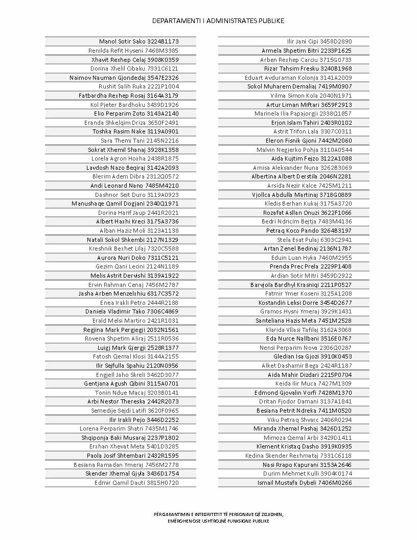 Lista e personave që kanë dorëzuar formularët e vetëdeklarimit