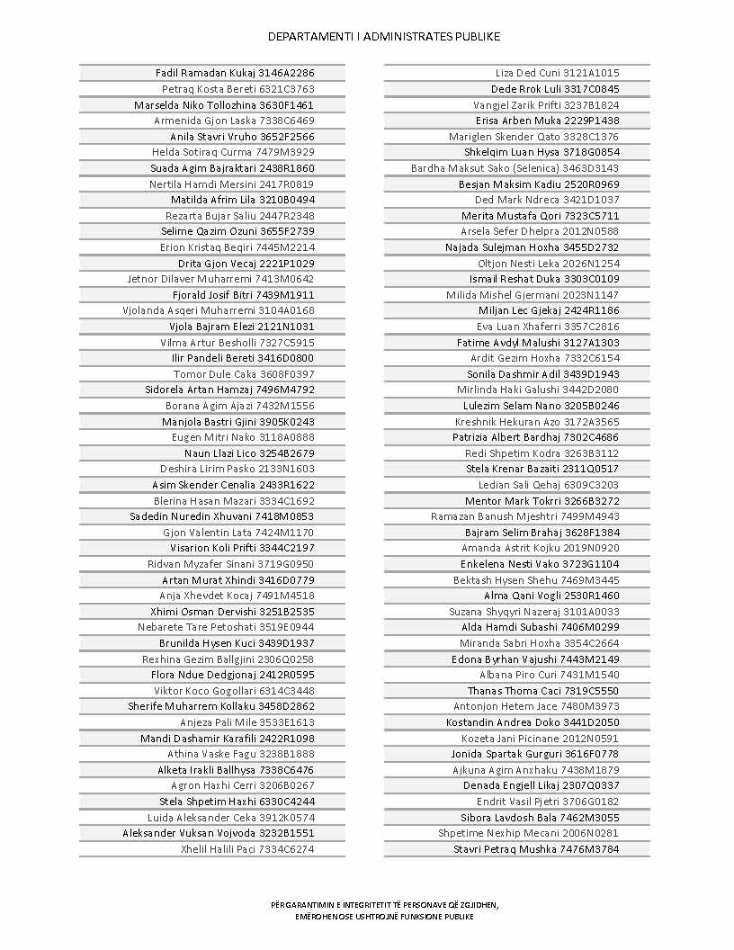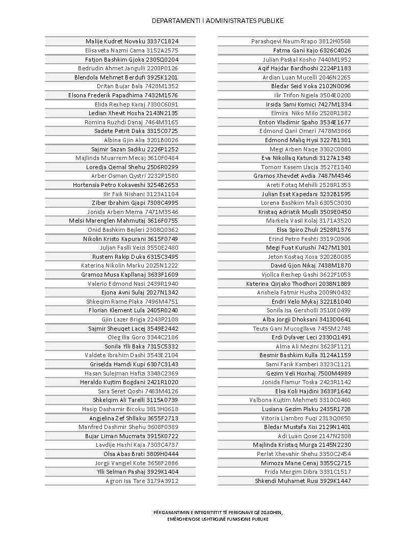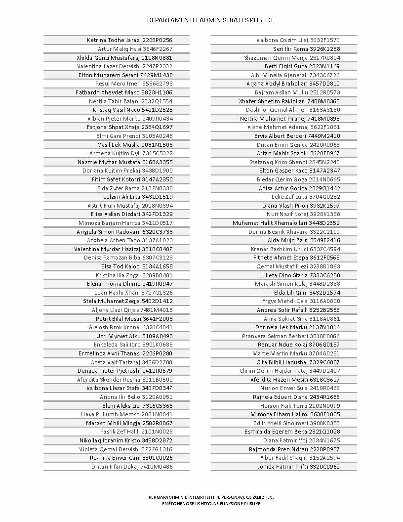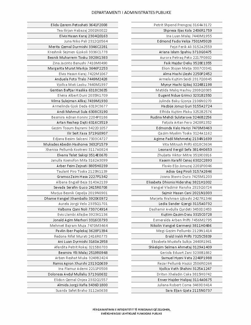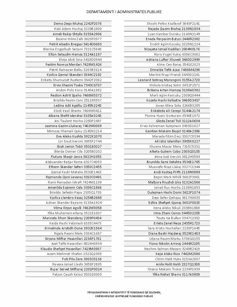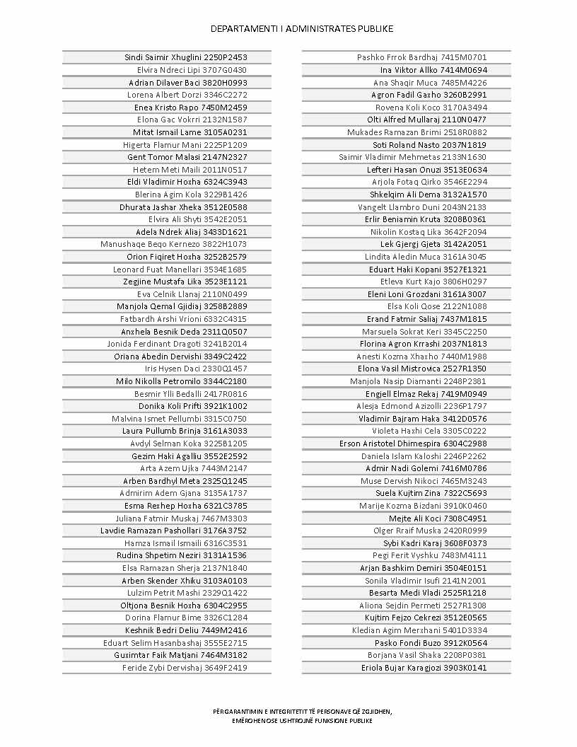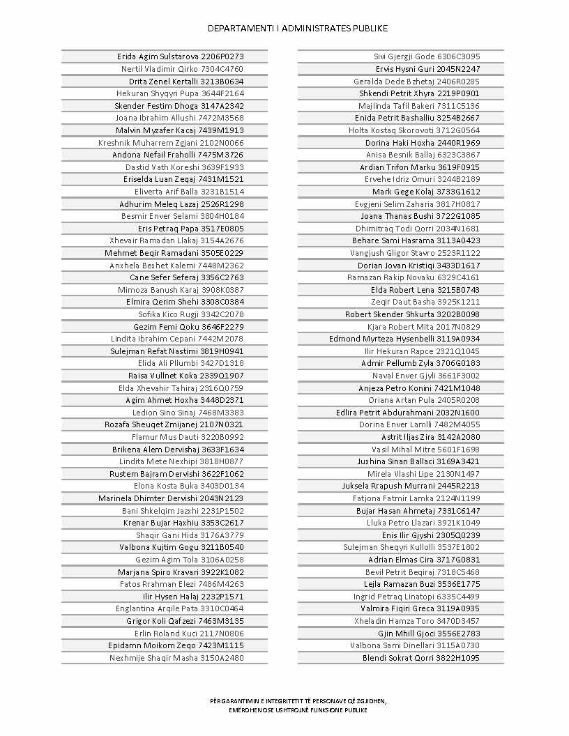 Lista e personave që kanë dorëzuar formularët e vetëdeklarimit