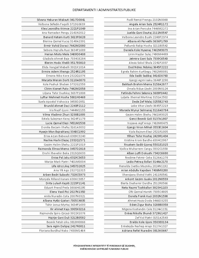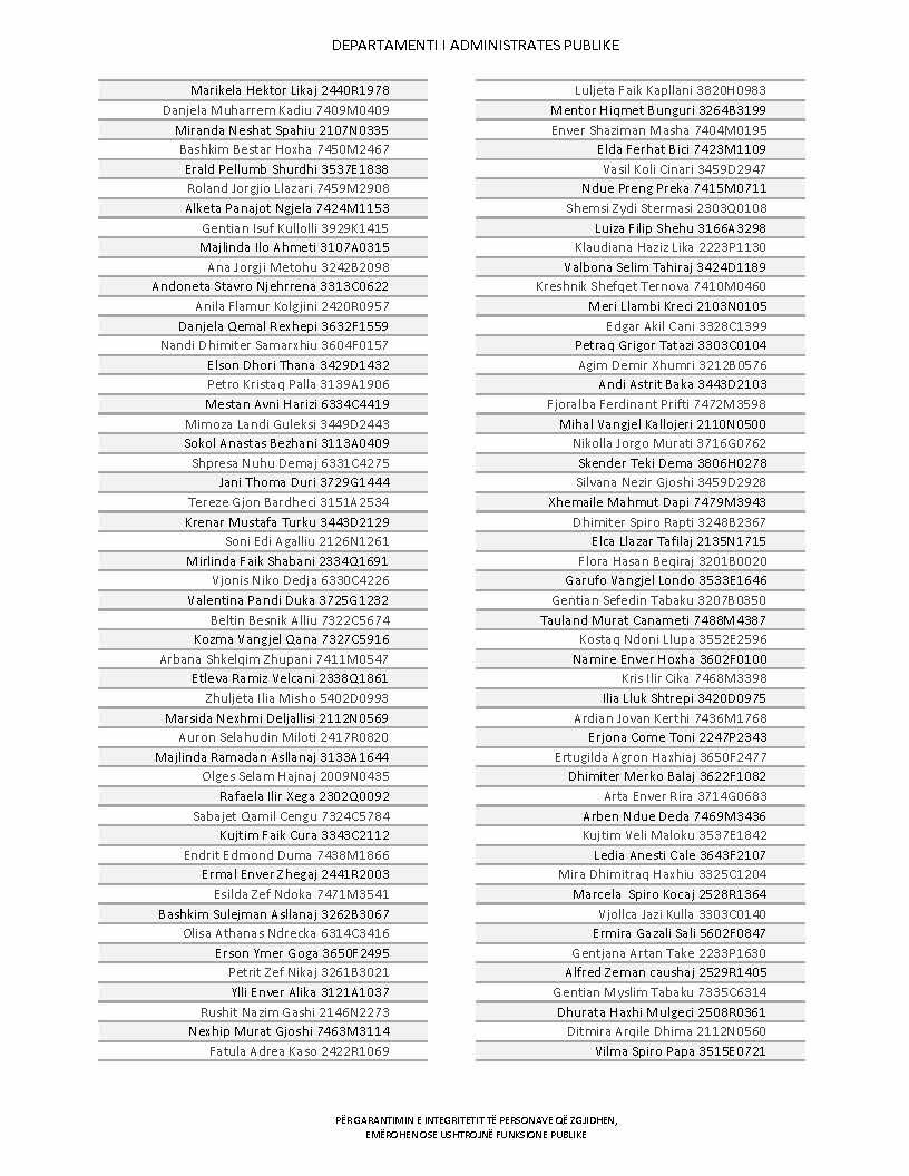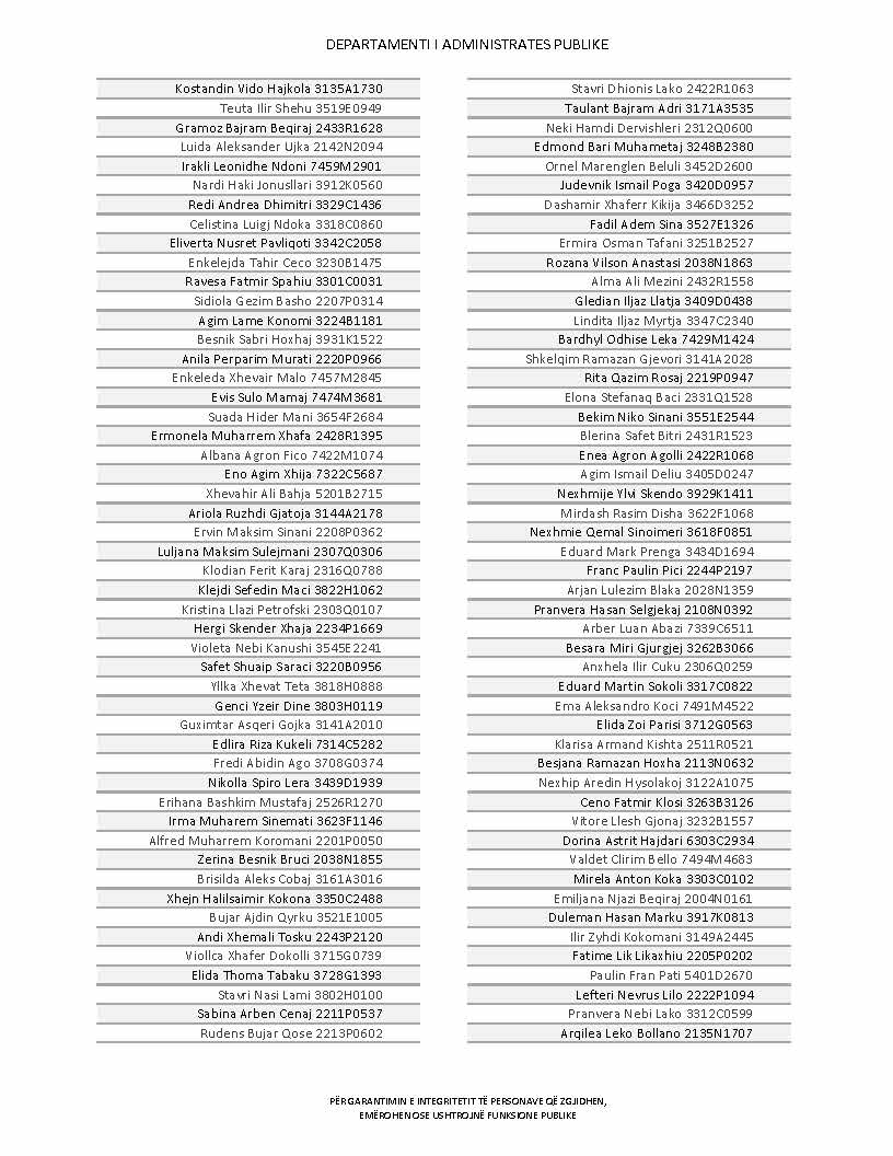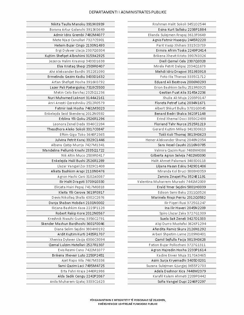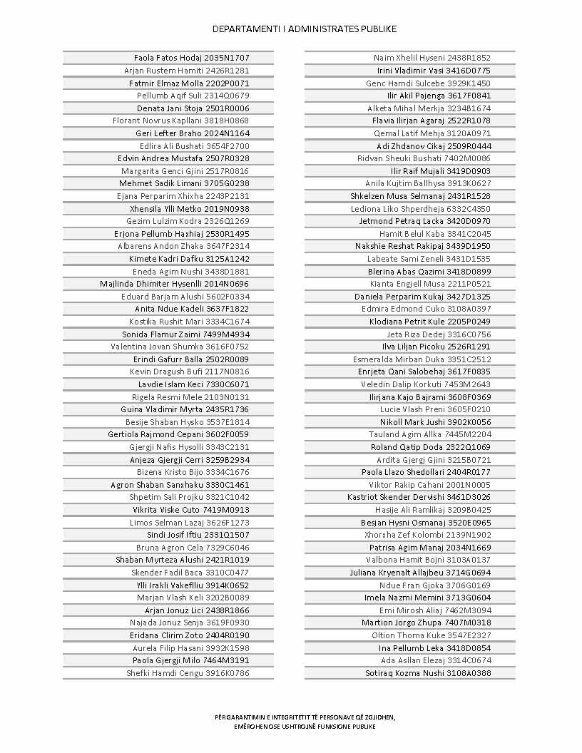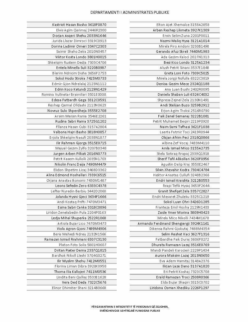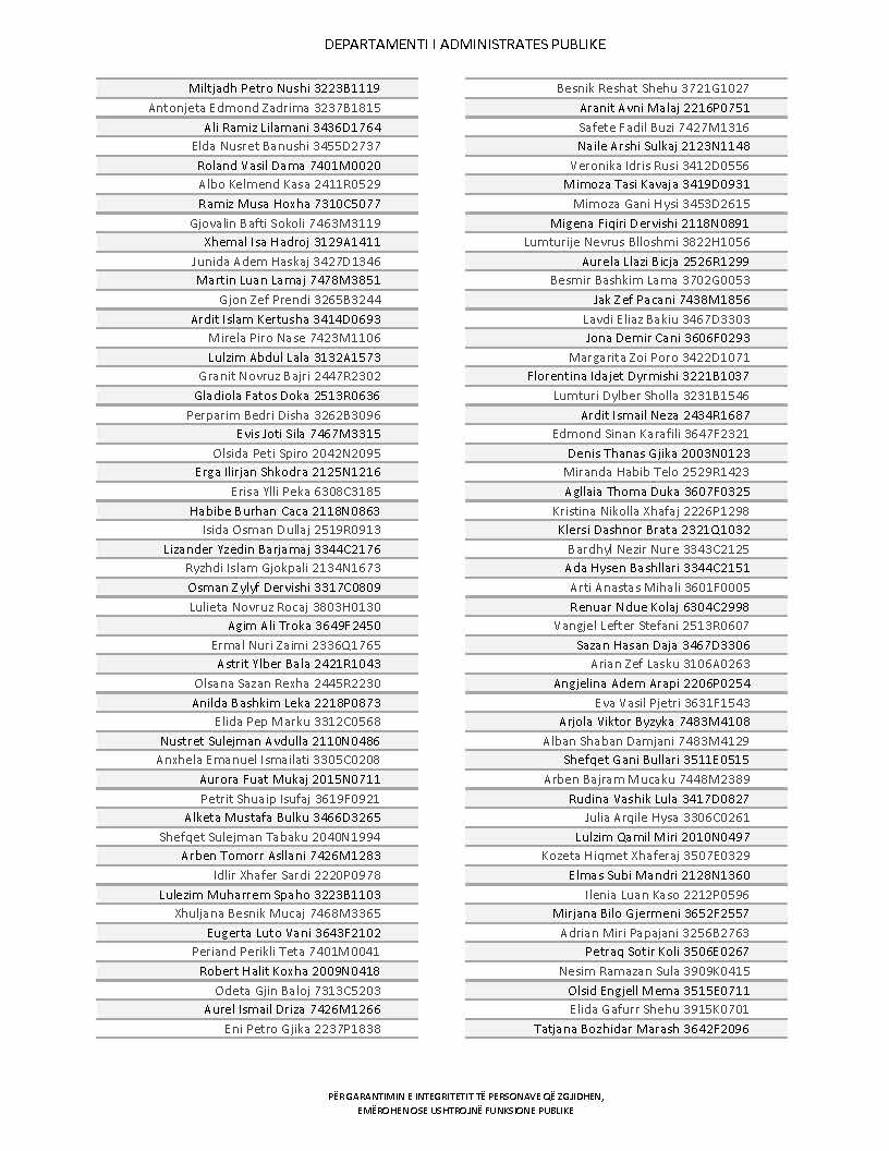 Lista e personave që kanë dorëzuar formularët e vetëdeklarimit