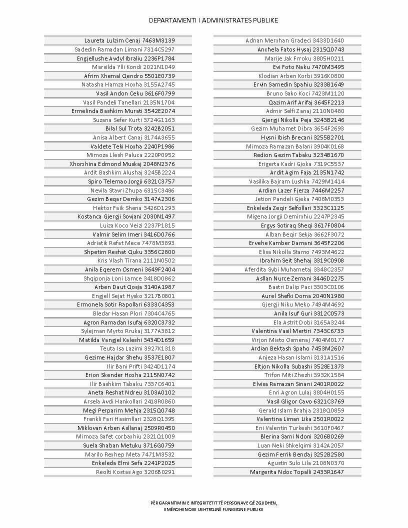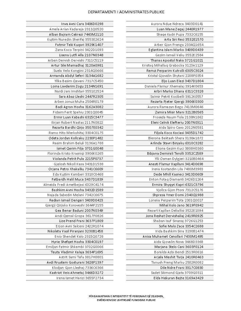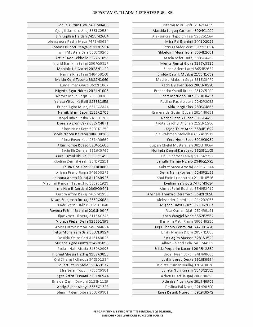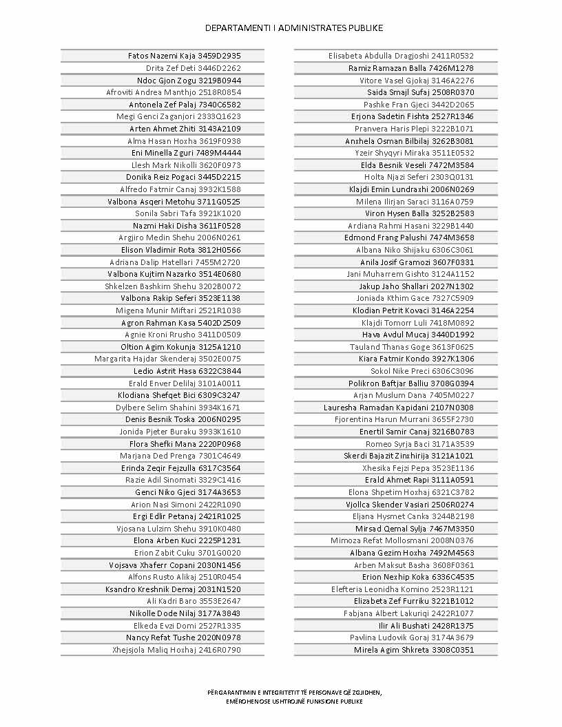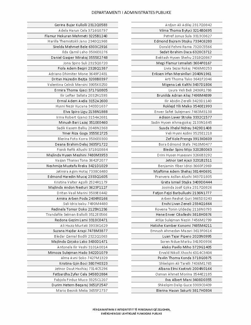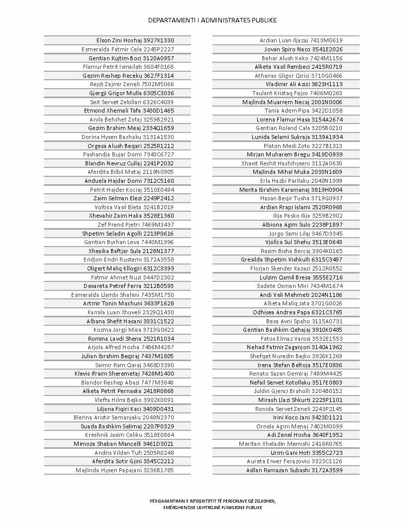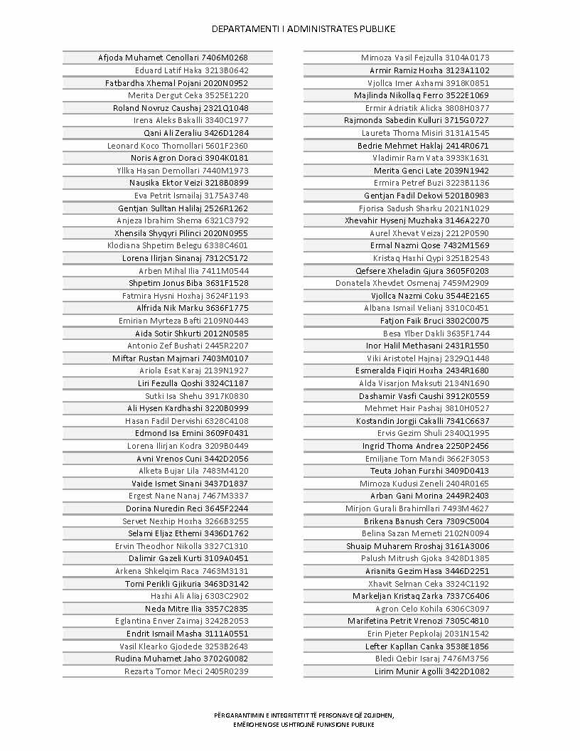 Lista e personave që kanë dorëzuar formularët e vetëdeklarimit