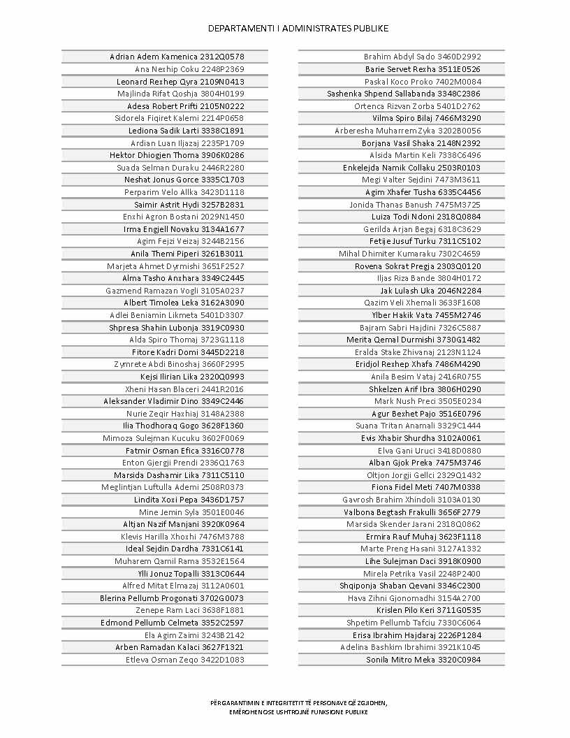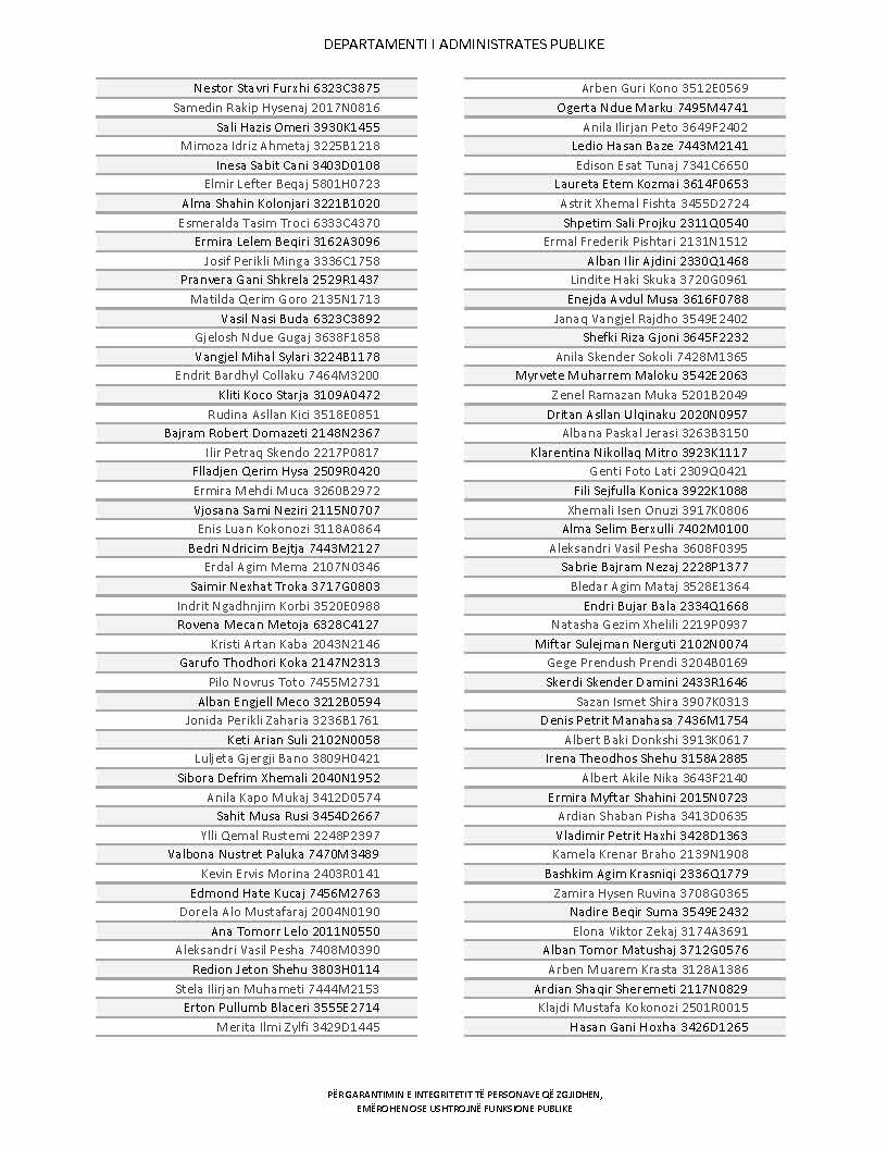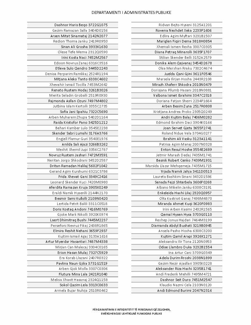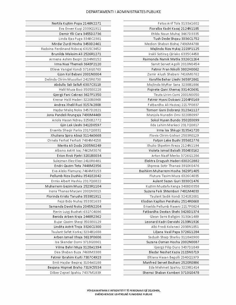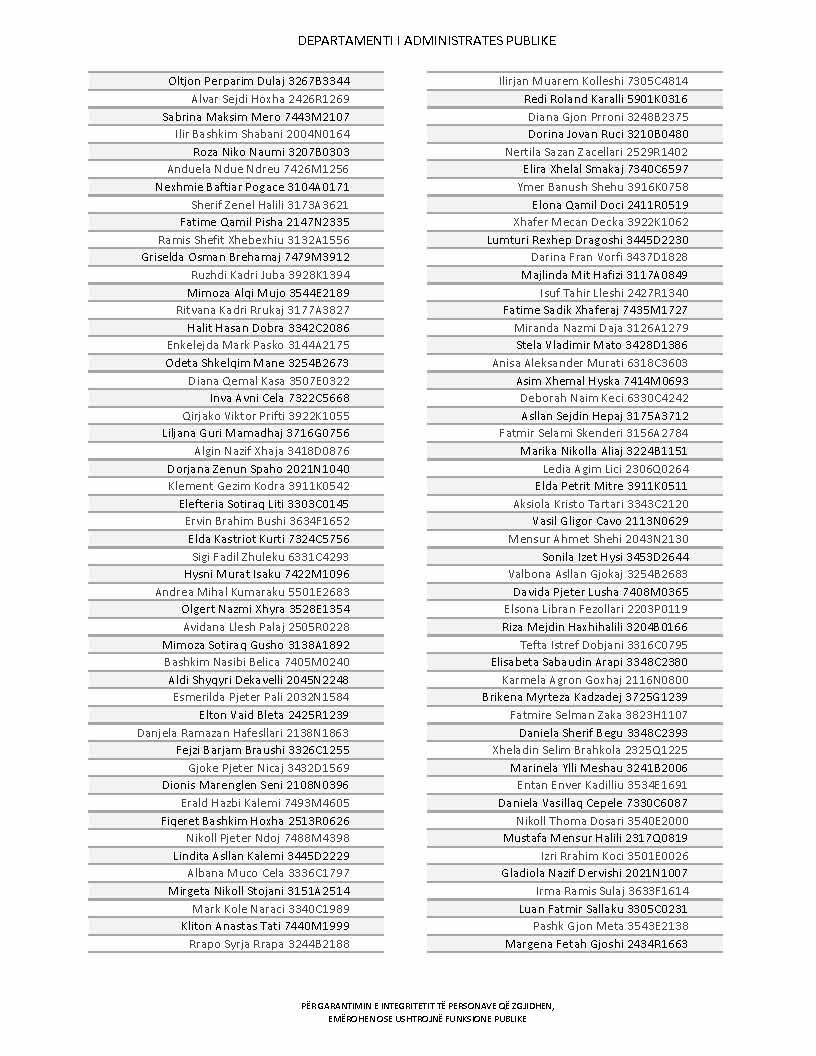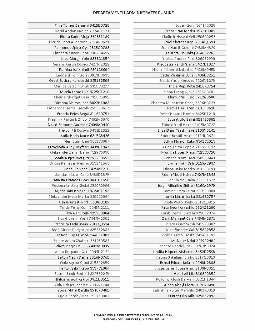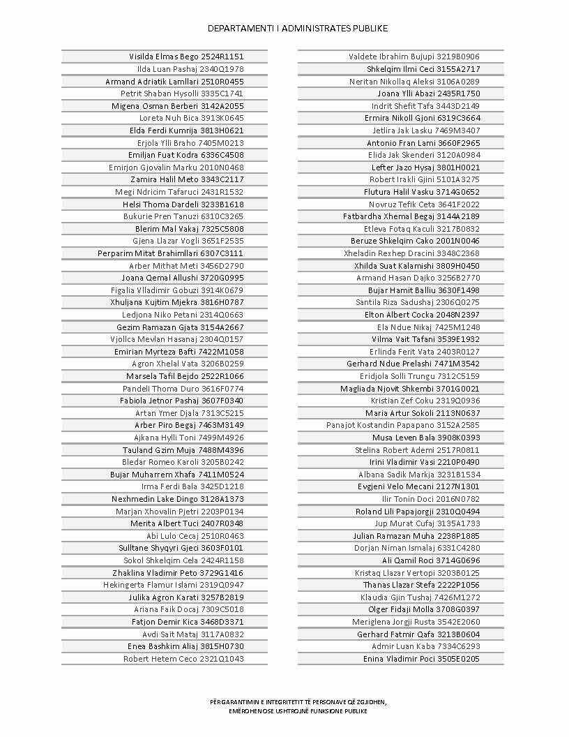 Lista e personave që kanë dorëzuar formularët e vetëdeklarimit