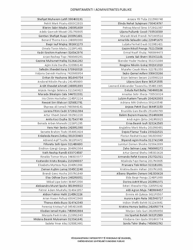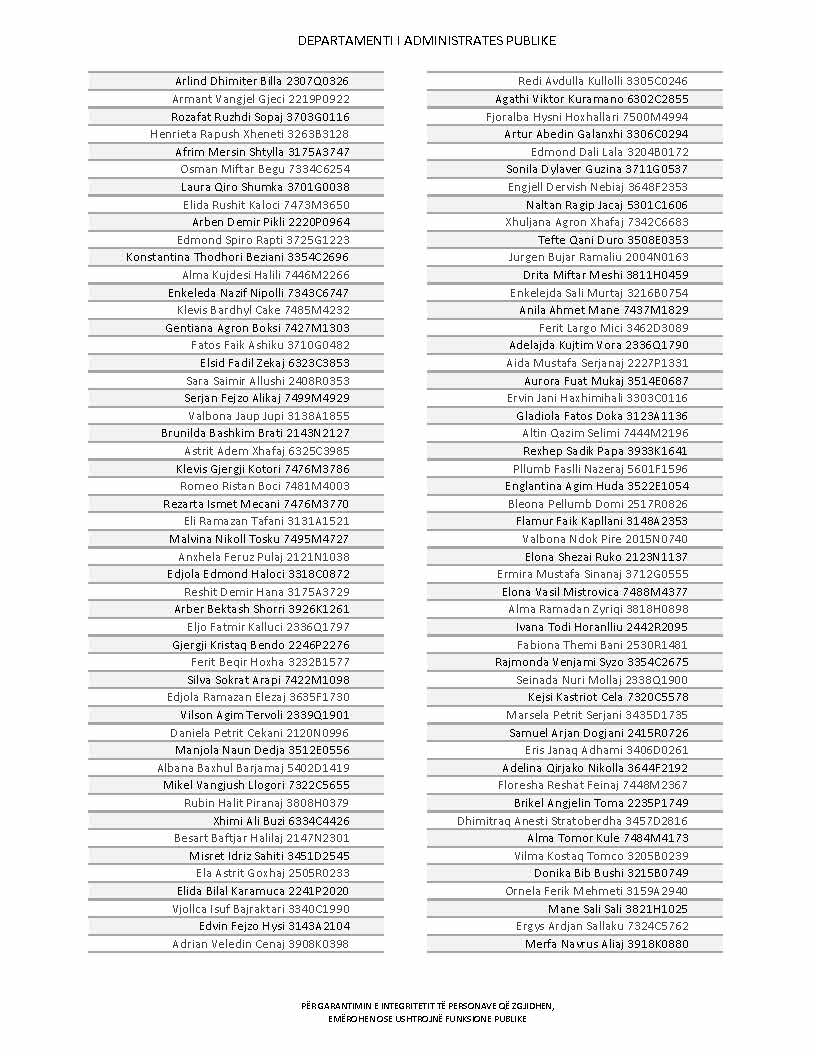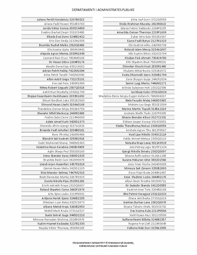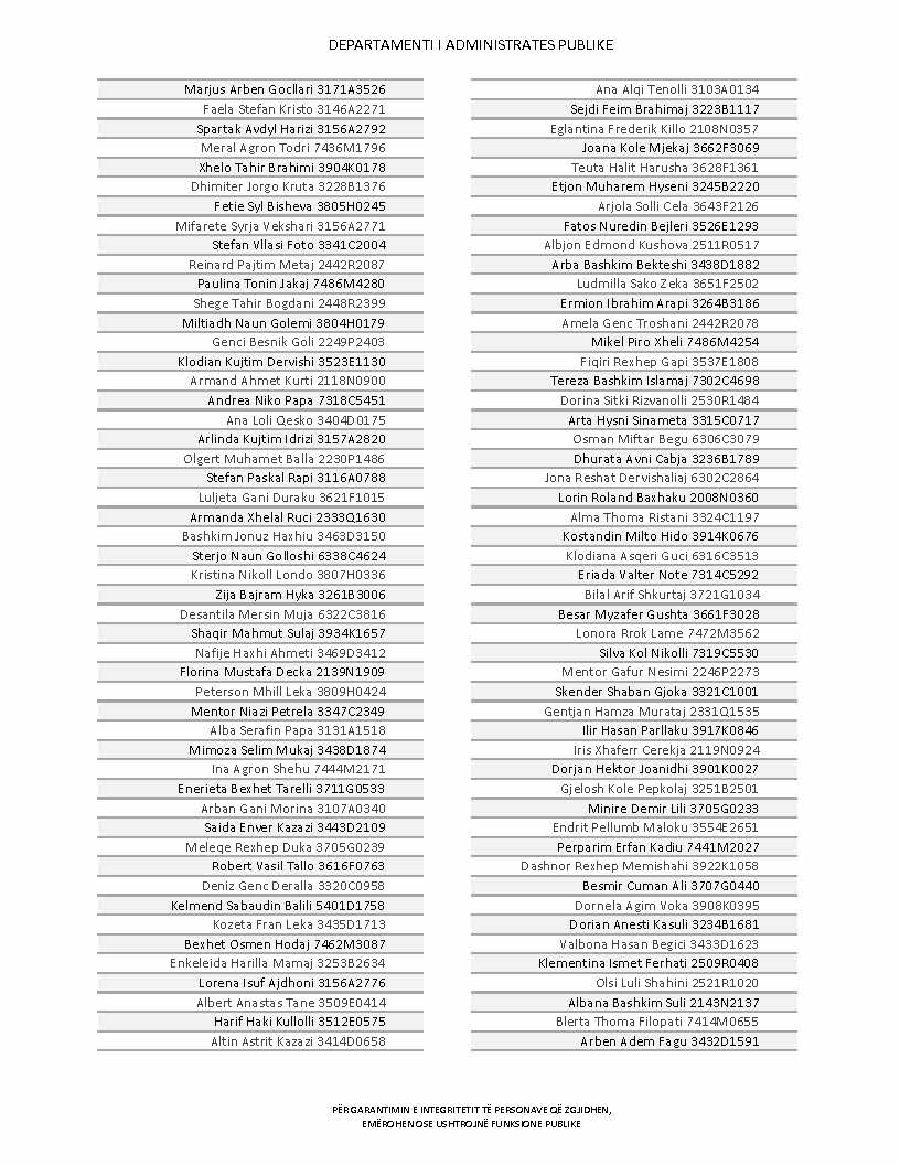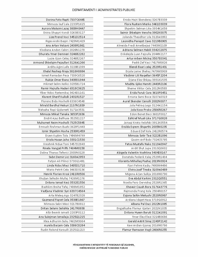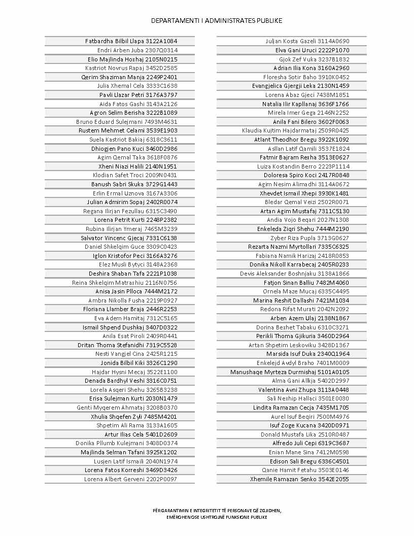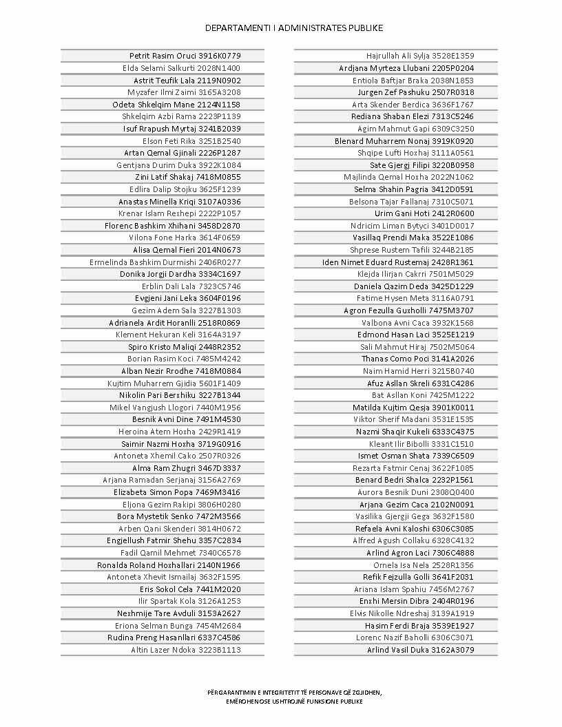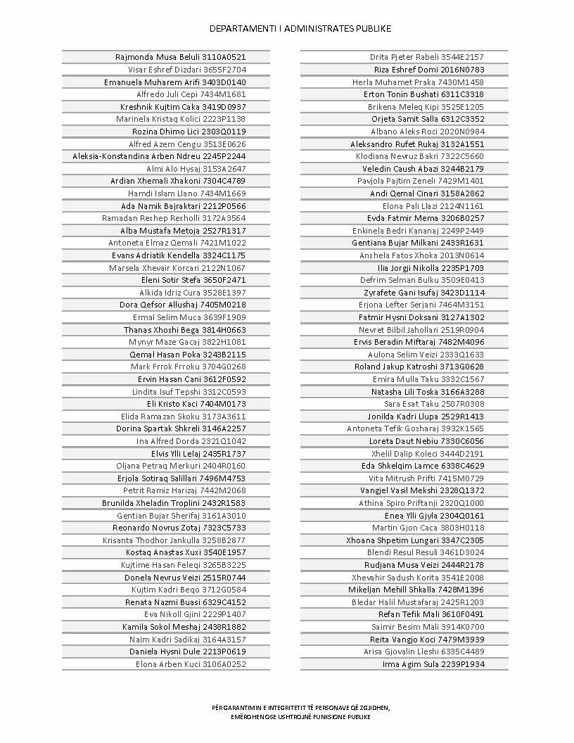 Lista e personave që kanë dorëzuar formularët e vetëdeklarimit