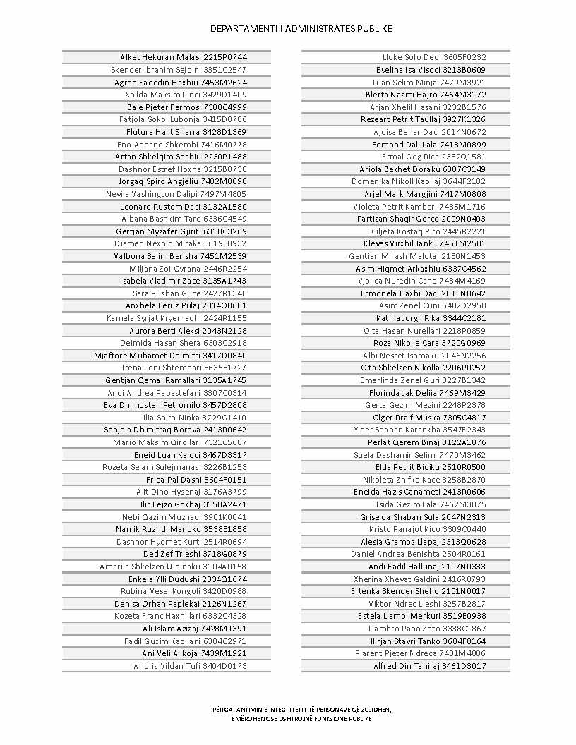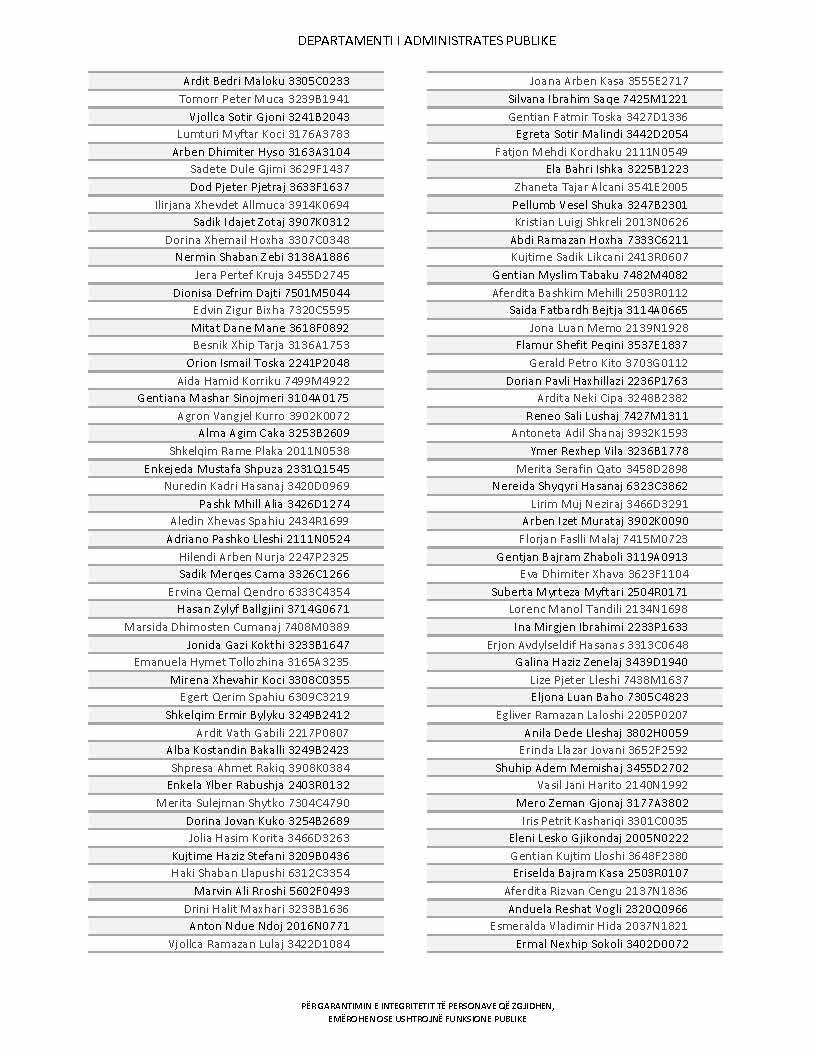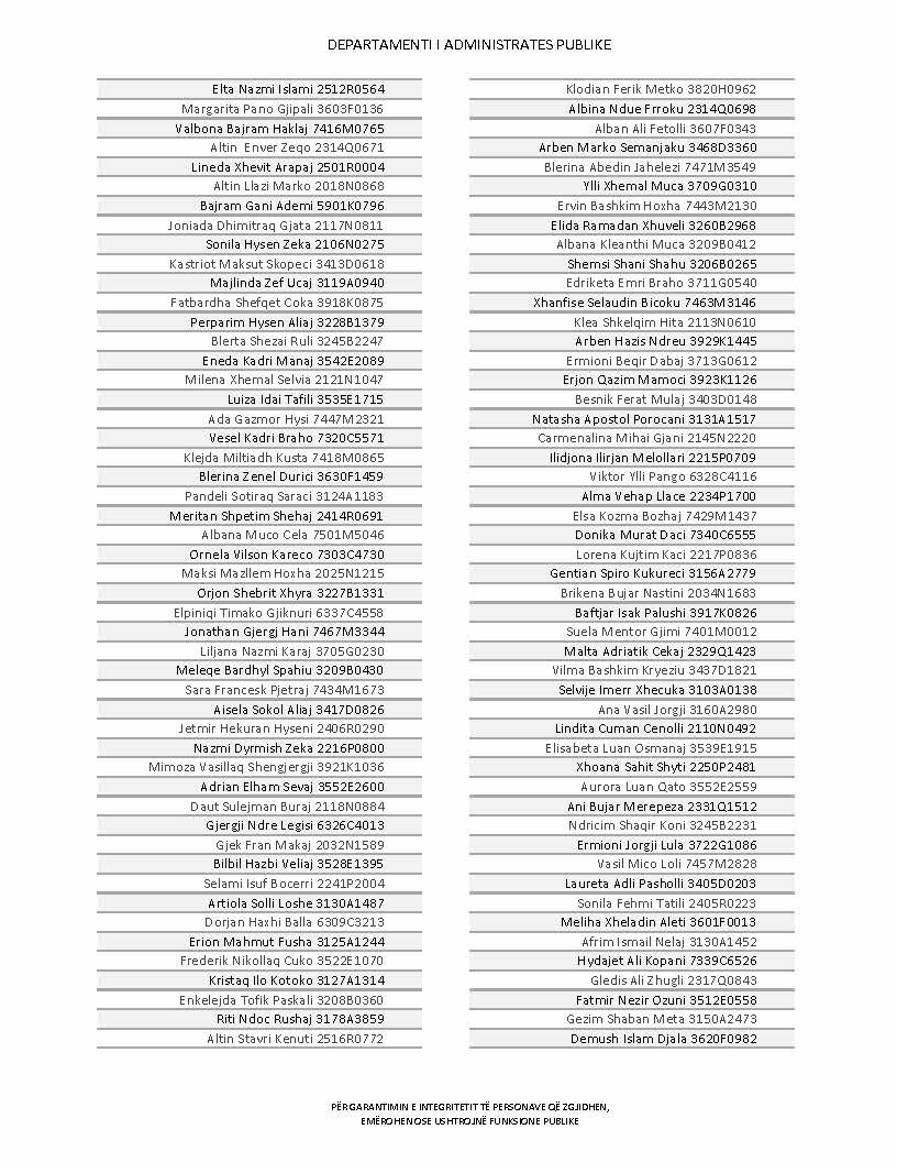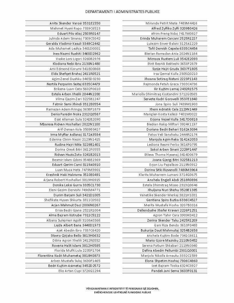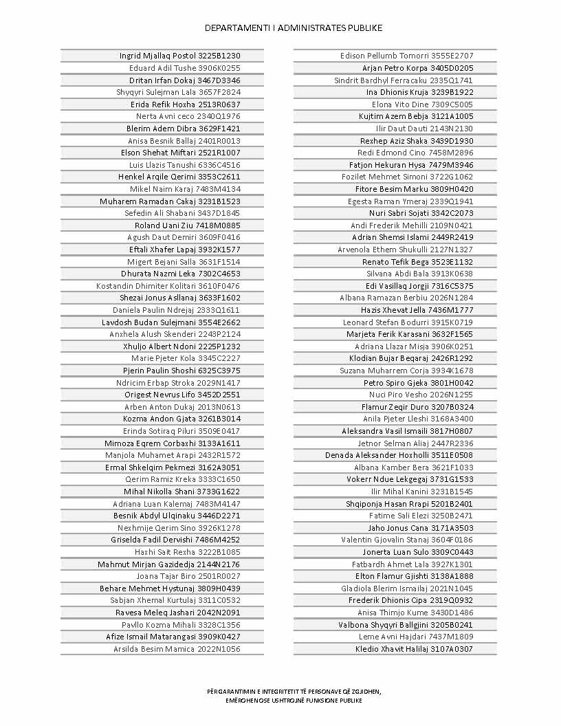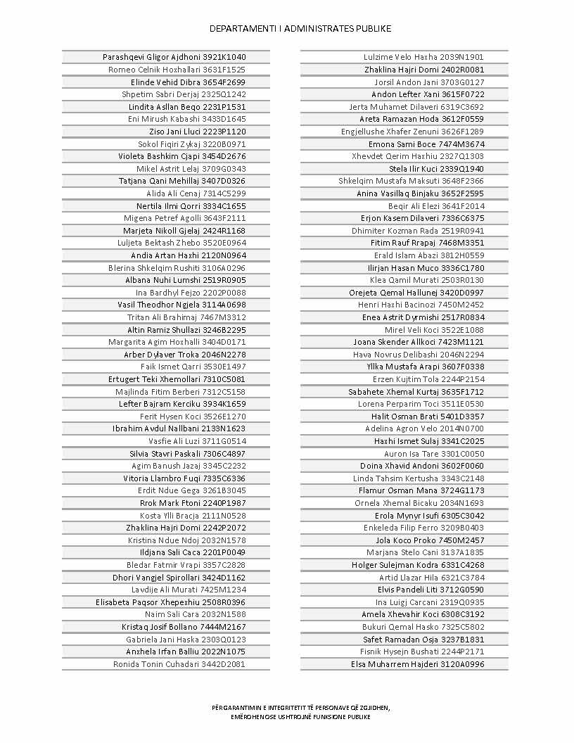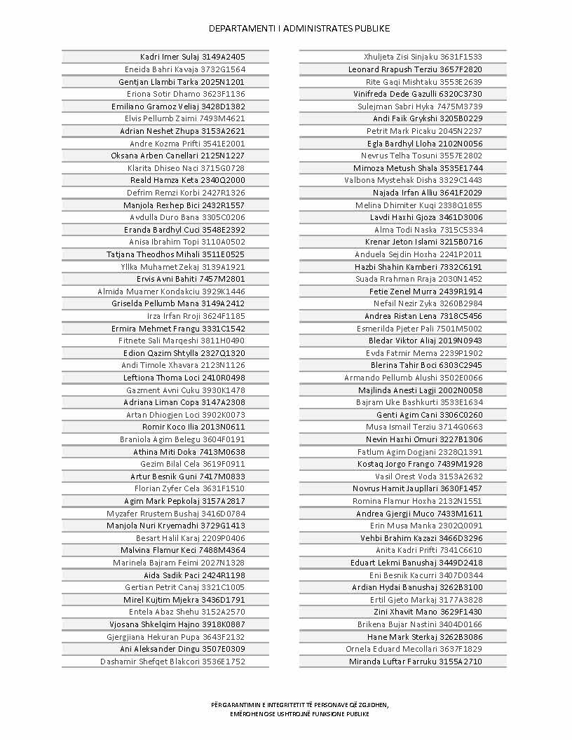 Lista e personave që kanë dorëzuar formularët e vetëdeklarimit