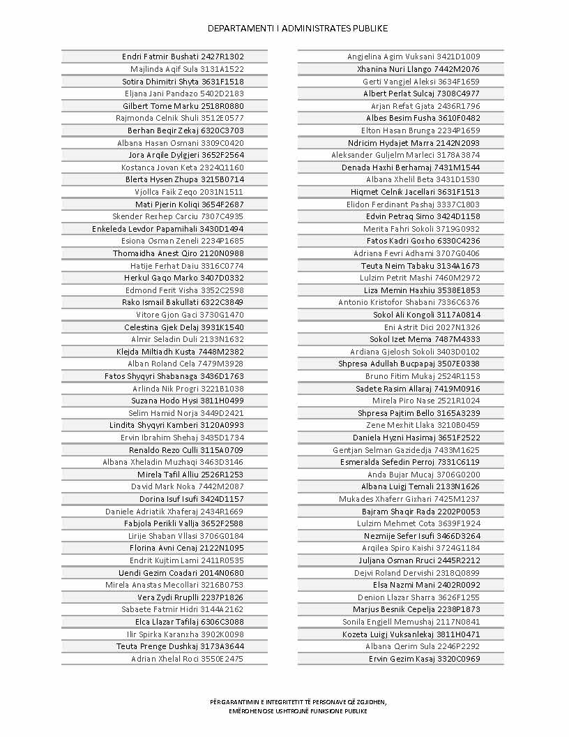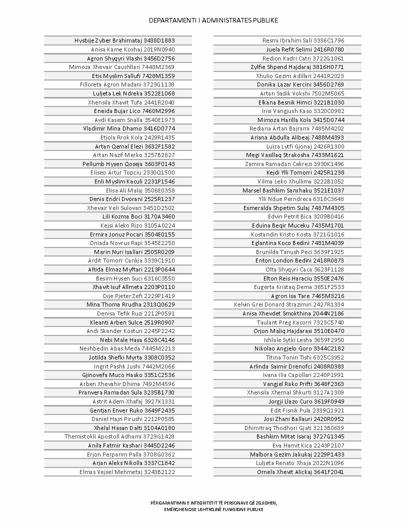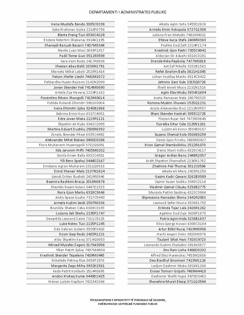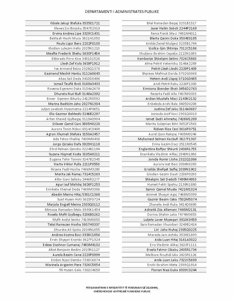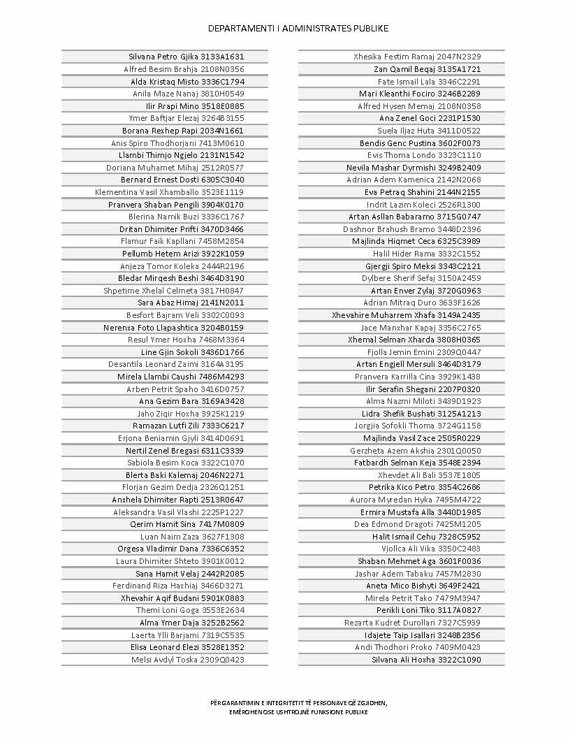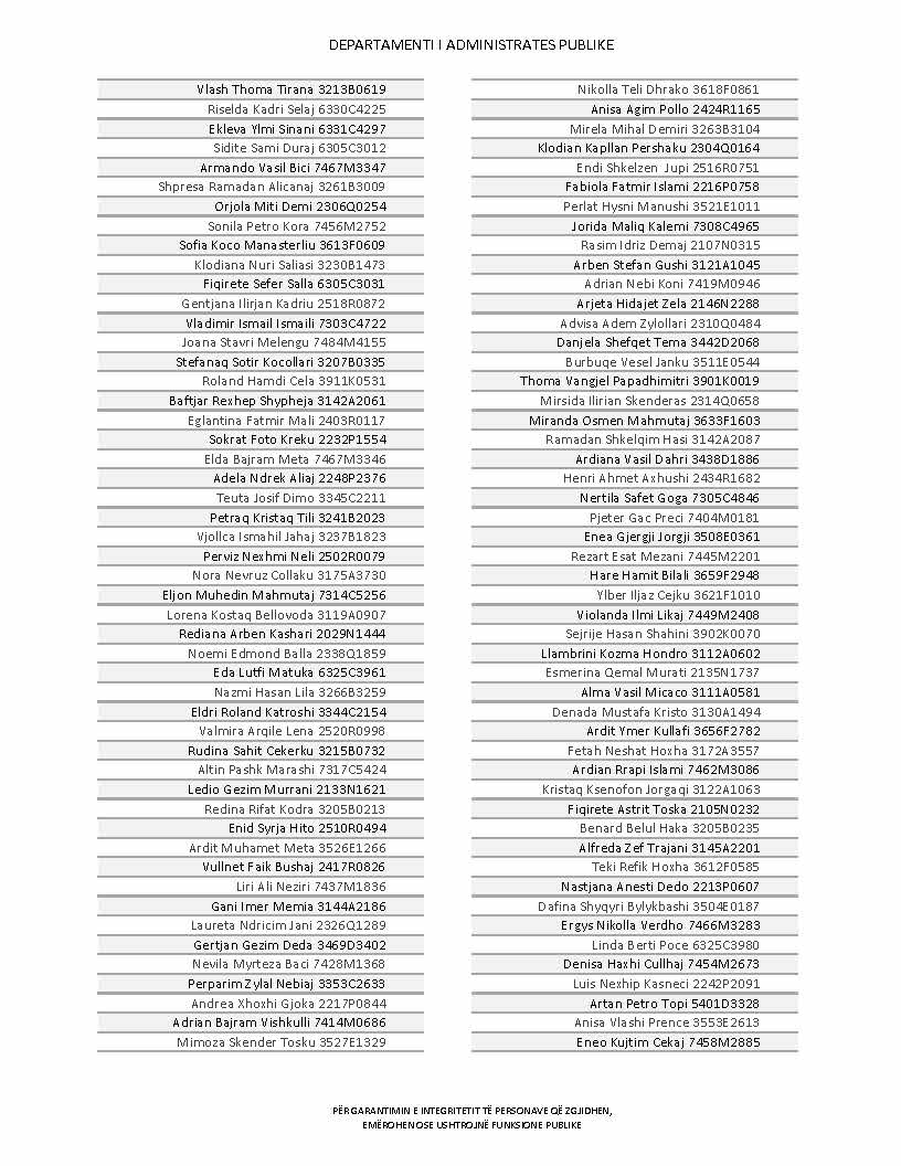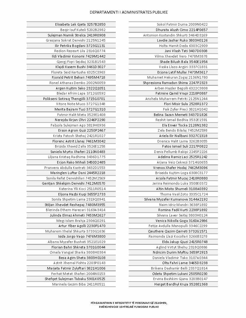 Lista e personave që kanë dorëzuar formularët e vetëdeklarimit