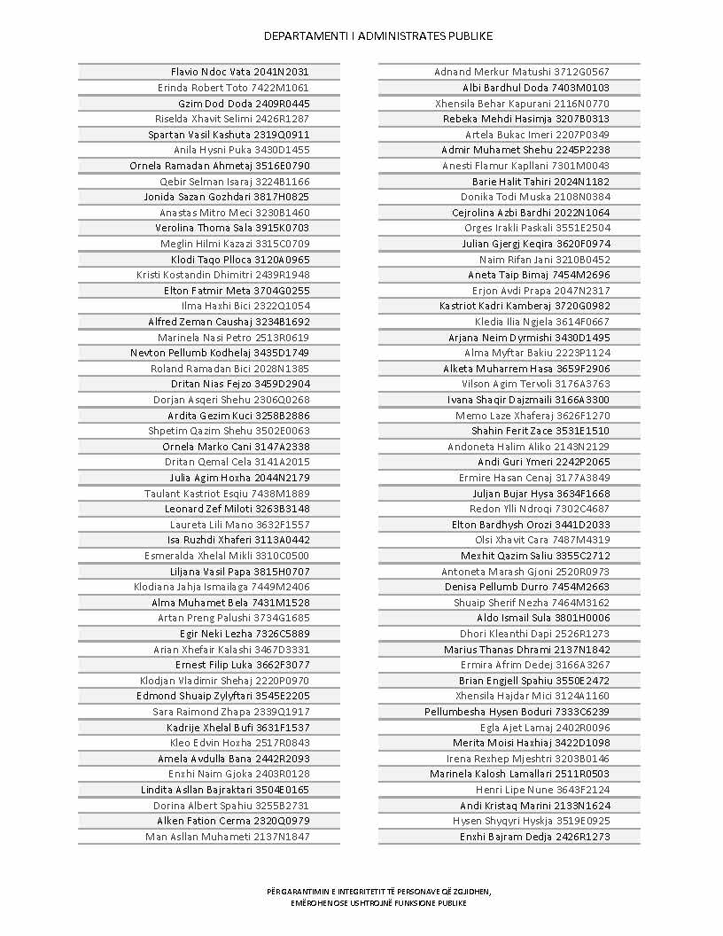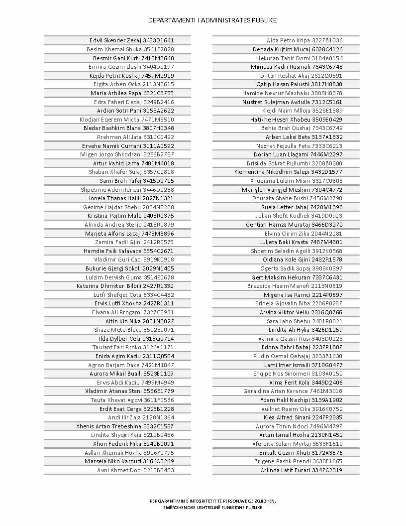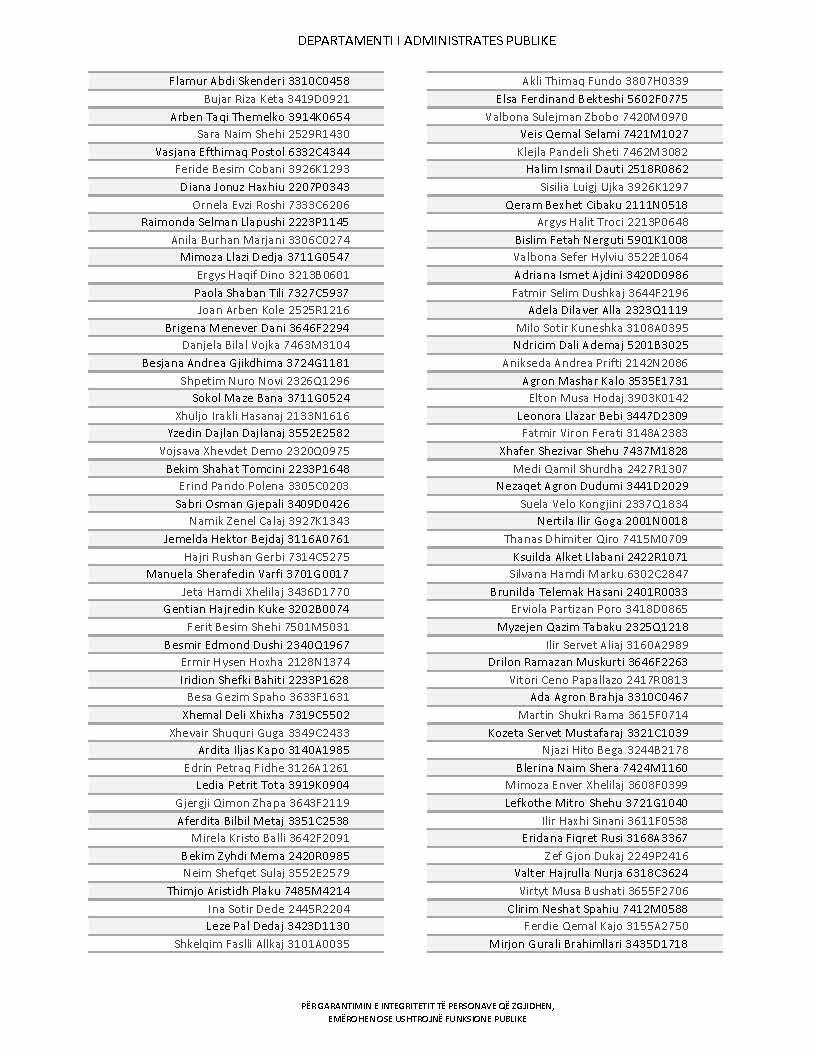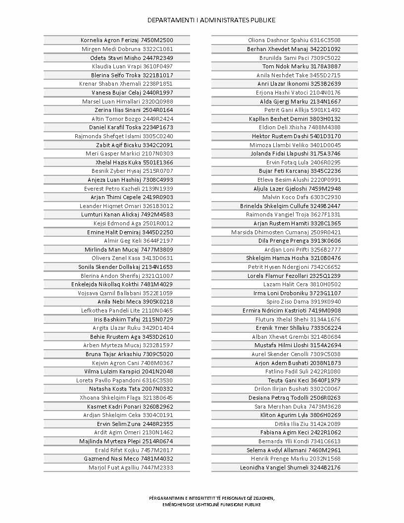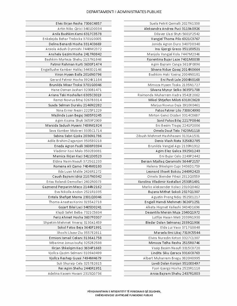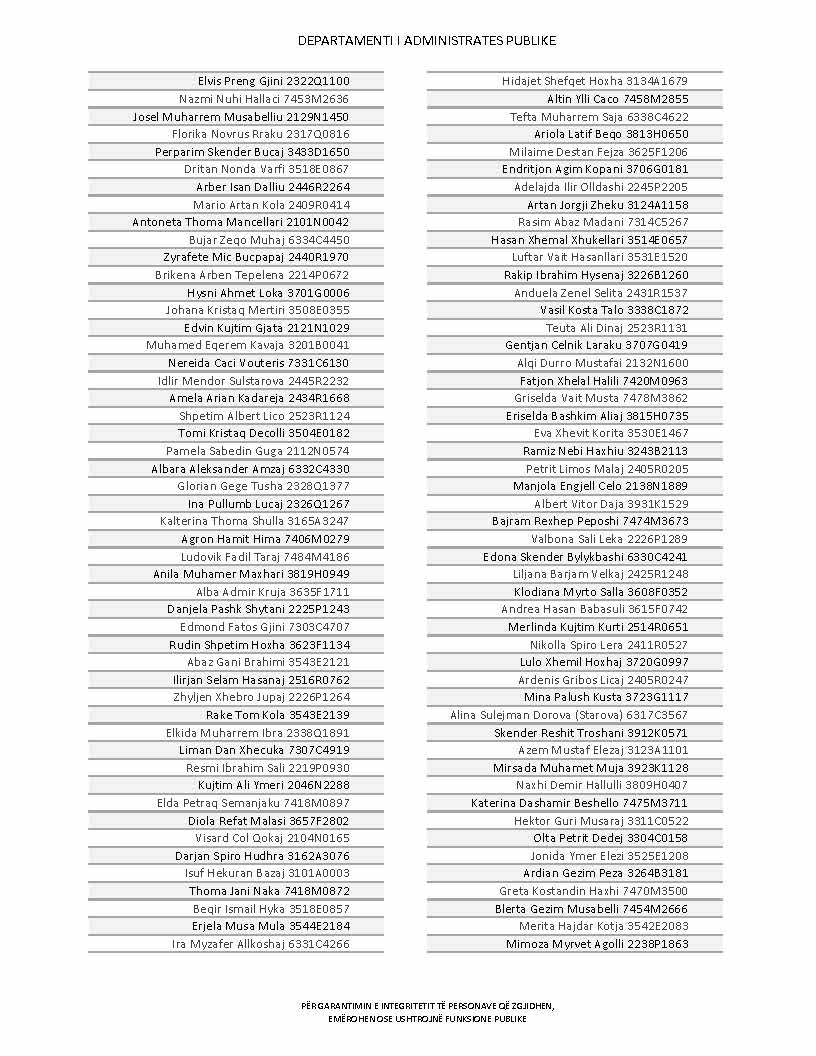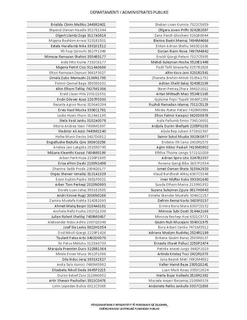 Lista e personave që kanë dorëzuar formularët e vetëdeklarimit