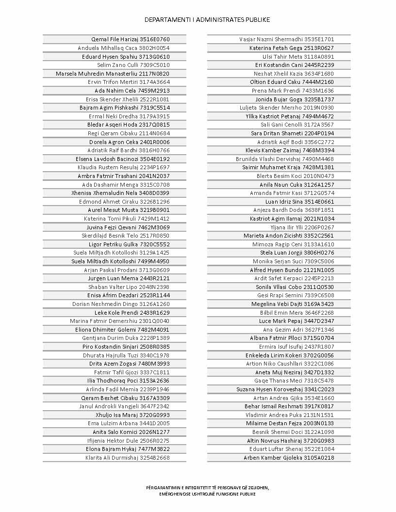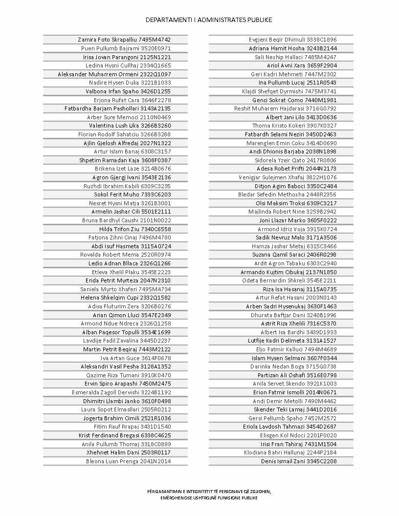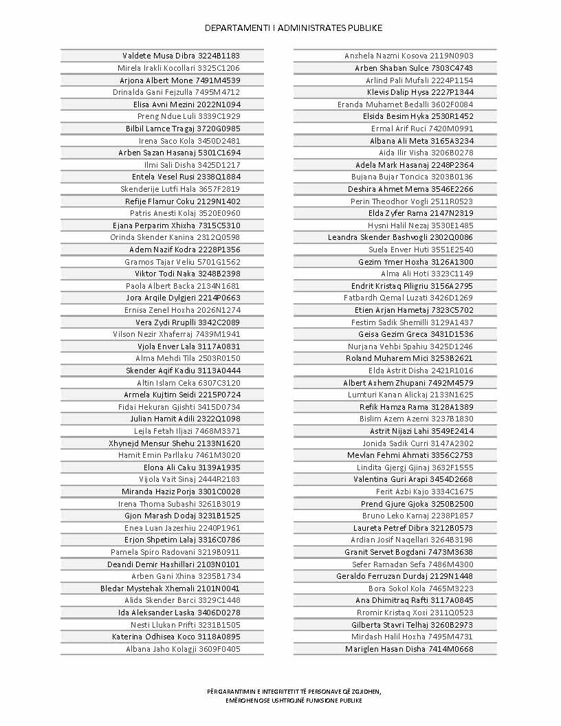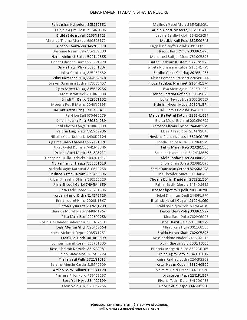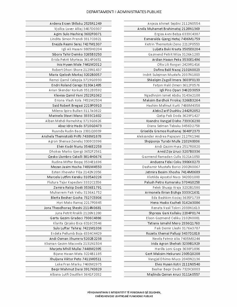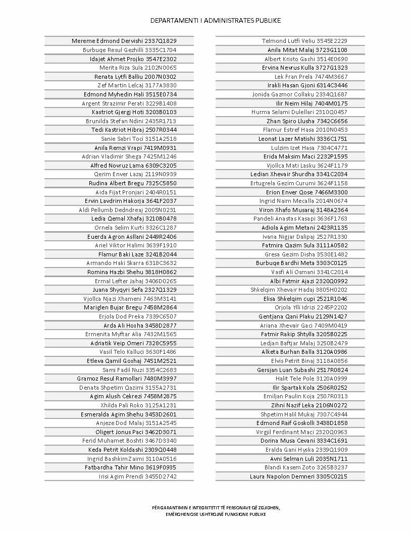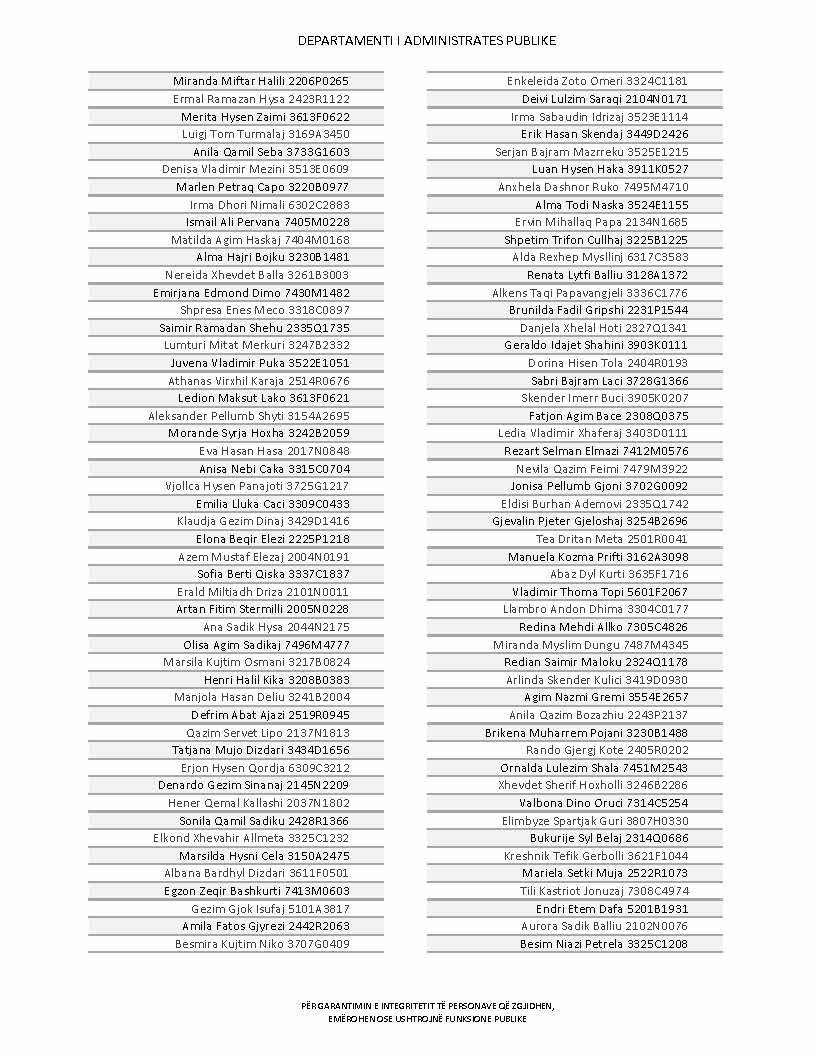 Lista e personave që kanë dorëzuar formularët e vetëdeklarimit