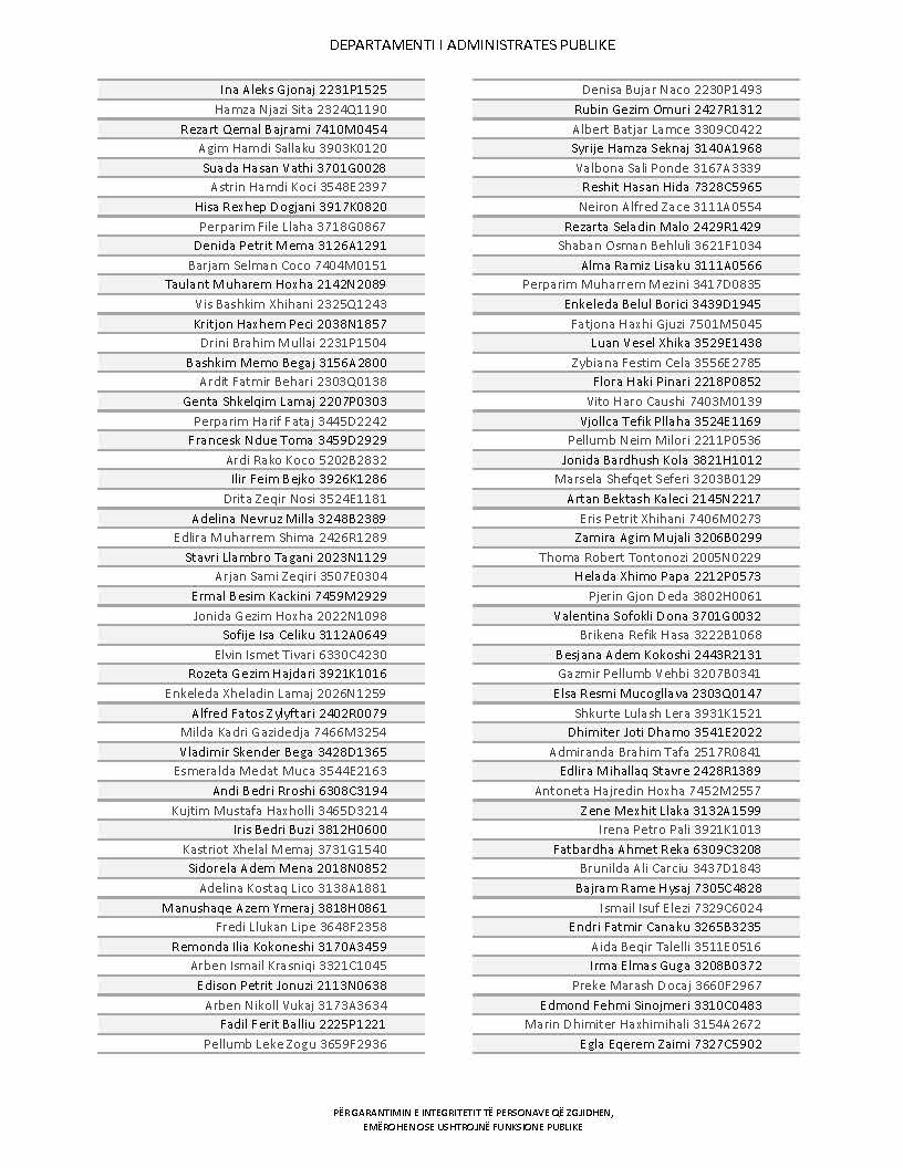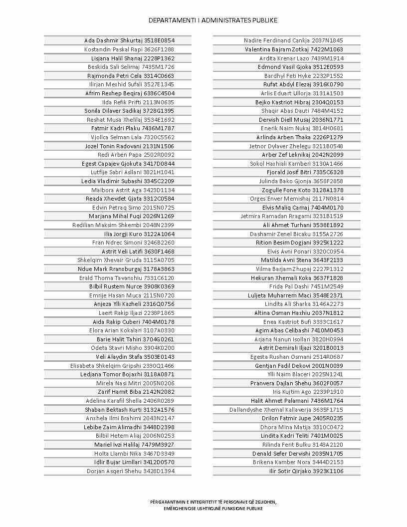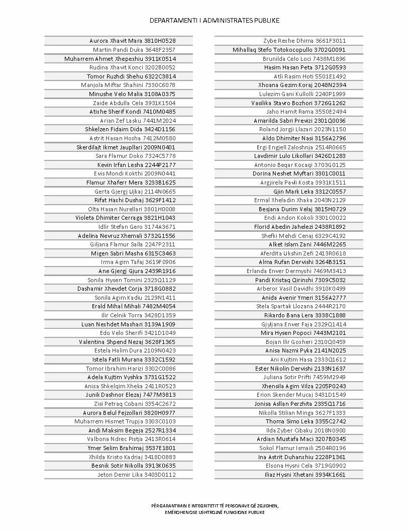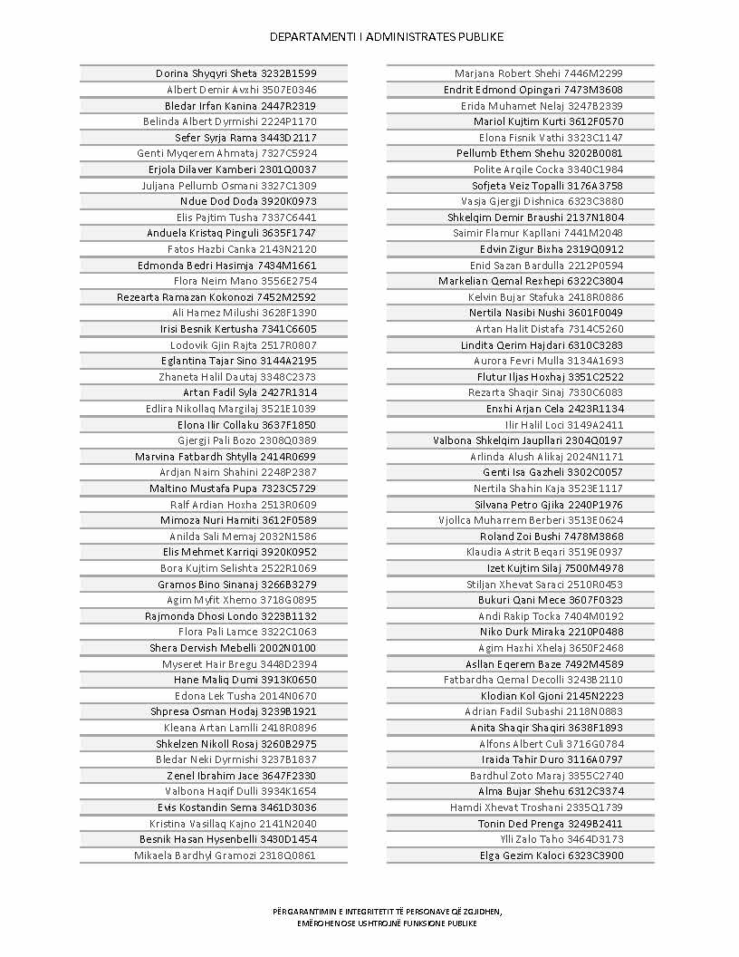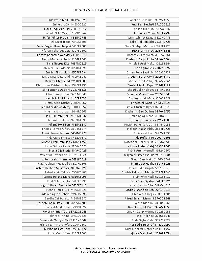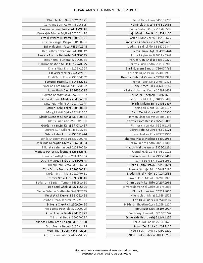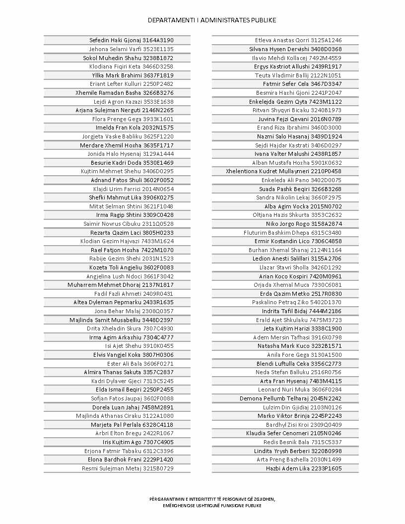 Lista e personave që kanë dorëzuar formularët e vetëdeklarimit