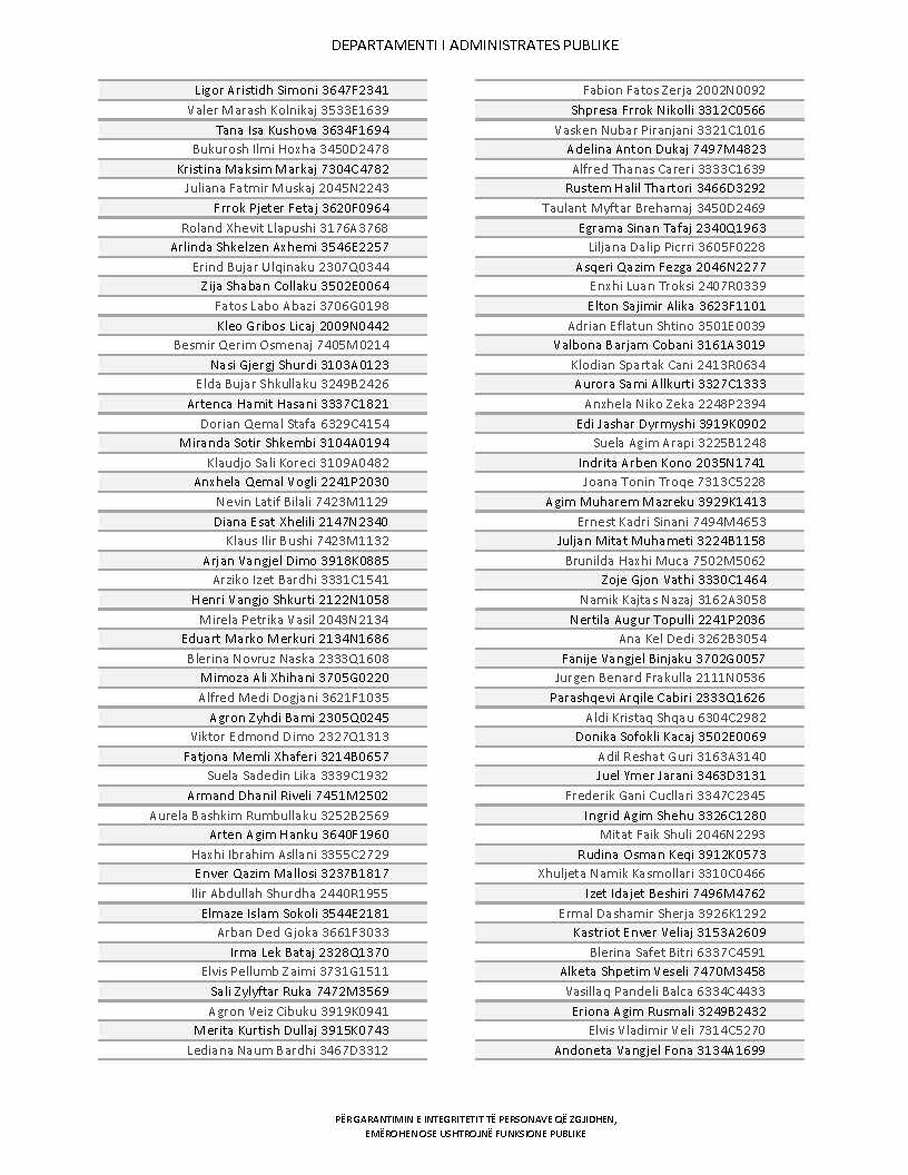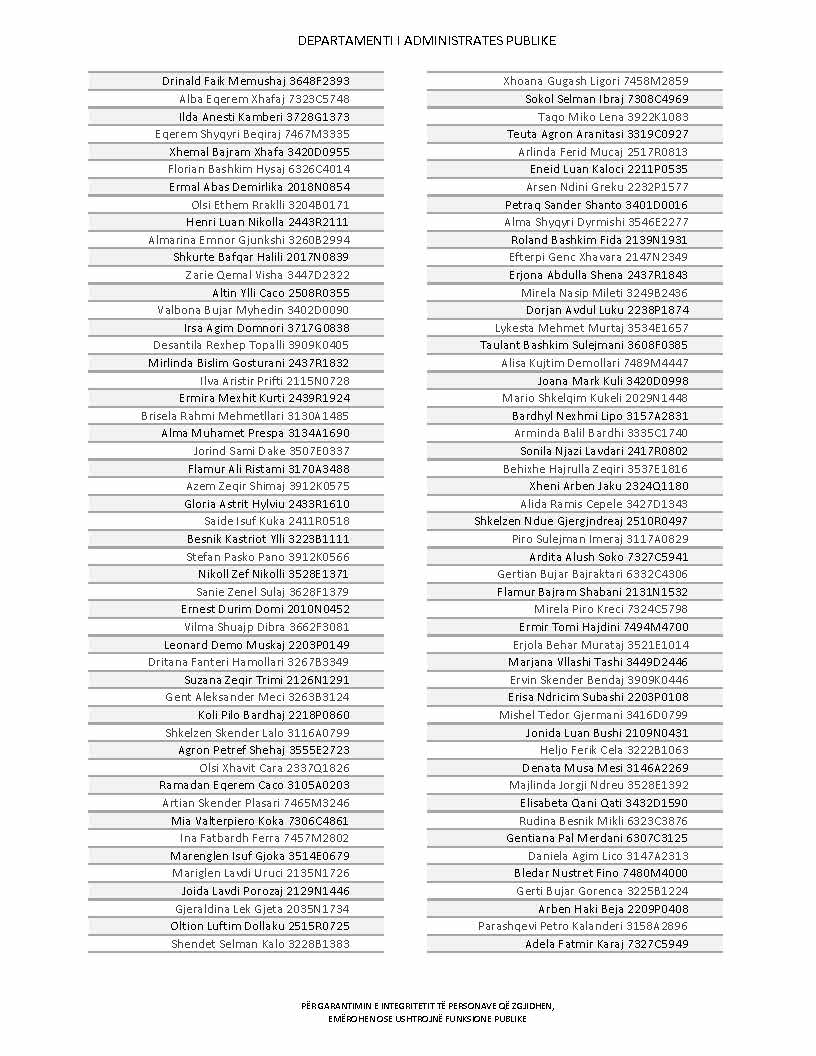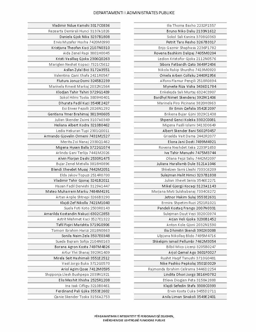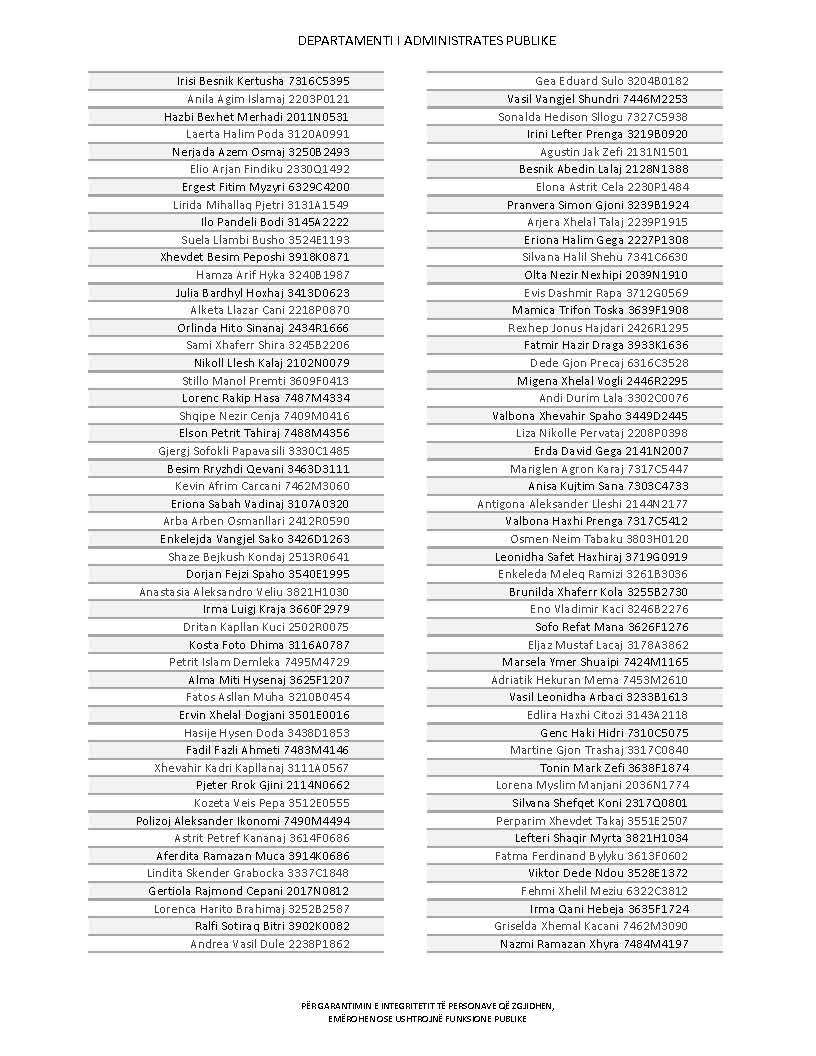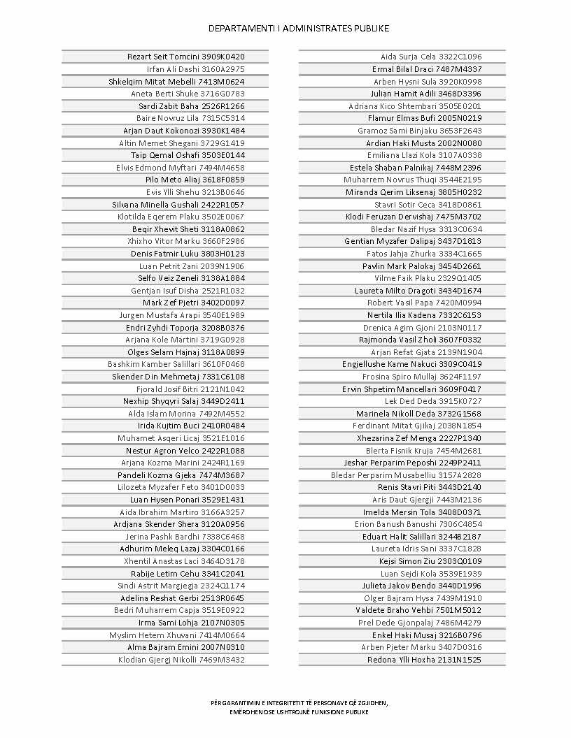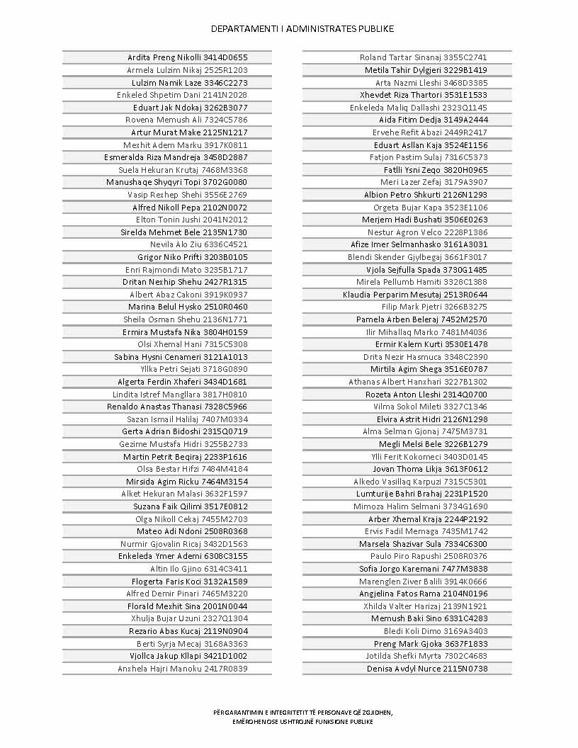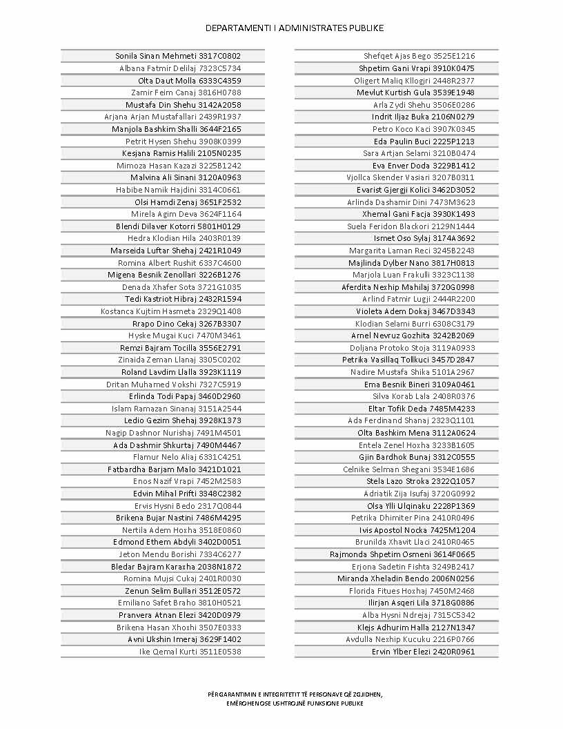 Lista e personave që kanë dorëzuar formularët e vetëdeklarimit