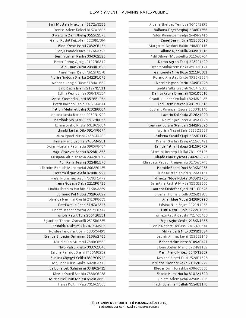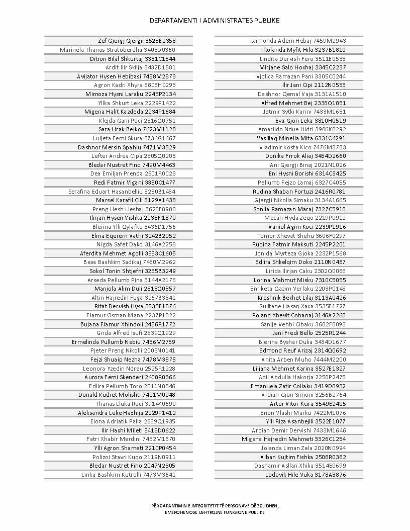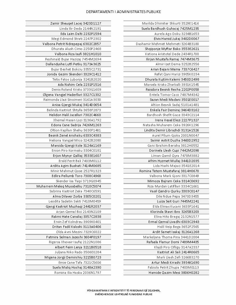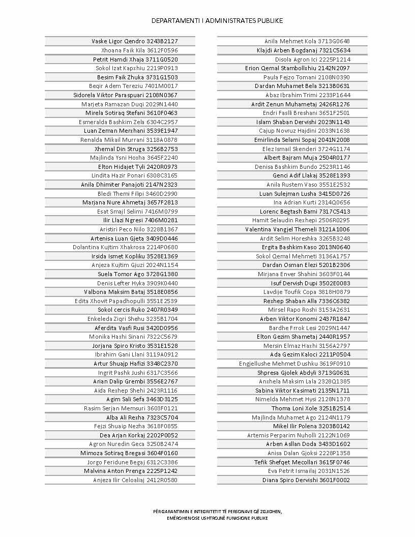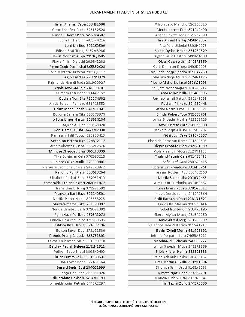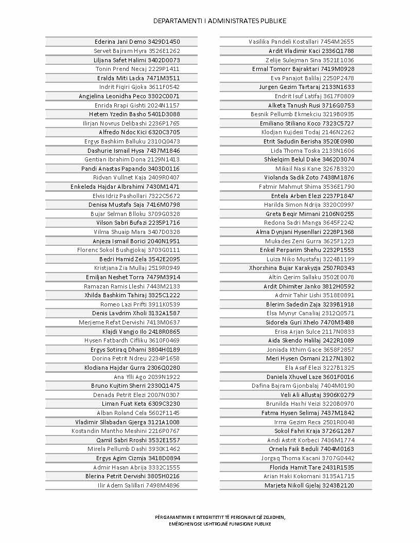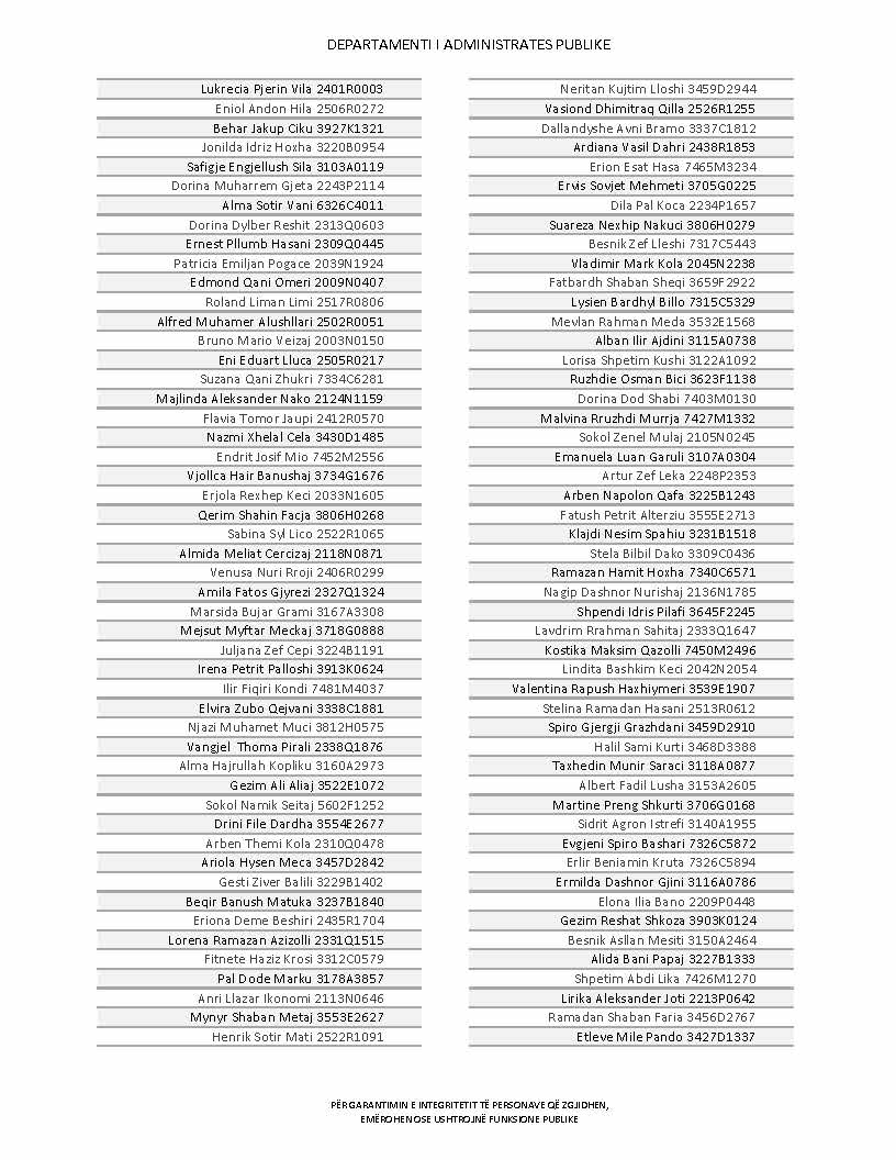 Lista e personave që kanë dorëzuar formularët e vetëdeklarimit