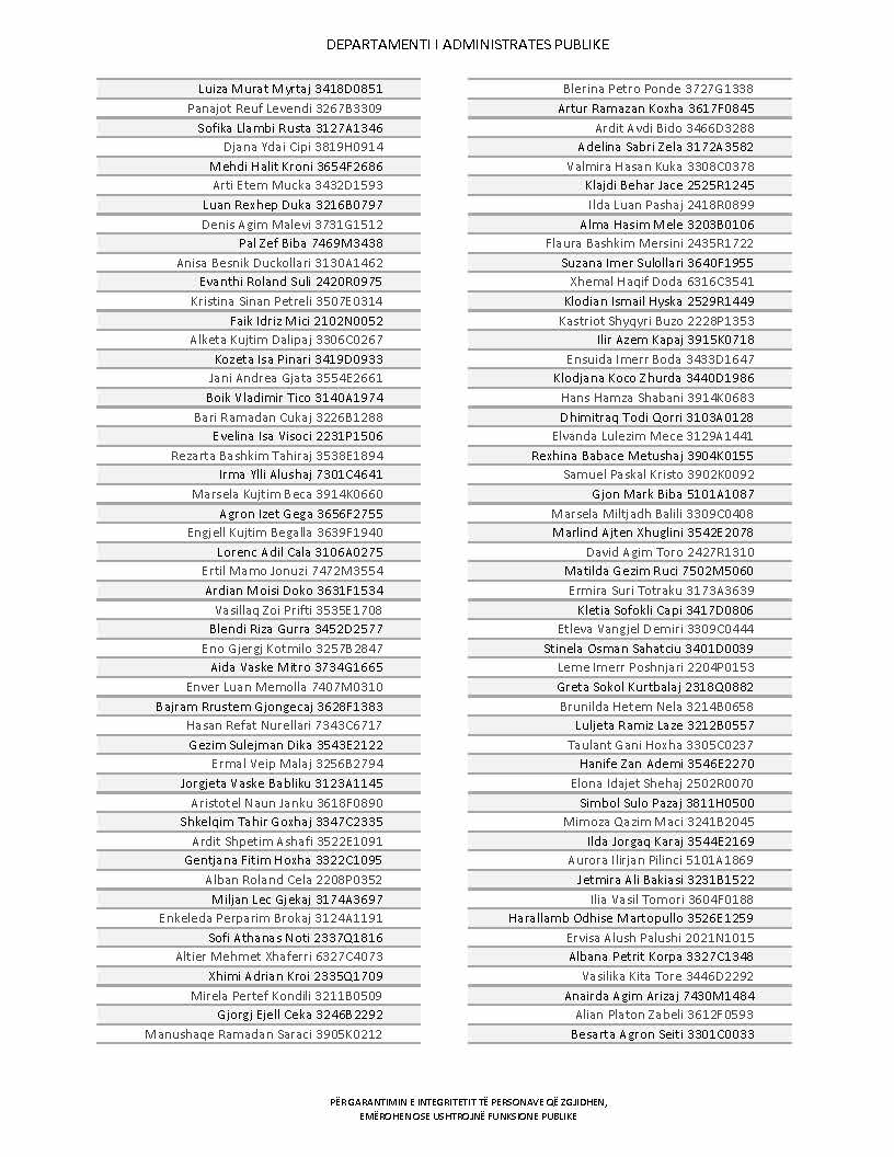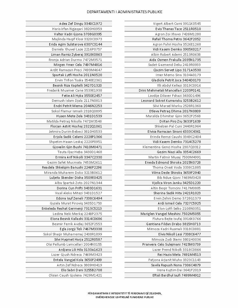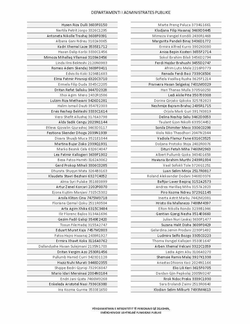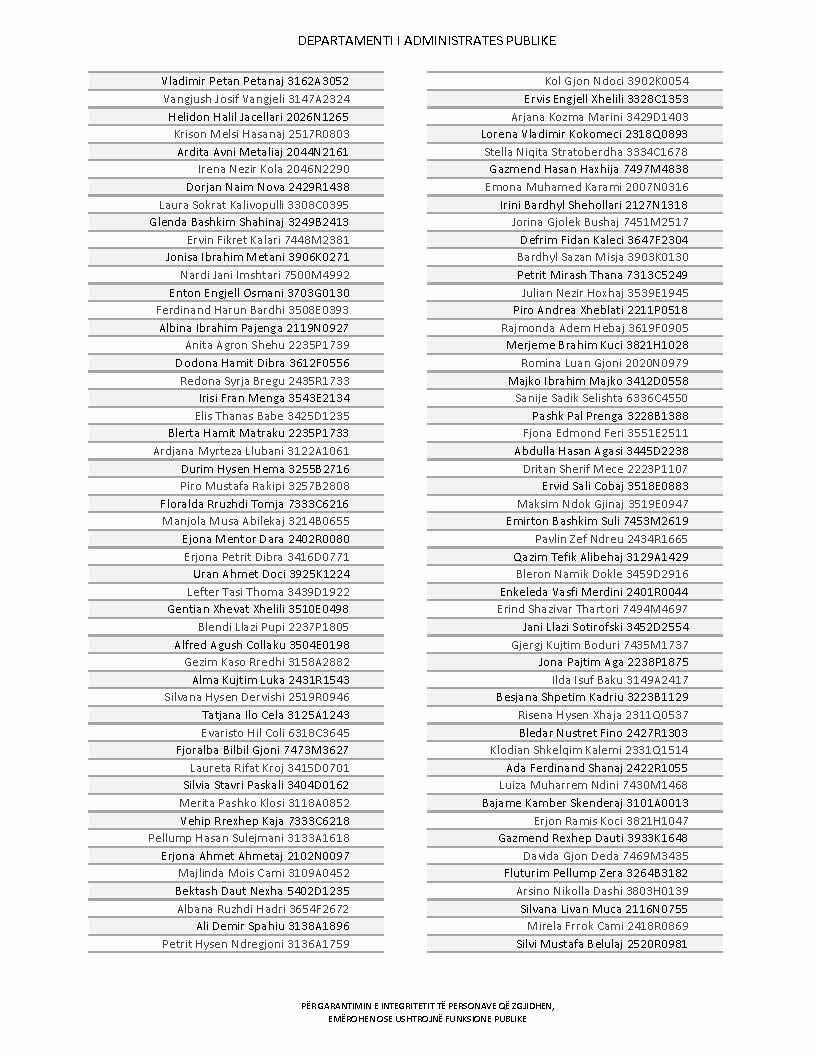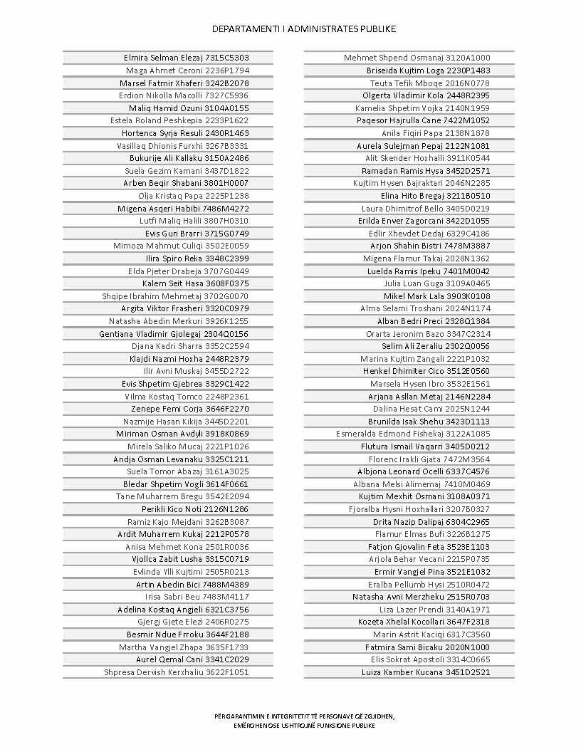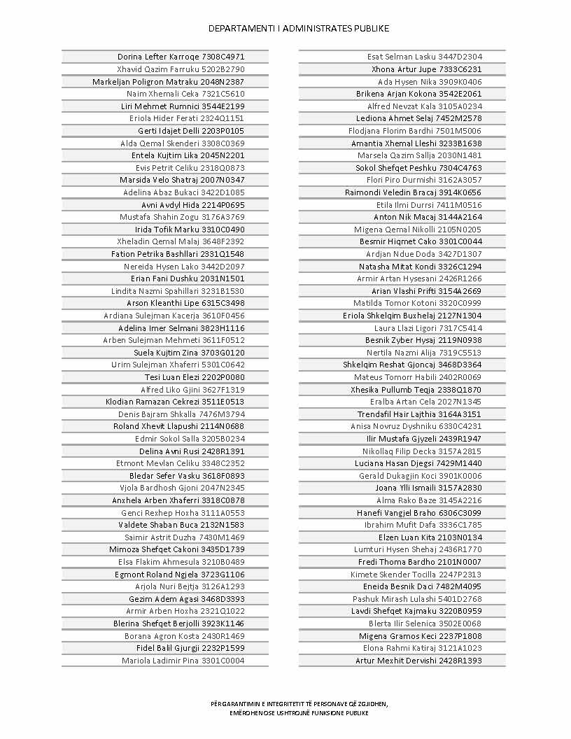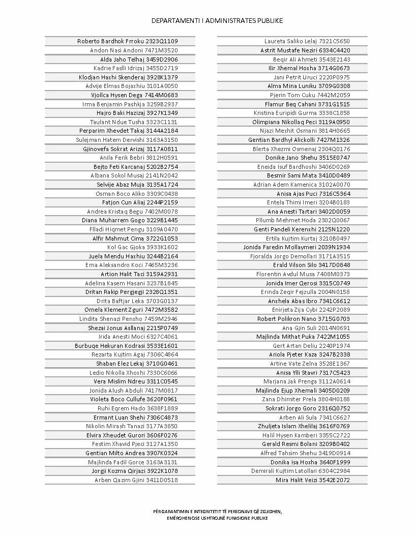 Lista e personave që kanë dorëzuar formularët e vetëdeklarimit
