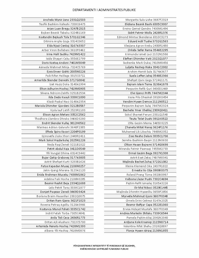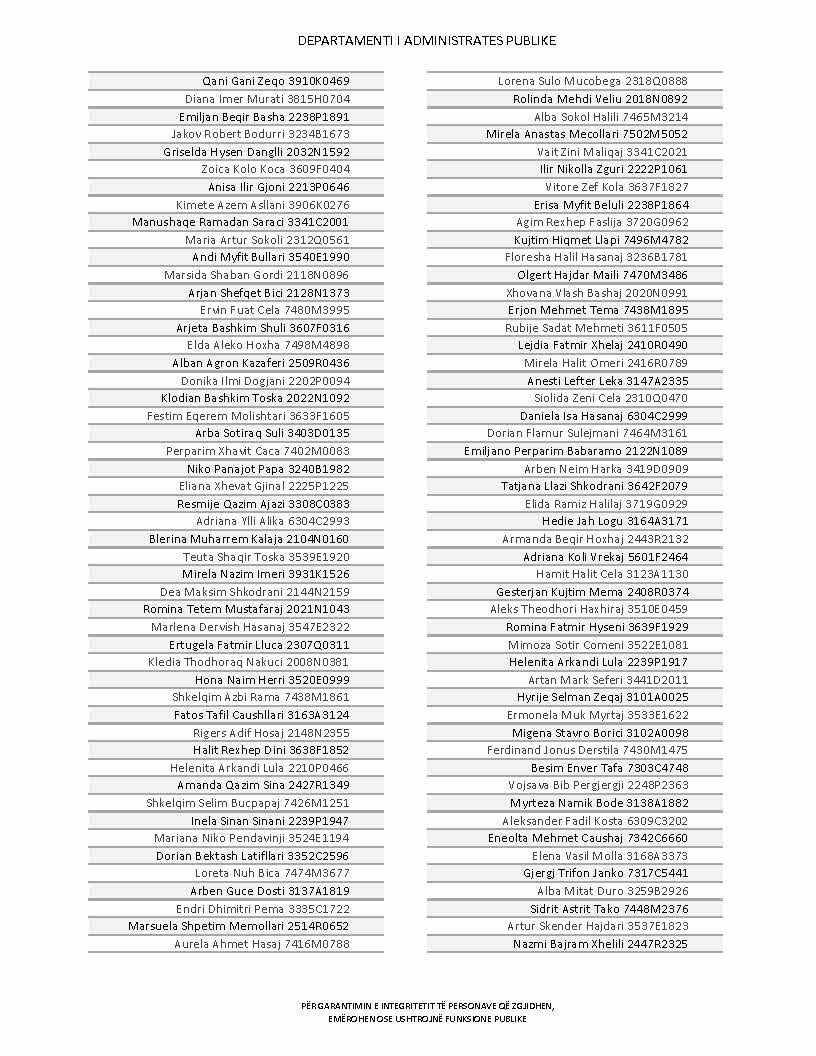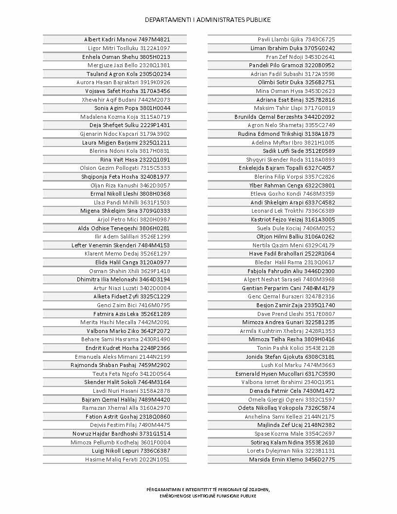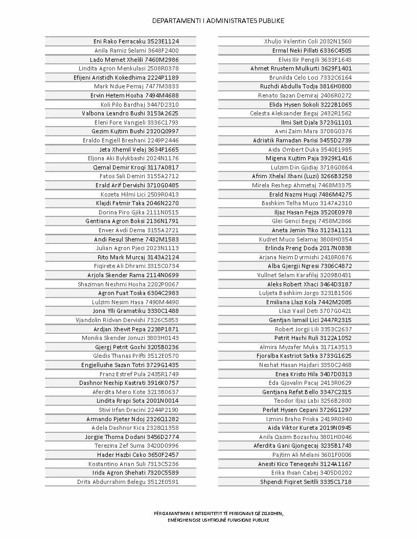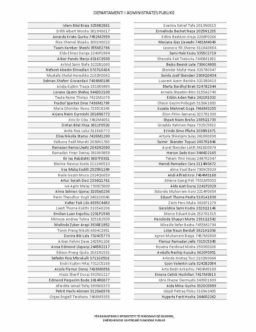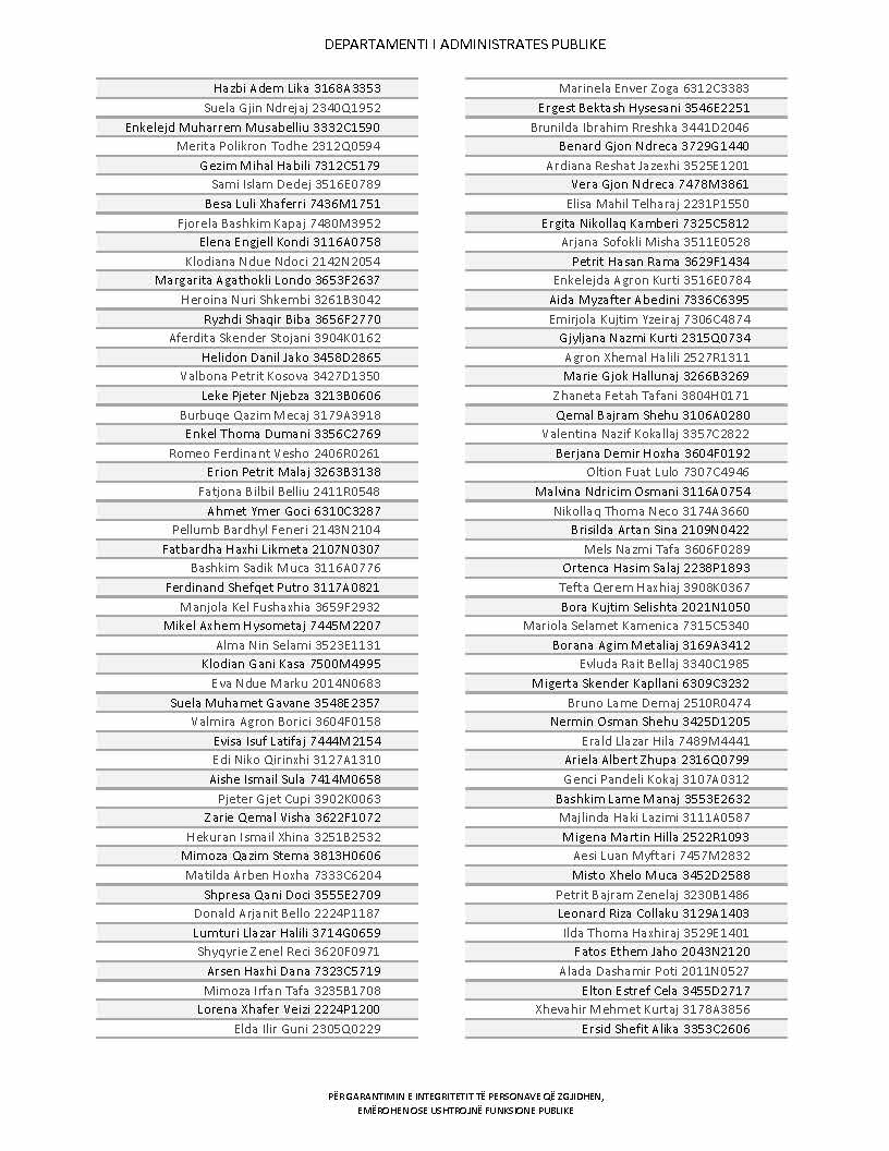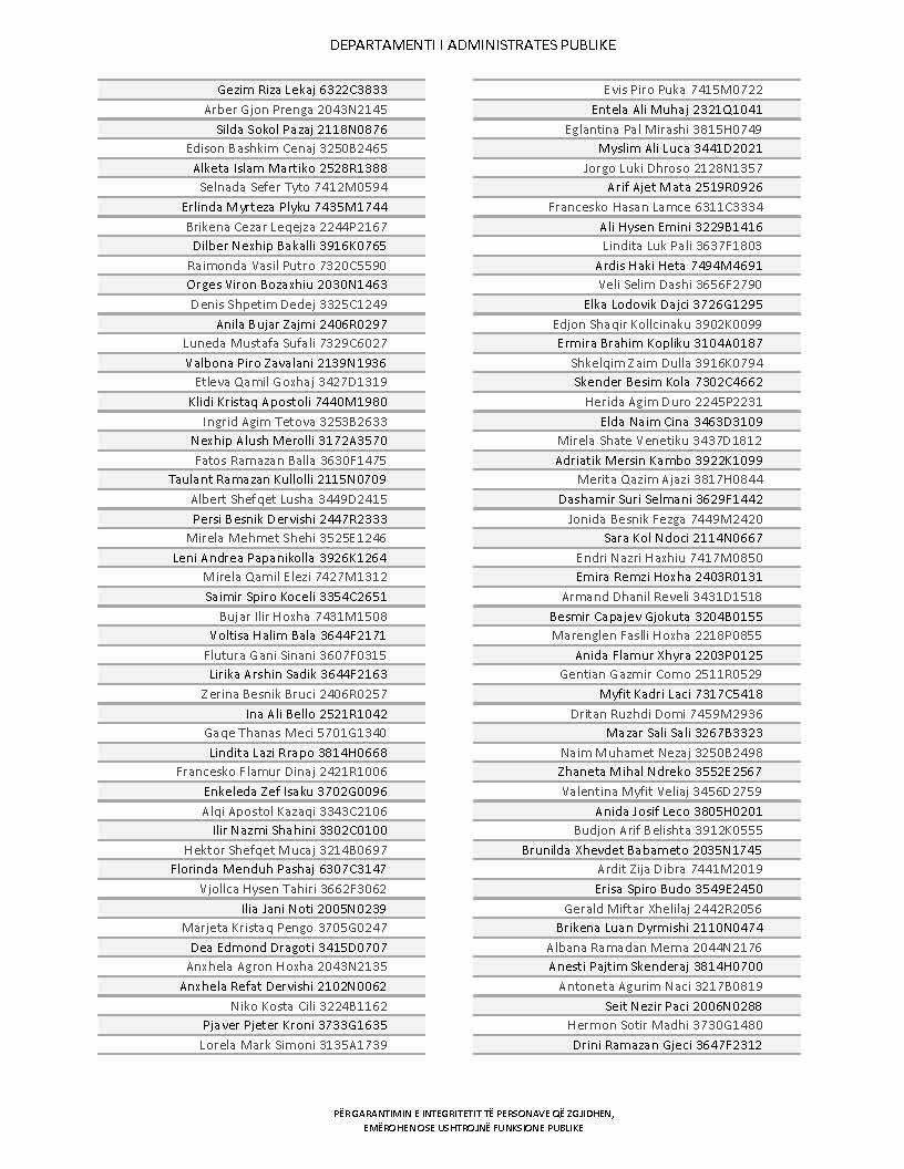 Lista e personave që kanë dorëzuar formularët e vetëdeklarimit