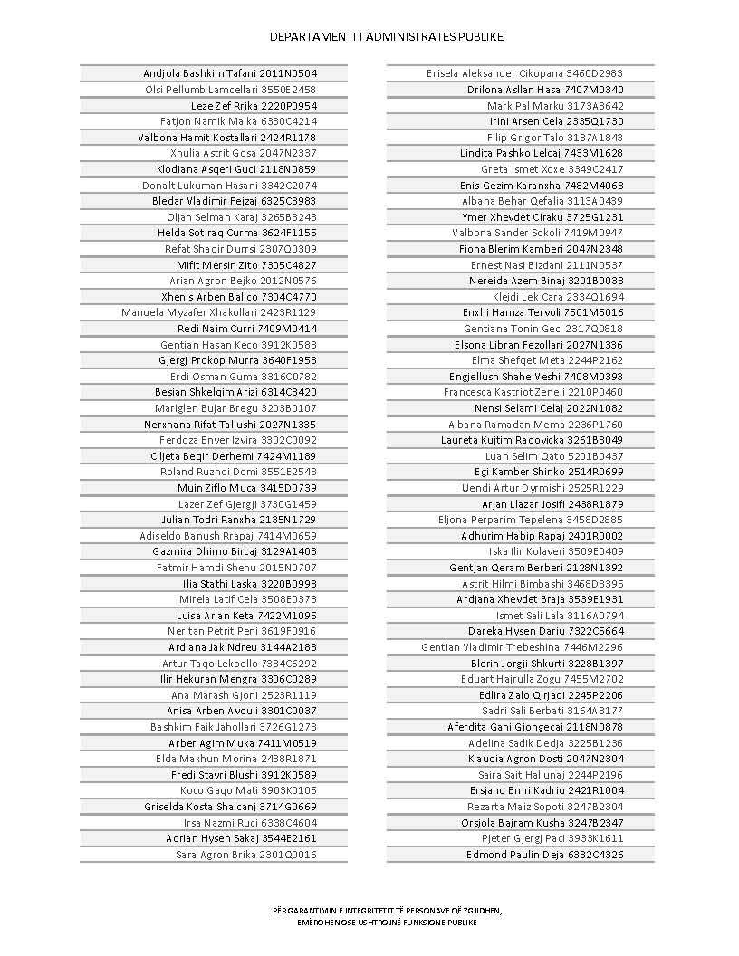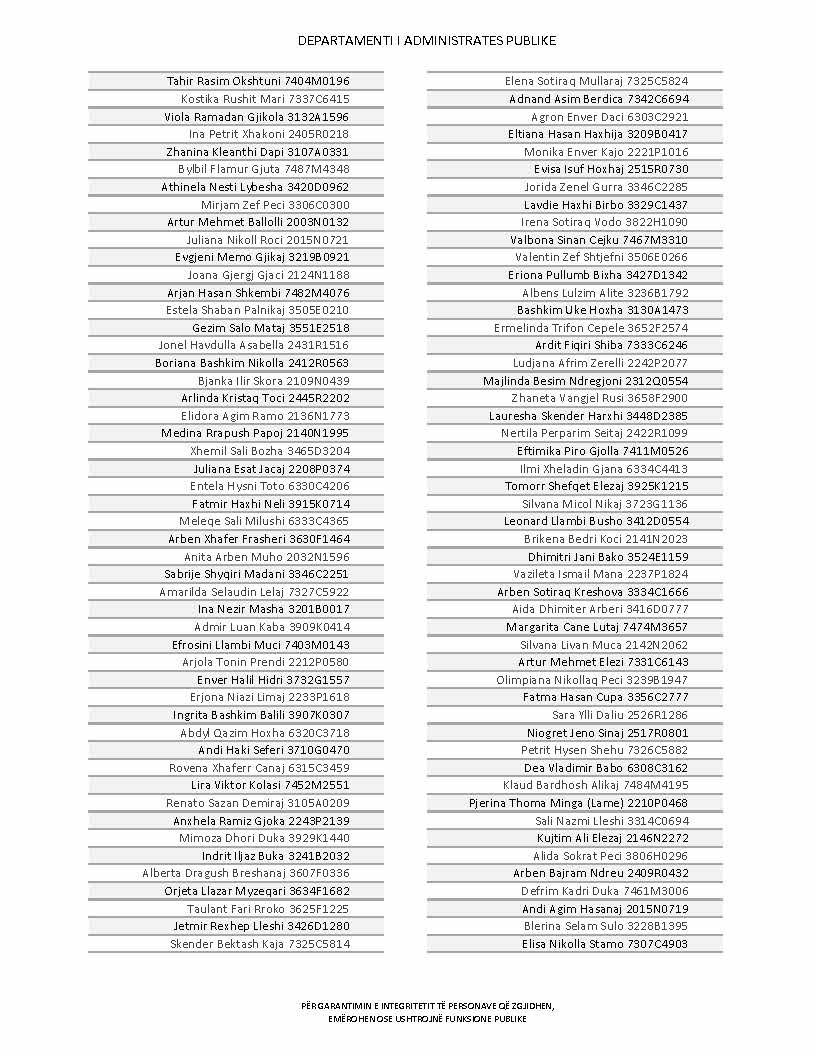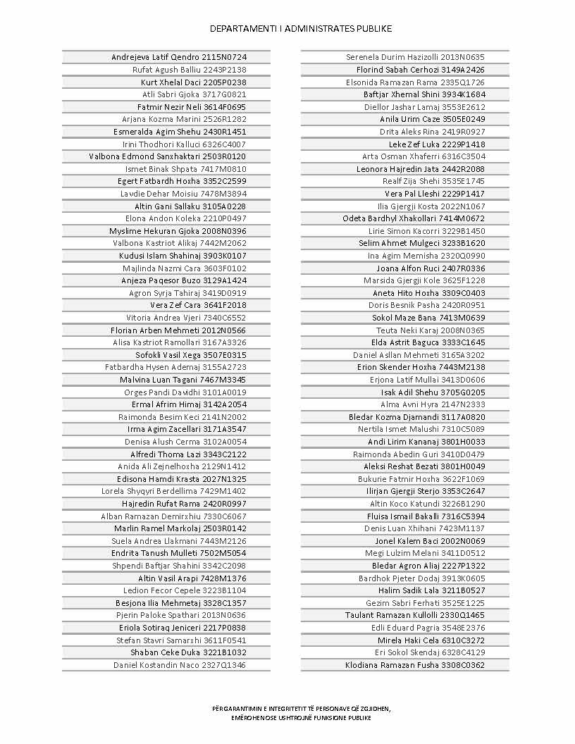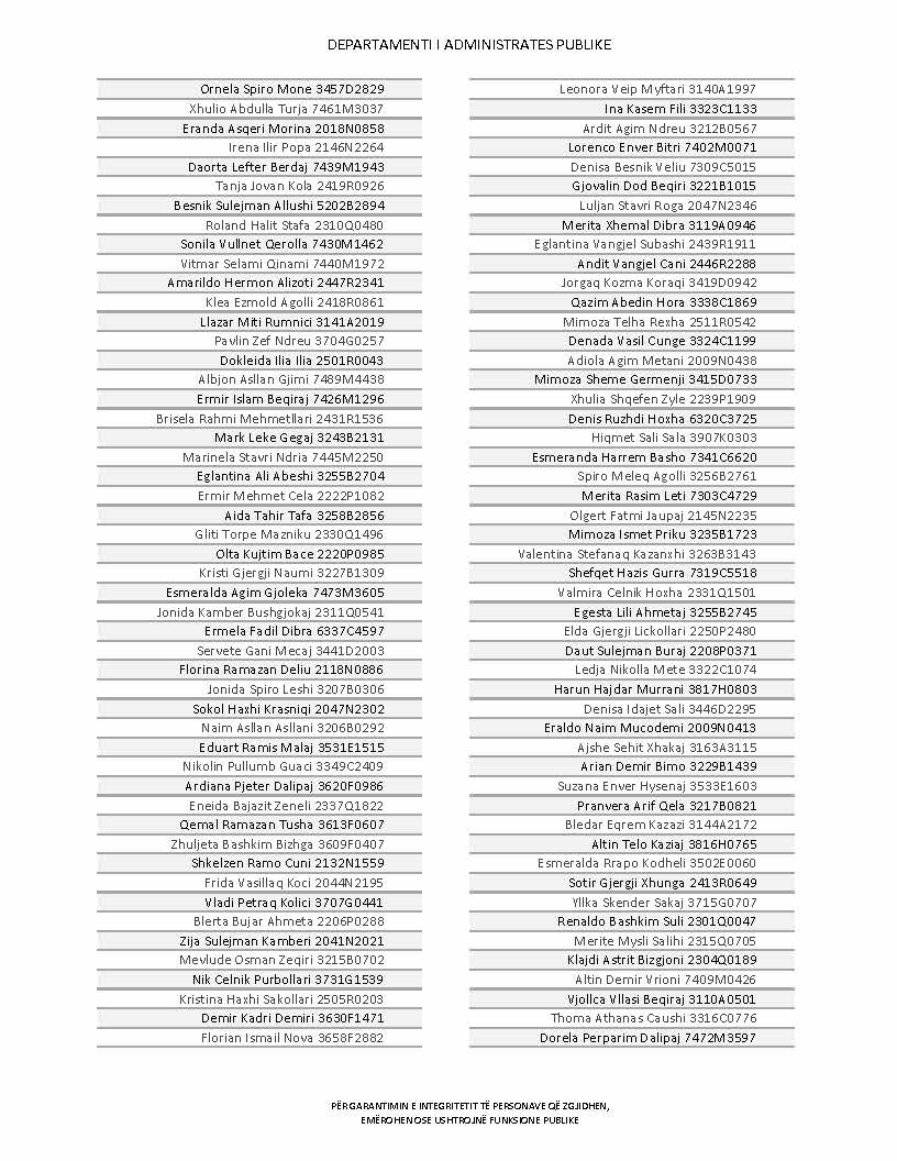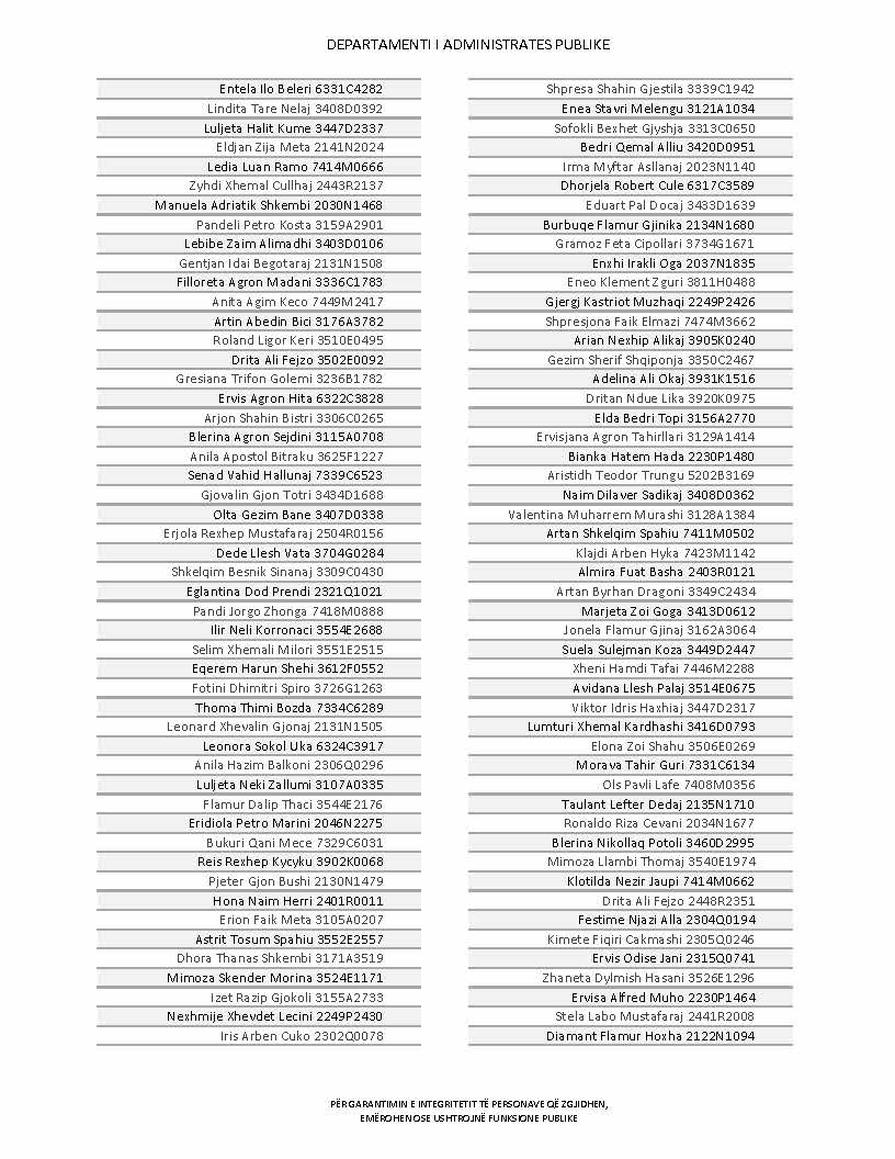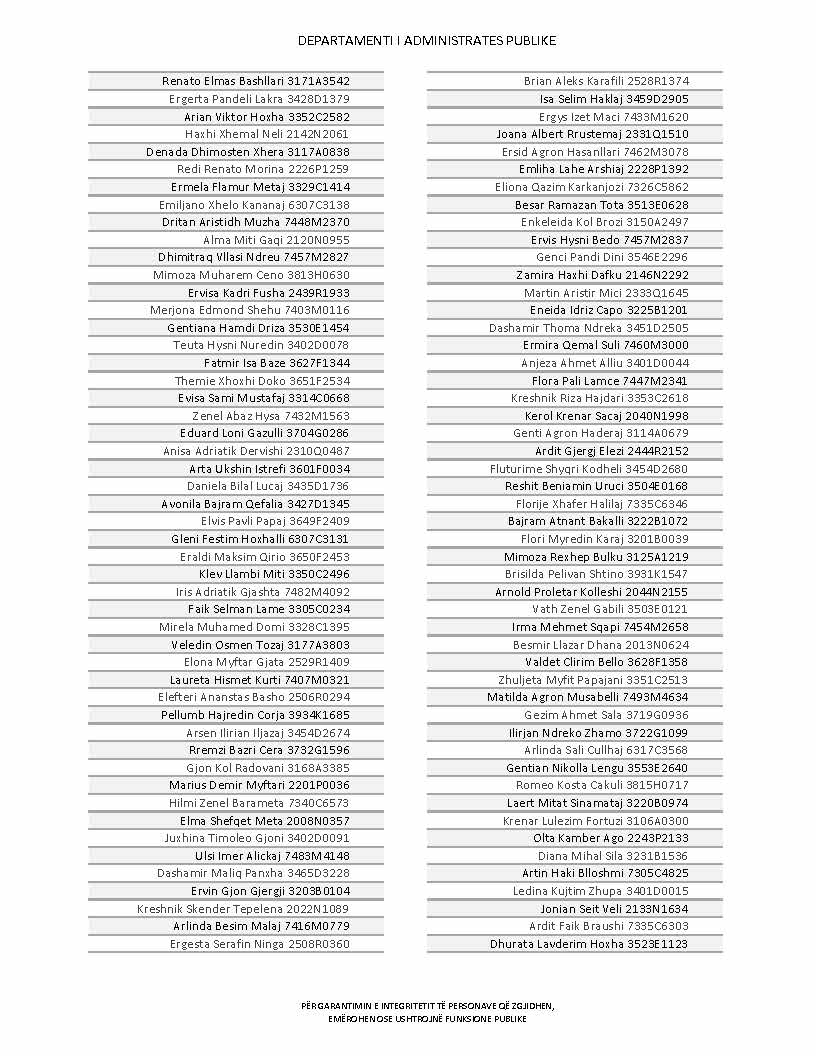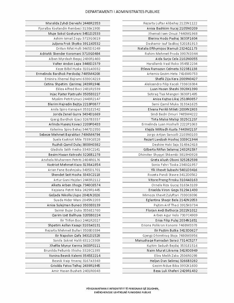 Lista e personave që kanë dorëzuar formularët e vetëdeklarimit