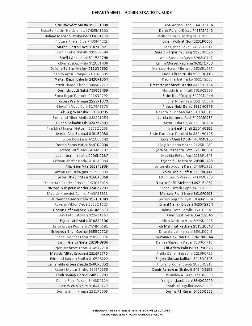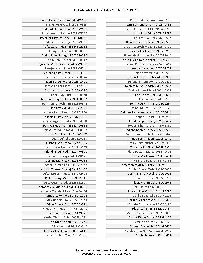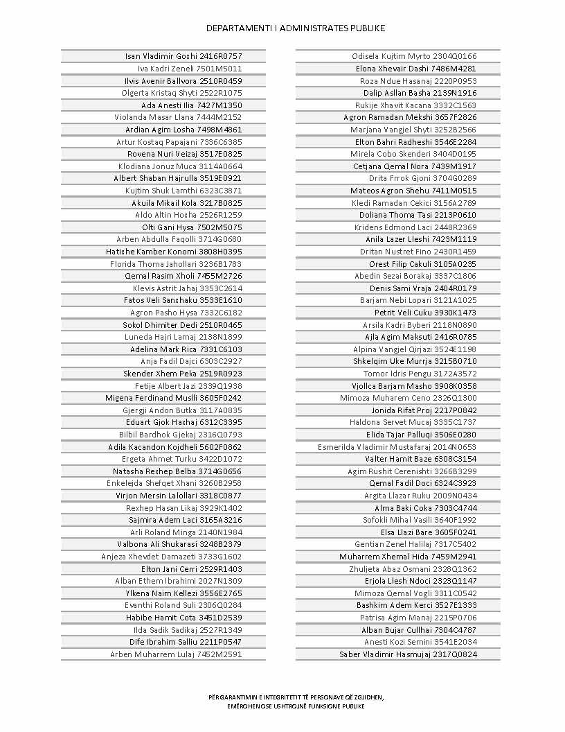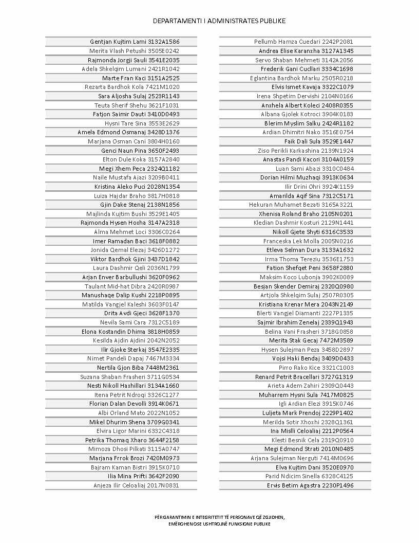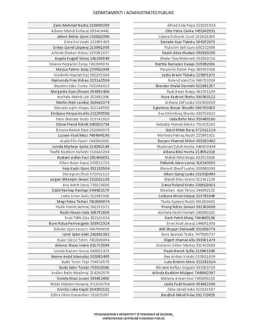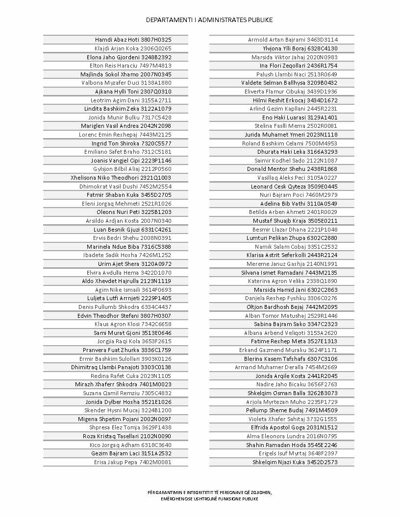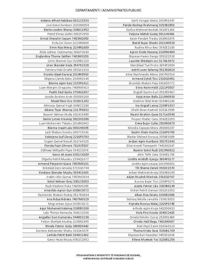 Lista e personave që kanë dorëzuar formularët e vetëdeklarimit