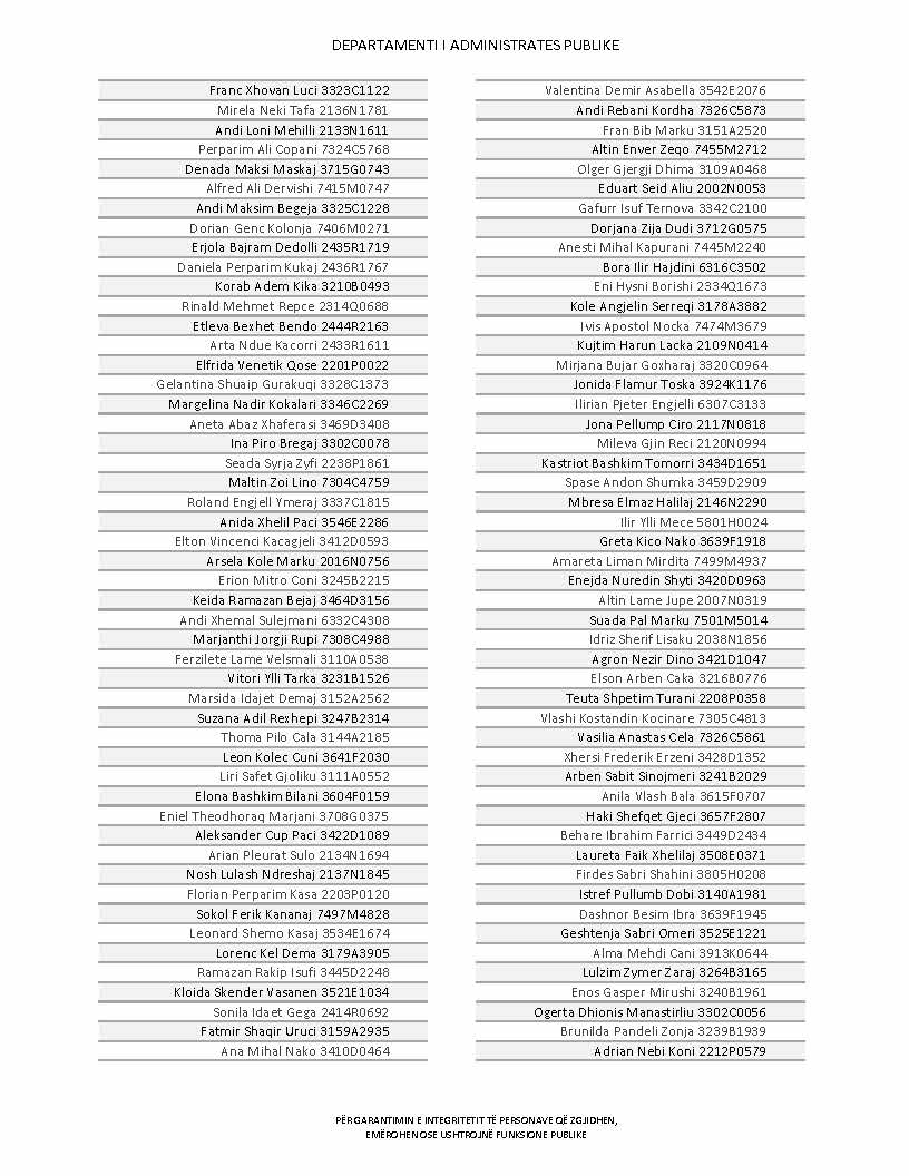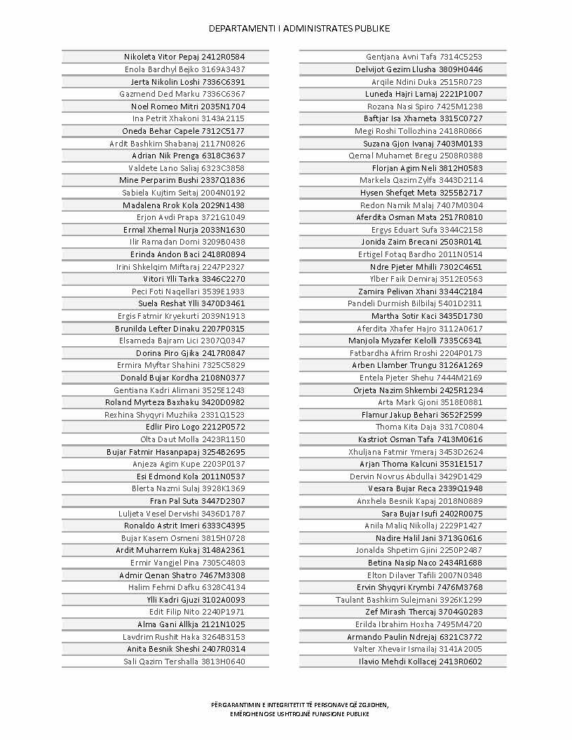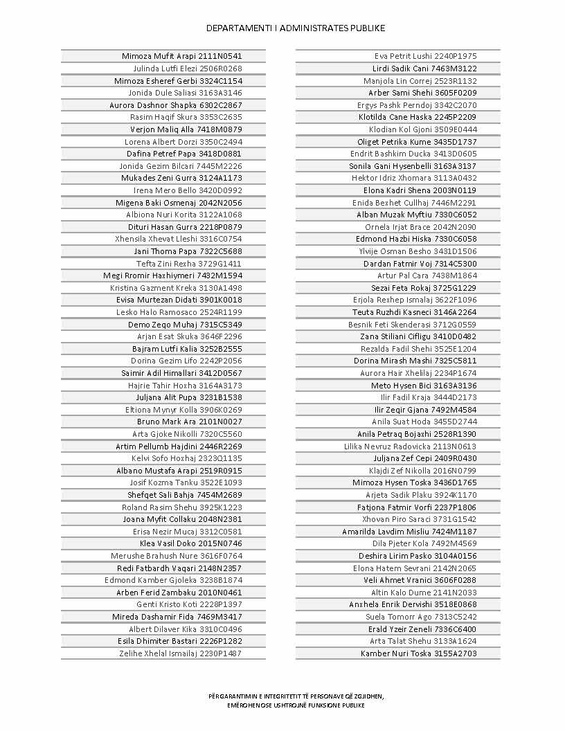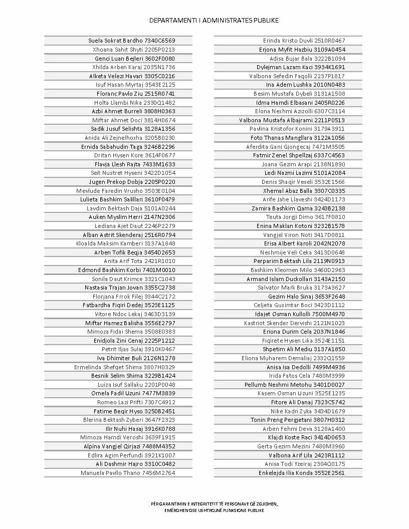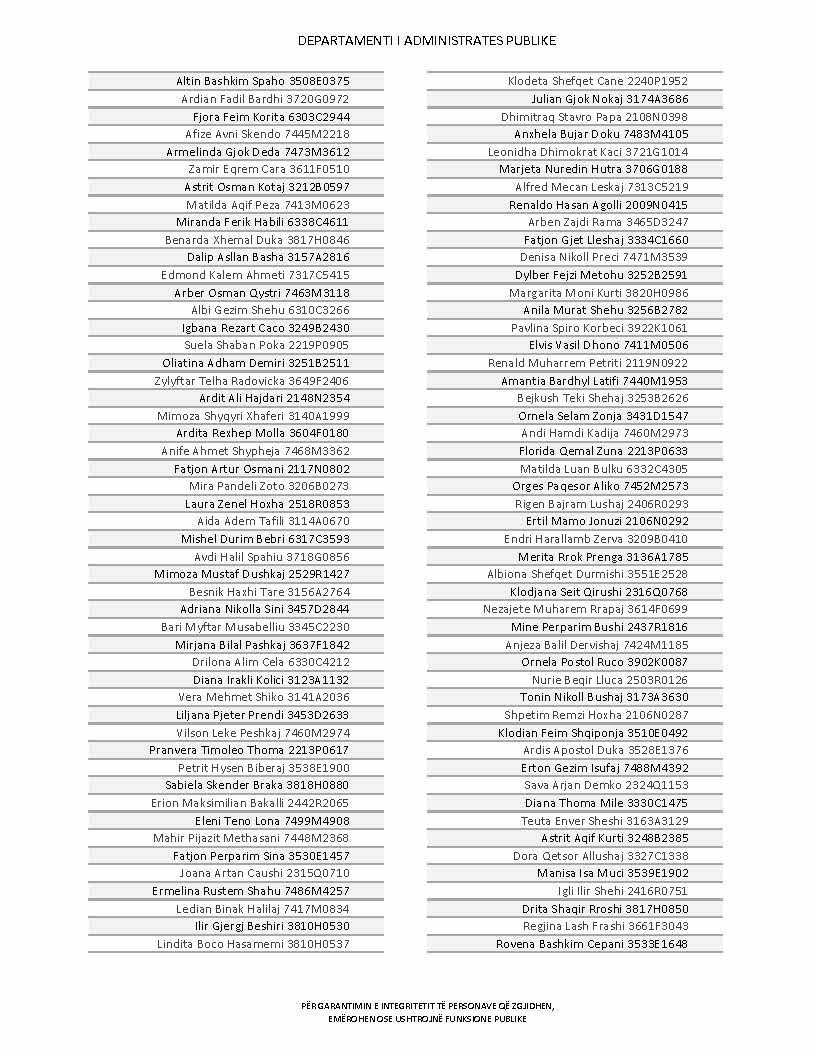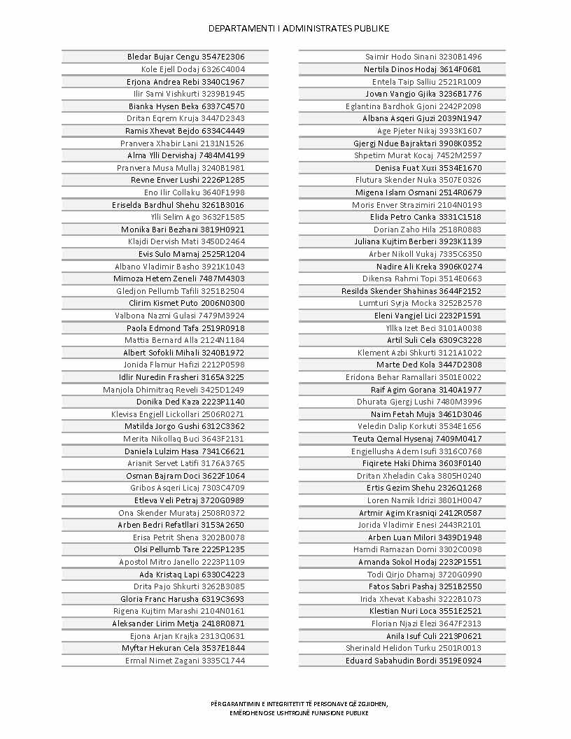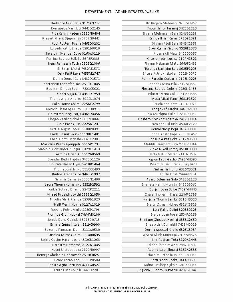 Lista e personave që kanë dorëzuar formularët e vetëdeklarimit