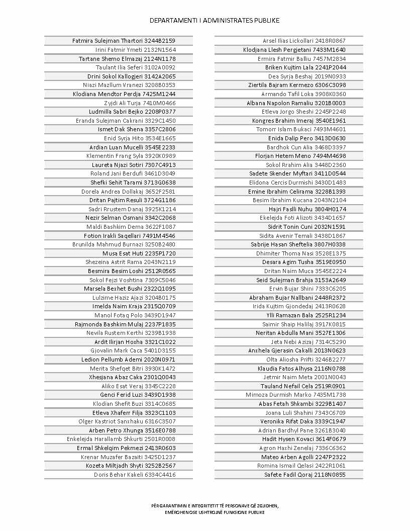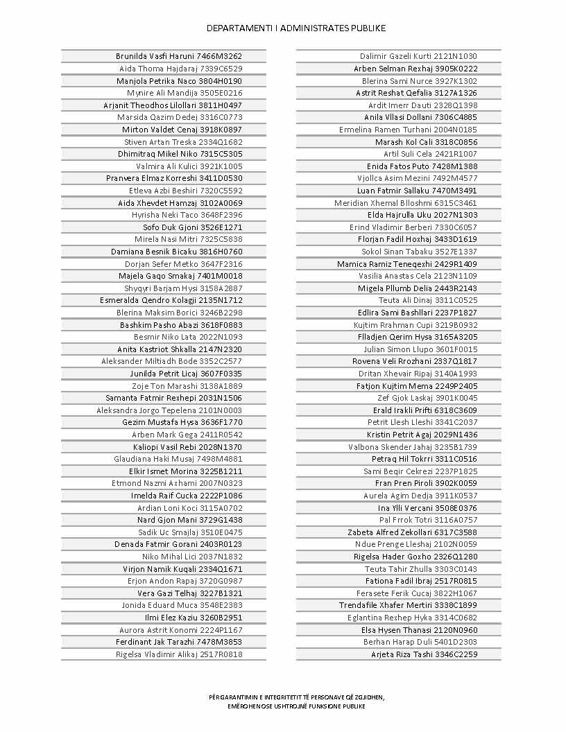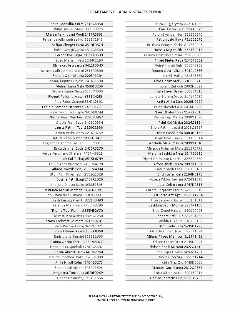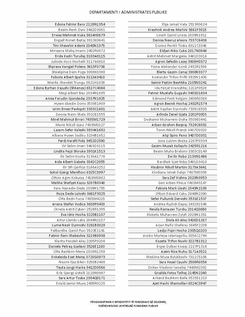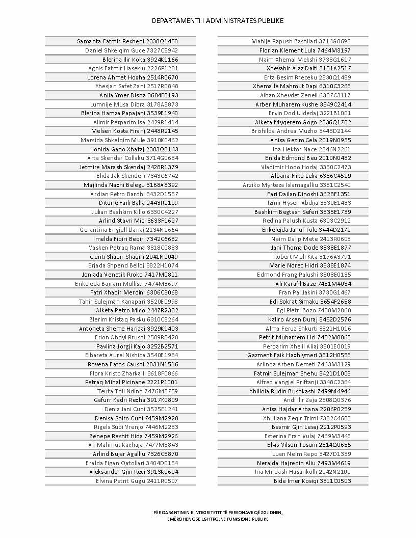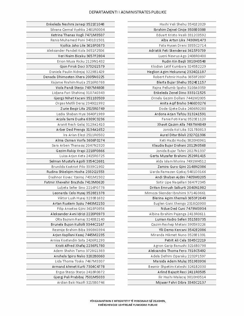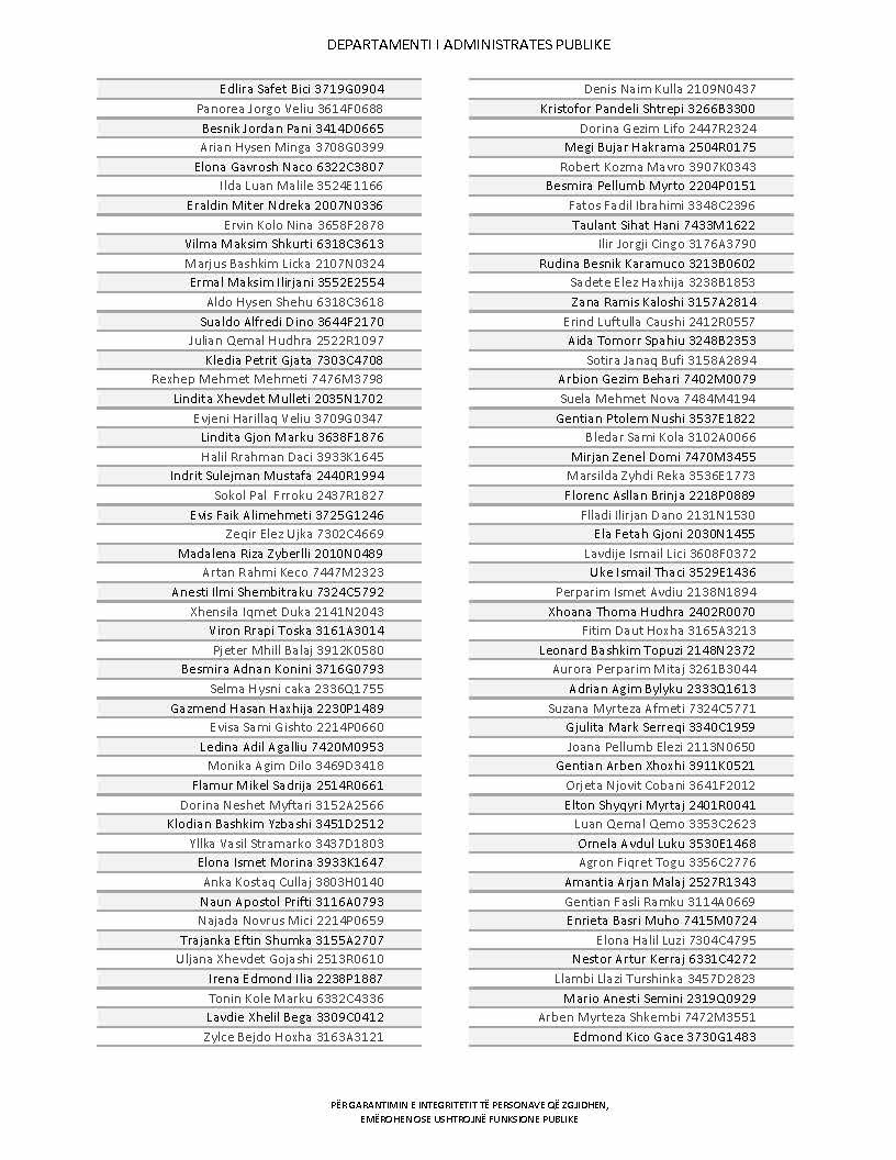 Lista e personave që kanë dorëzuar formularët e vetëdeklarimit
